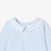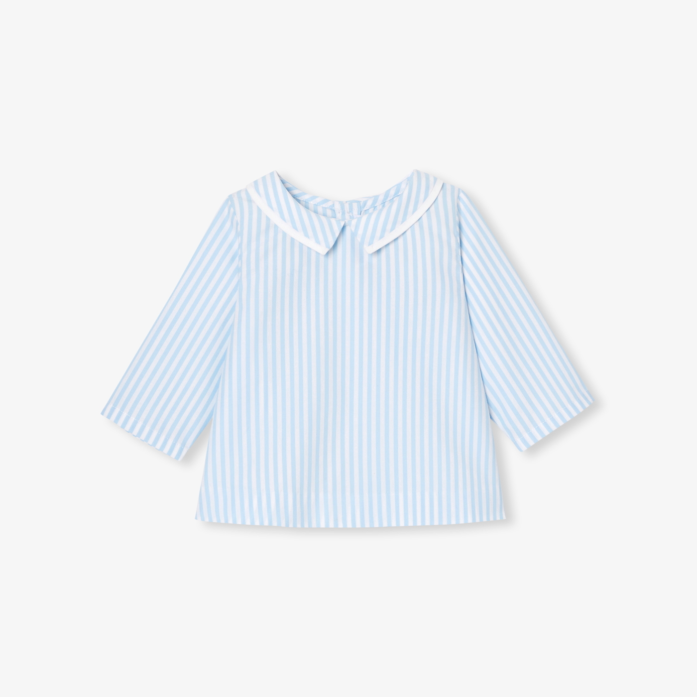 Jacadi reinventa l'eleganza quotidiana con questa camicia da neonato realizzata in popeline di cotone biologico a righe, con un piccolo colletto che struttura la silhouette. Indossato con i jeans o sotto la salopette, questo modello morbido e soffice si apre sulla schiena con bottoni in madreperla naturale e sarà sicuramente un'aggiunta accattivante a qualsiasi outfit della stagione.