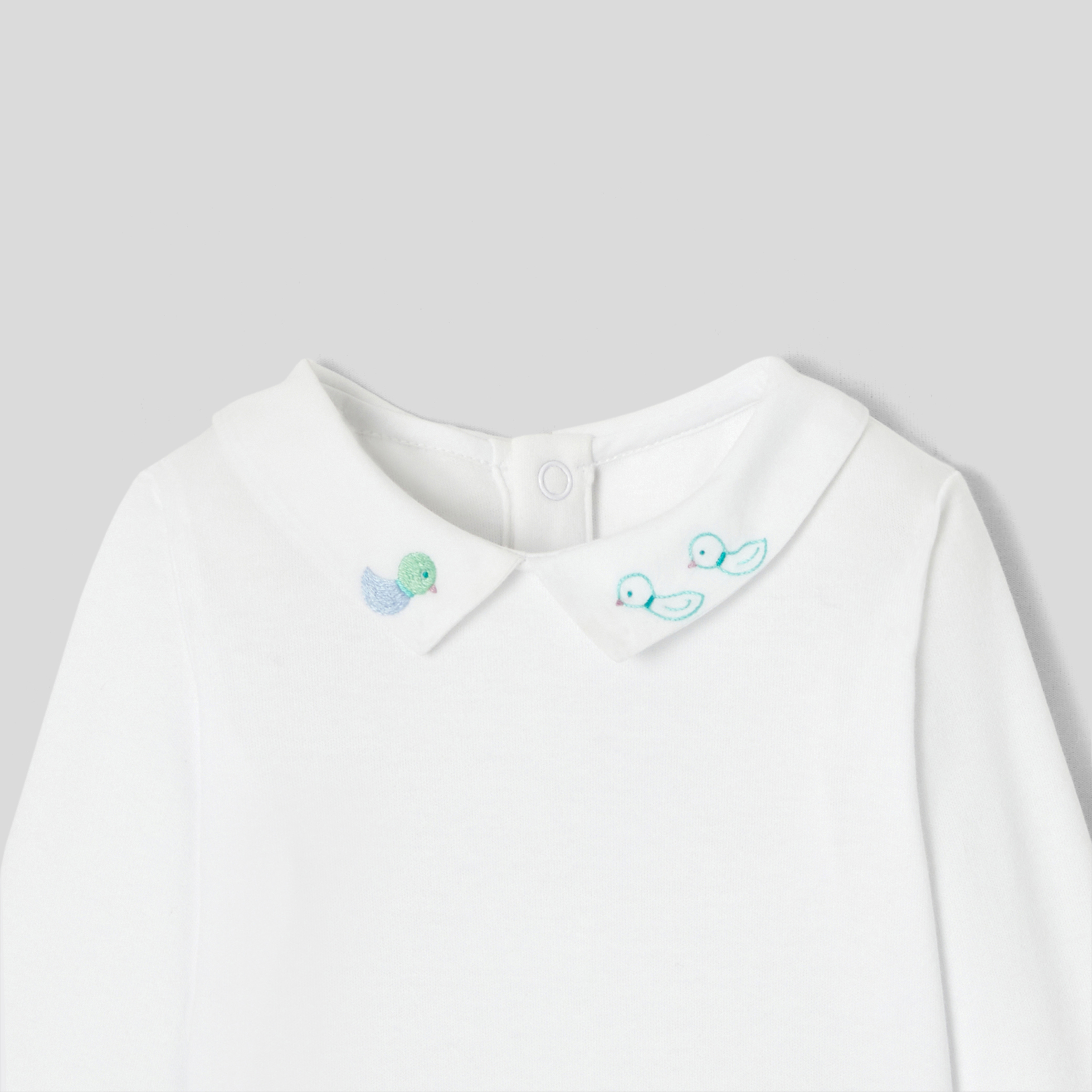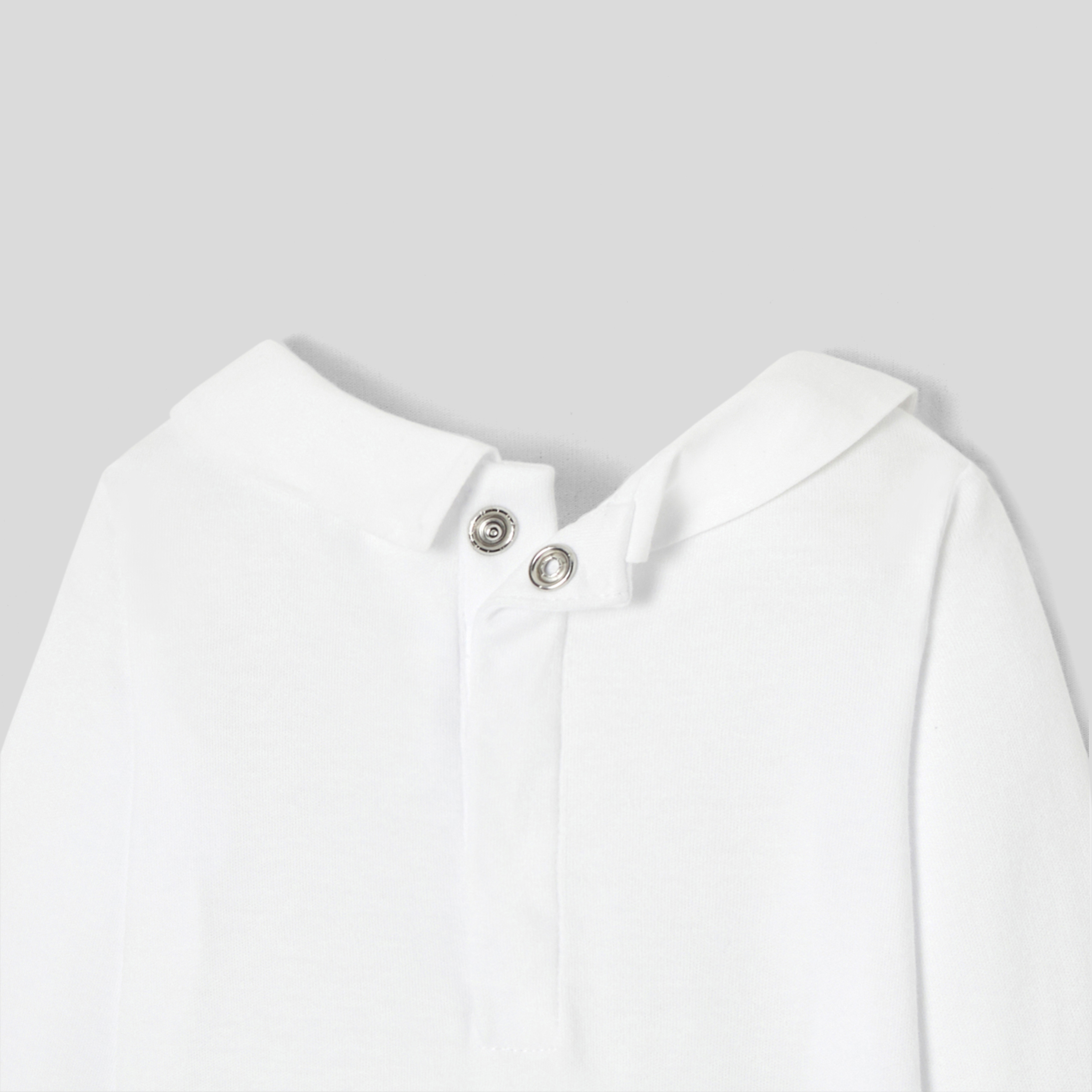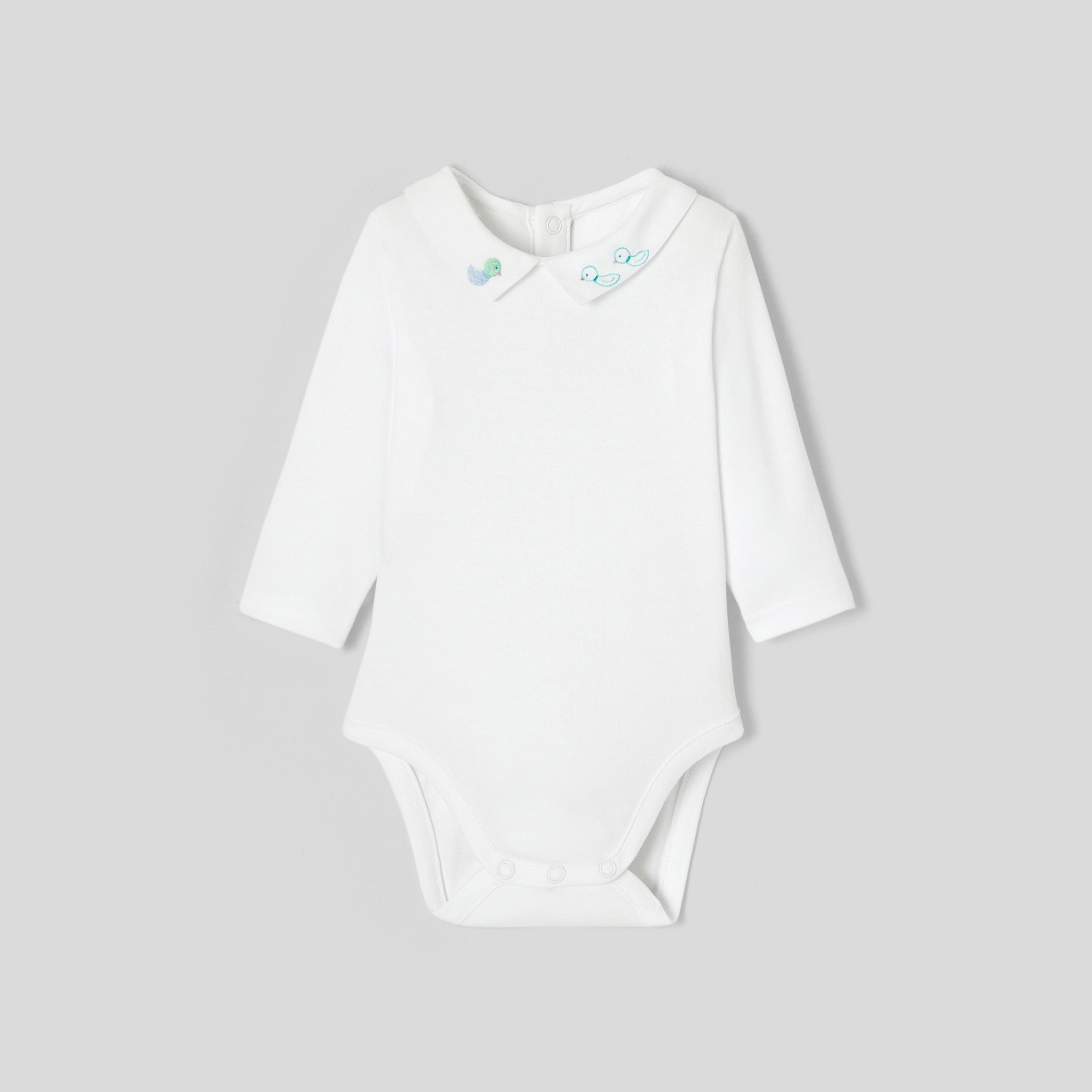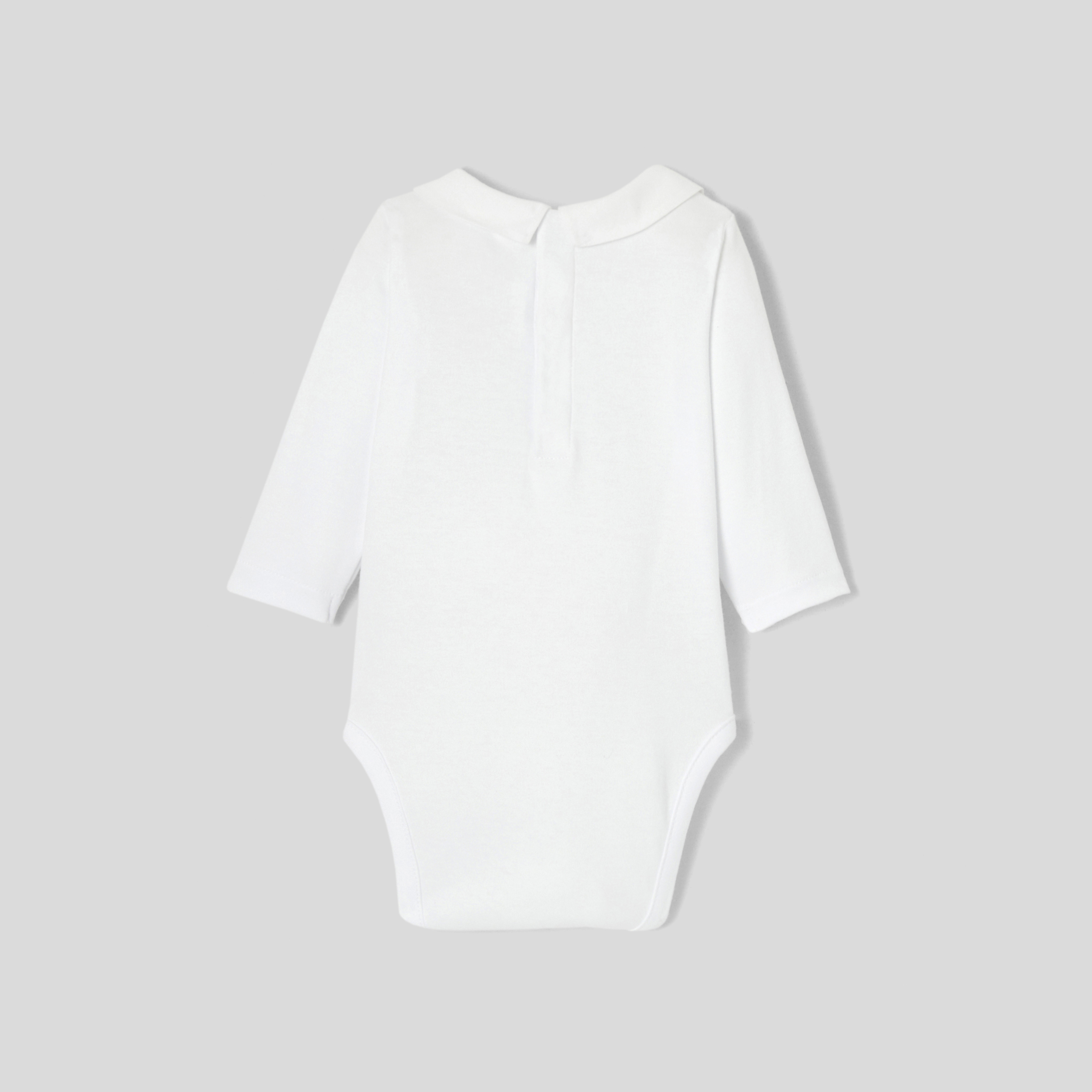 Un outfit quotidiano sempre elegante con questo incantevole body bimbo. In cotone biologico, il colletto in popeline è ornato di un delicato ricamo fatto a mano. Indossato sotto una salopette a quadri e abbinato a graziose scarpine, il ritorno a scuola dei bimbi sarà elegante e grafico.