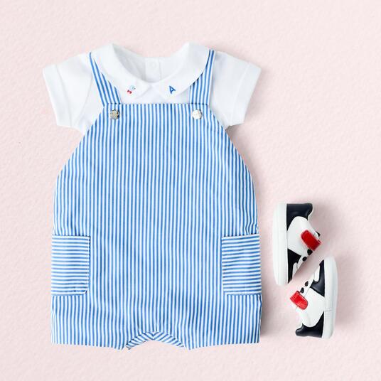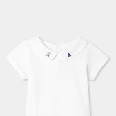 Realizzato in cotone biologico e arricchito da un colletto in popeline ricamato con un uccello sullo skateboard, questo body bimbo è perfetto per essere indossato tutti i giorni e si abbinerà facilmente con salopette o tutine in primavera.