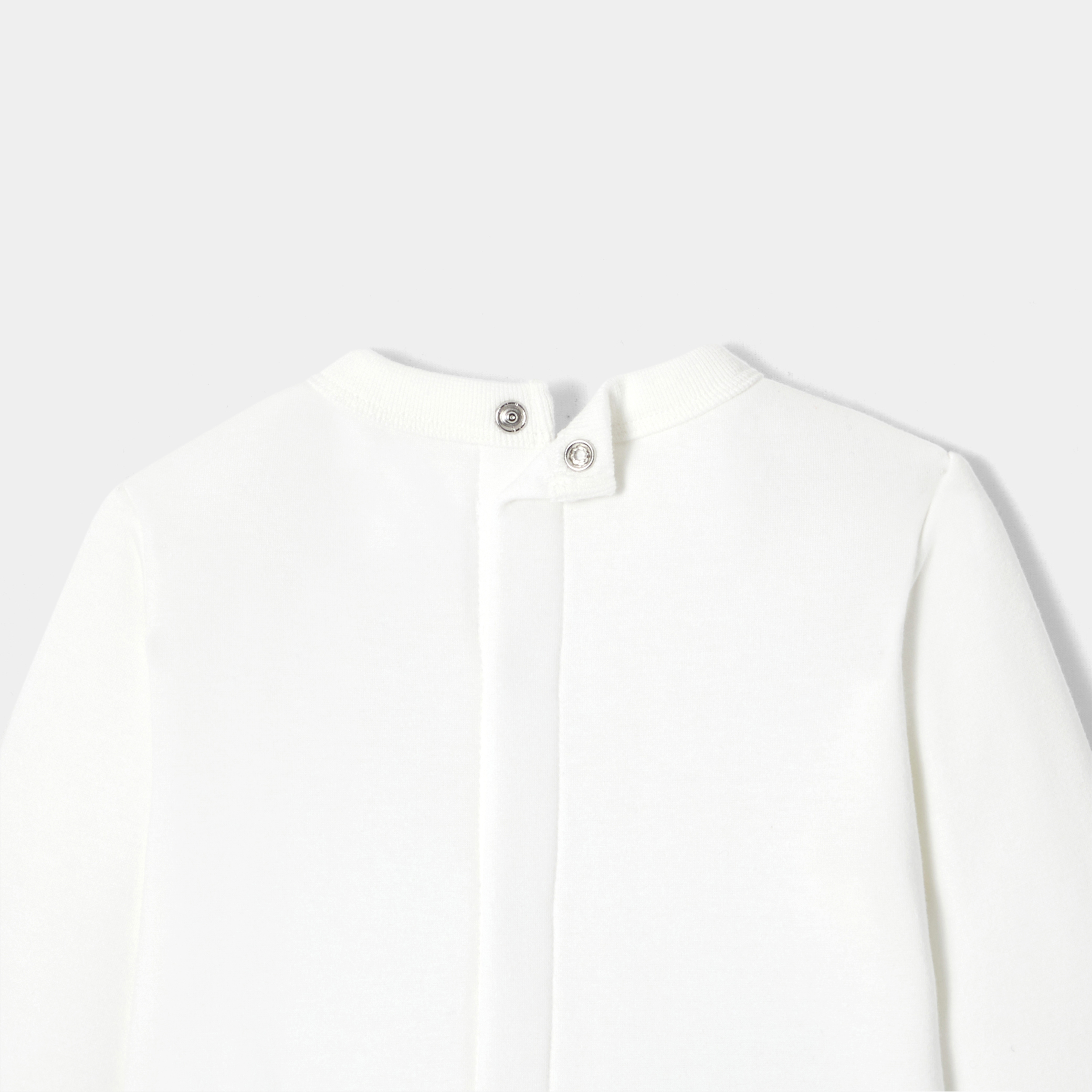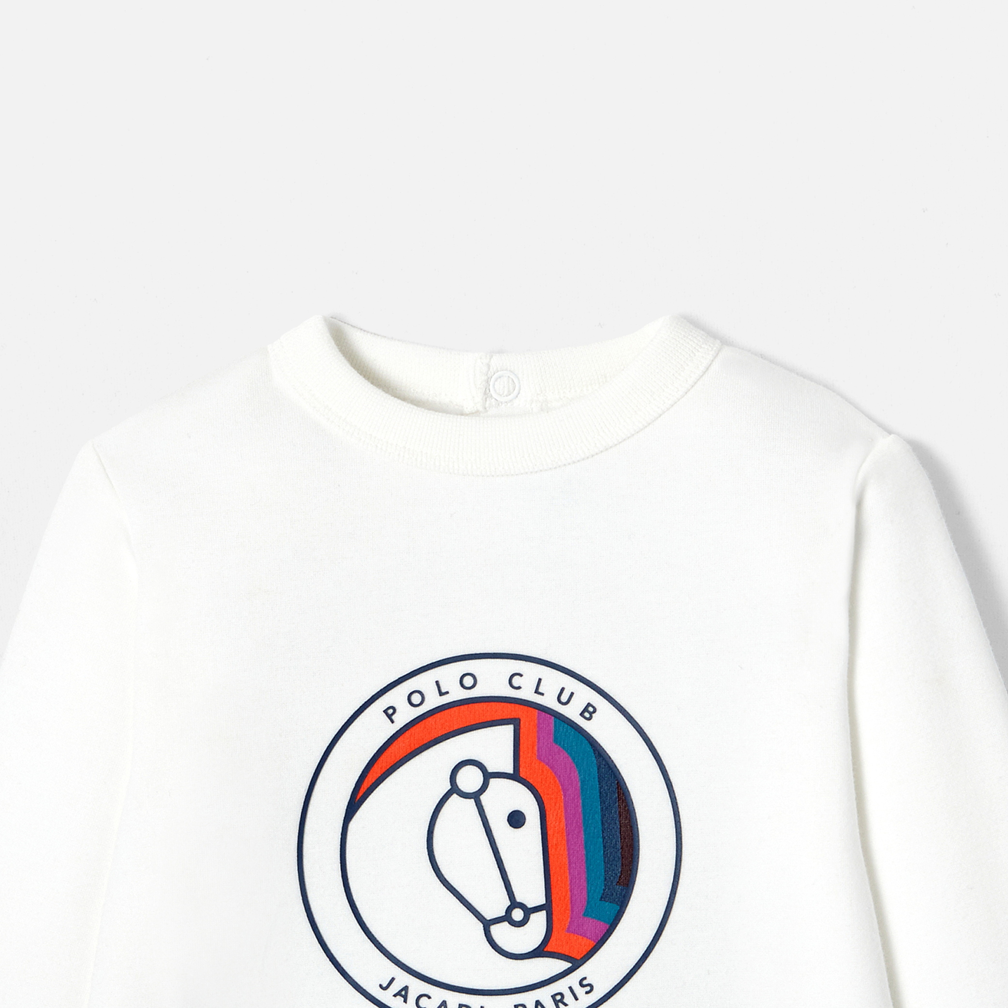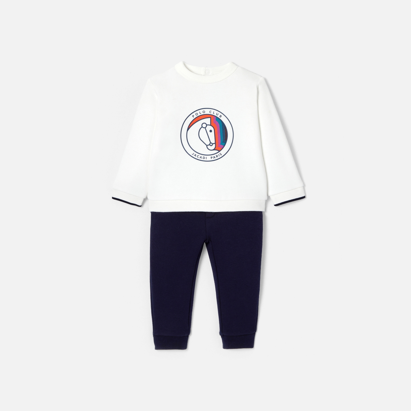 Per accompagnare i bimbi ogni giorno, Jacadi crea il completino perfetto in tessuto felpato. Pratico e sporty-chic grazie alla felpa con un adorabile cavallo stampato e ai pantaloni dotati di un elastico in vita per infilarli facilmente, i genitori che vanno di corsa saranno contenti di trovare questo completino nel guardaroba del bimbo quando lo preparano per andare a scuola.