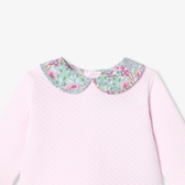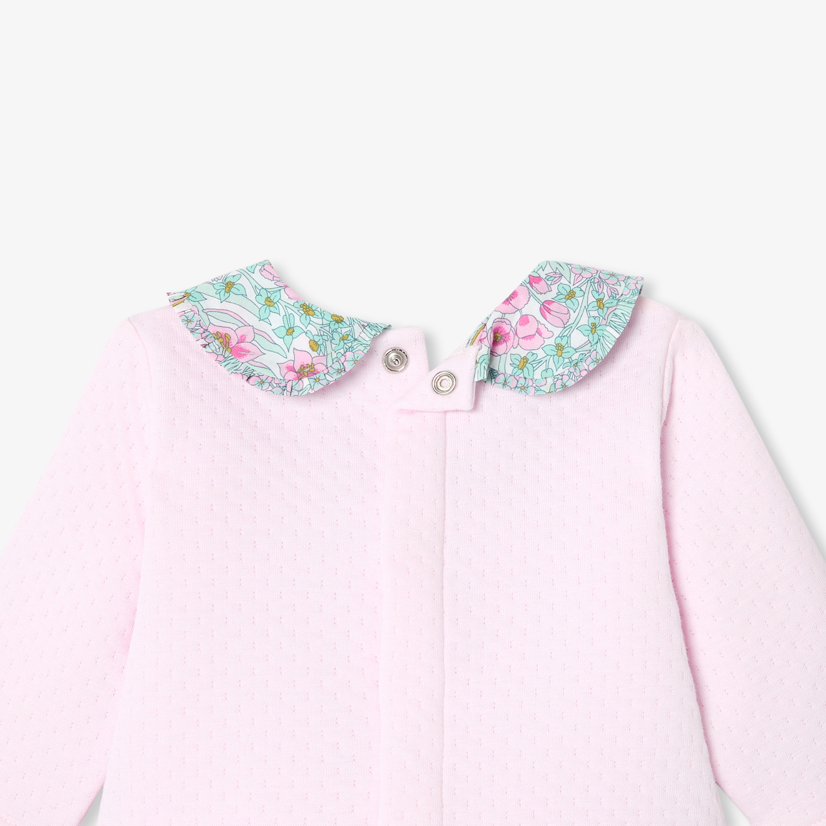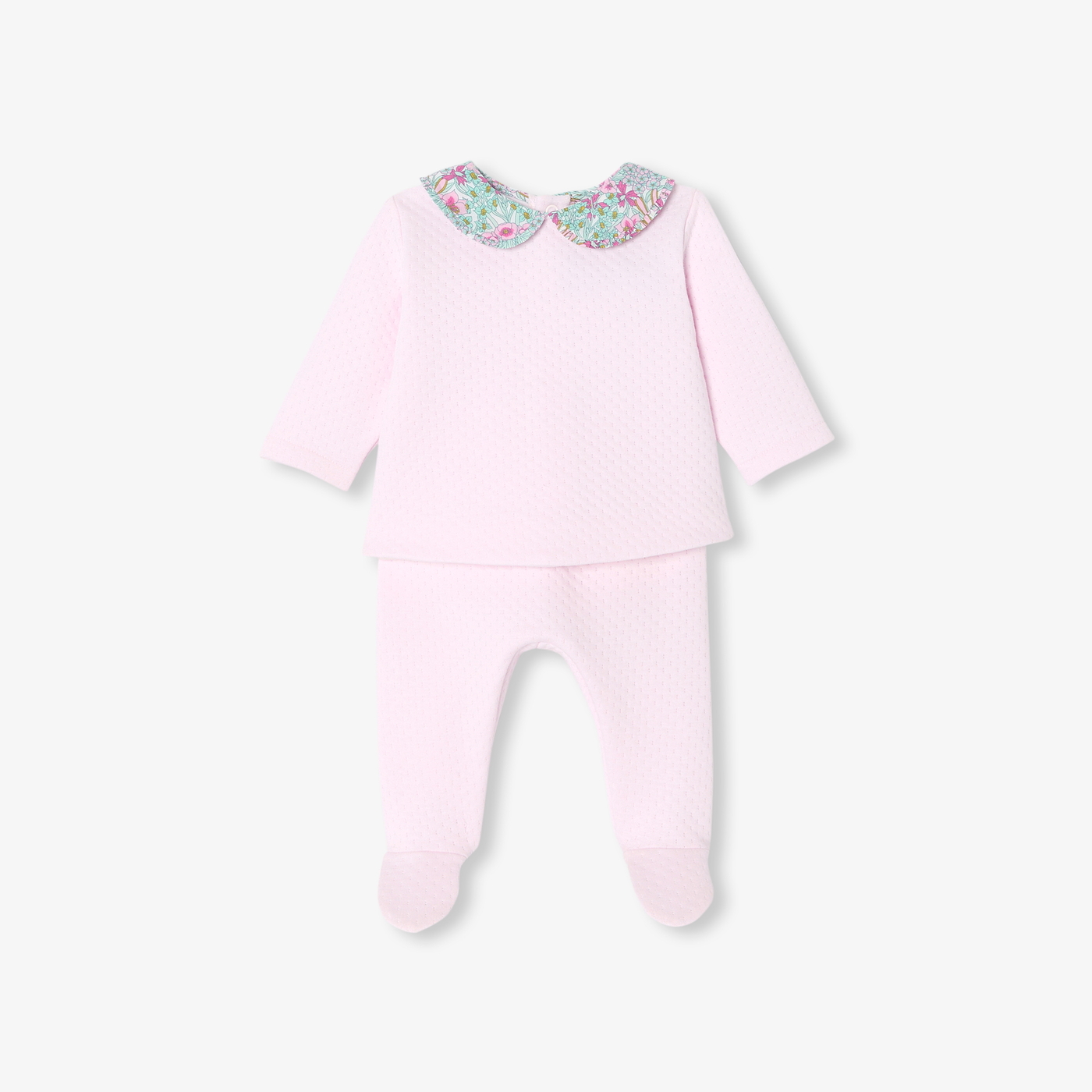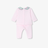 Jacadi reinventa lo stile casual chic con questo comodo completino per neonata. Composto da un top che si apre sulla schiena e da pantaloni in jersey doppio con piedini, questo poetico duo presenta un colletto Claudine arruffato e mutande in tessuto Liberty. Perfetto da usare tutti i giorni all'asilo e a casa, non può mancare nel guardaroba delle più piccine.