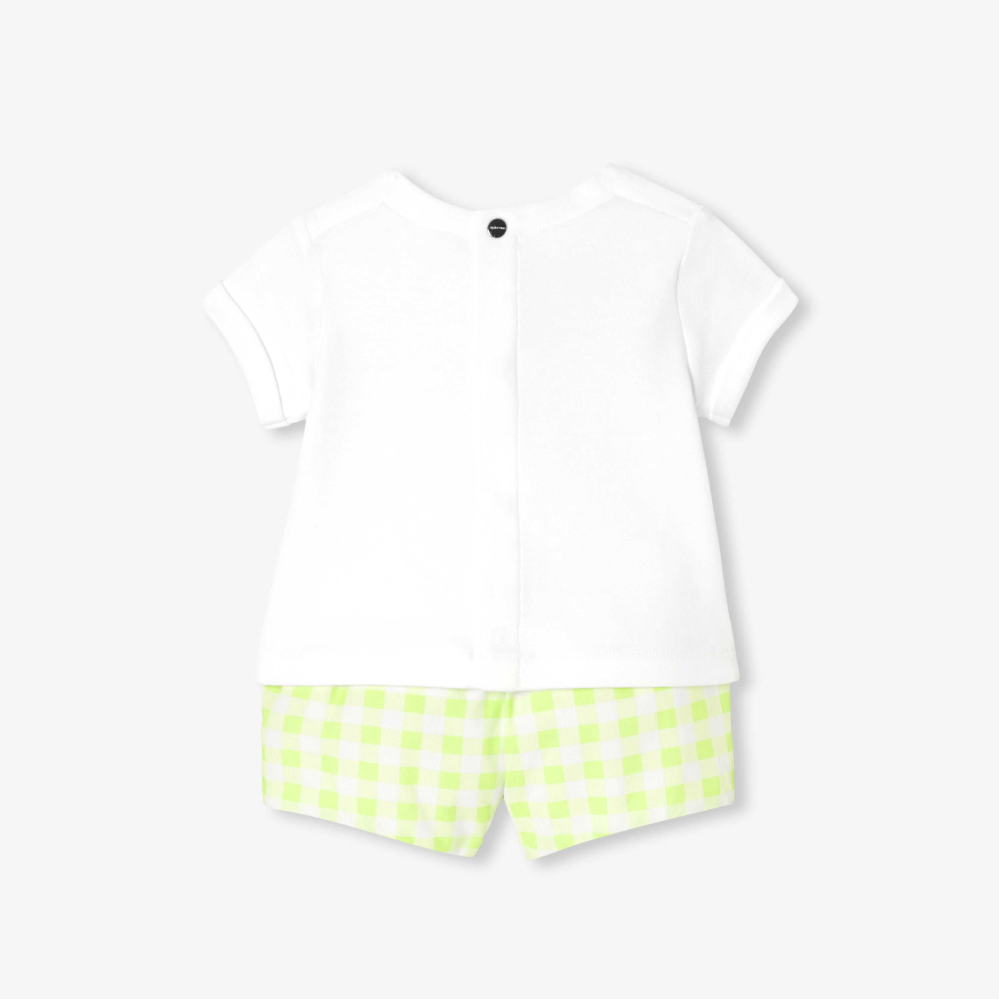 Questo completino bimbo è il duo perfetto da indossare per tutta l'estate. Questo completino per tutti i giorni e facile da indossare mixa gli stili con una t-shirt casual e shorts dal motivo vichy per un tocco retrò, rendendolo un fantastico regalo per le sue prime vacanze.