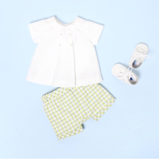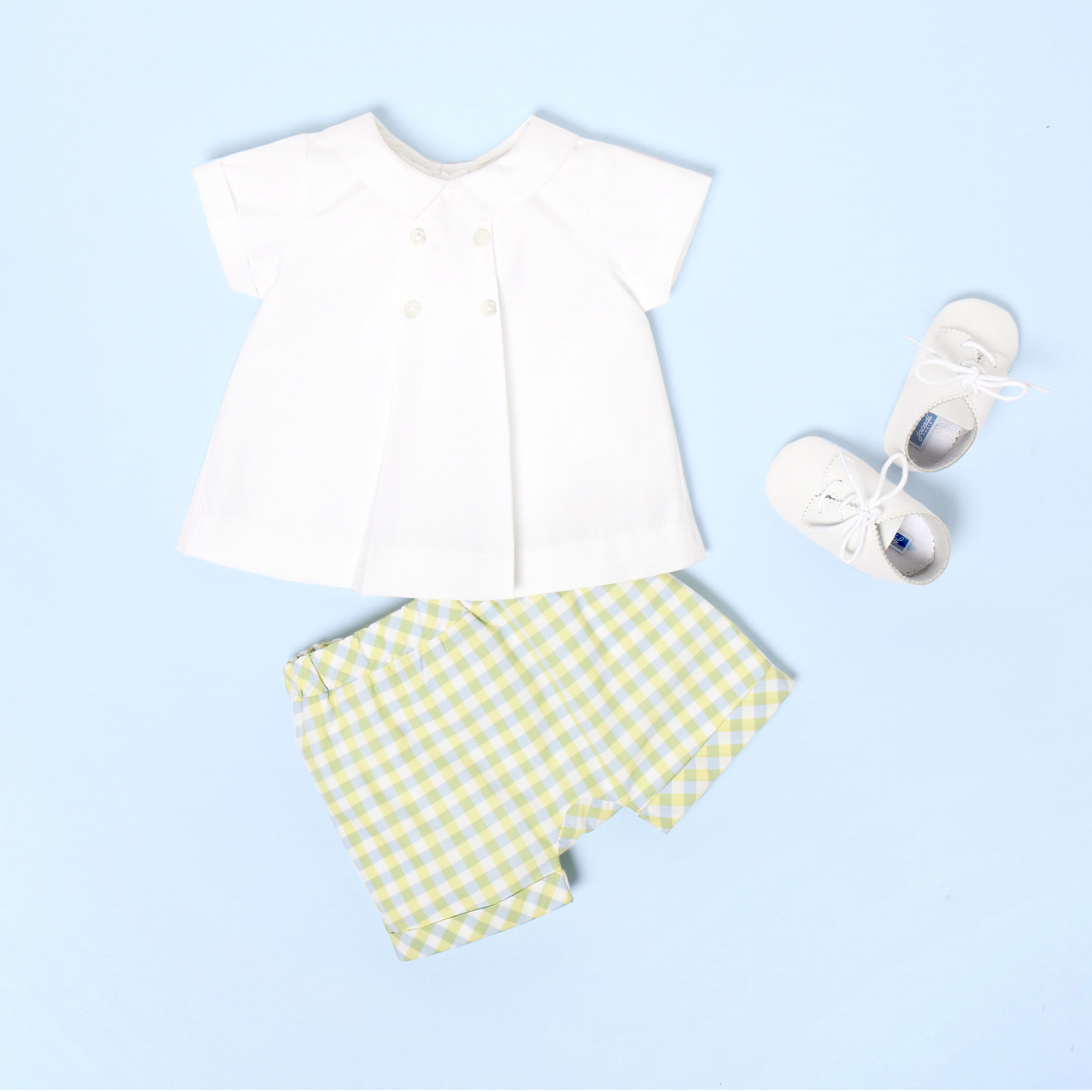Ideale per una cerimonia o per l'outfit quotidiano, questo completino bimbo ti conquisterà con le sue mutandine a quadretti Vichy e la sua t-shirt con colletto e piega piatta. Facile da infilare grazie all'apertura con automatici sul retro e l'elastico in vita, sarà una bella idea regalo per la nascita di un bambino.