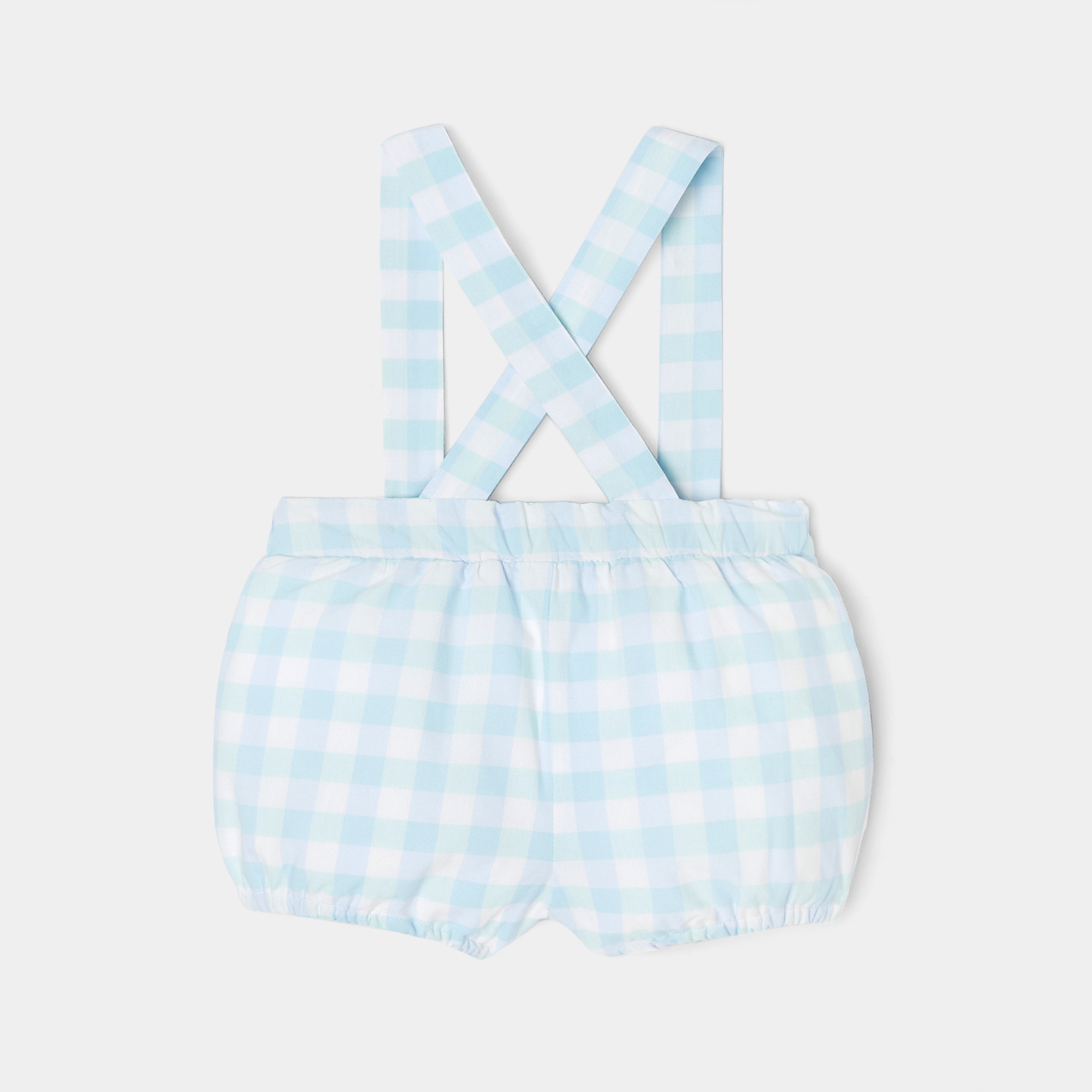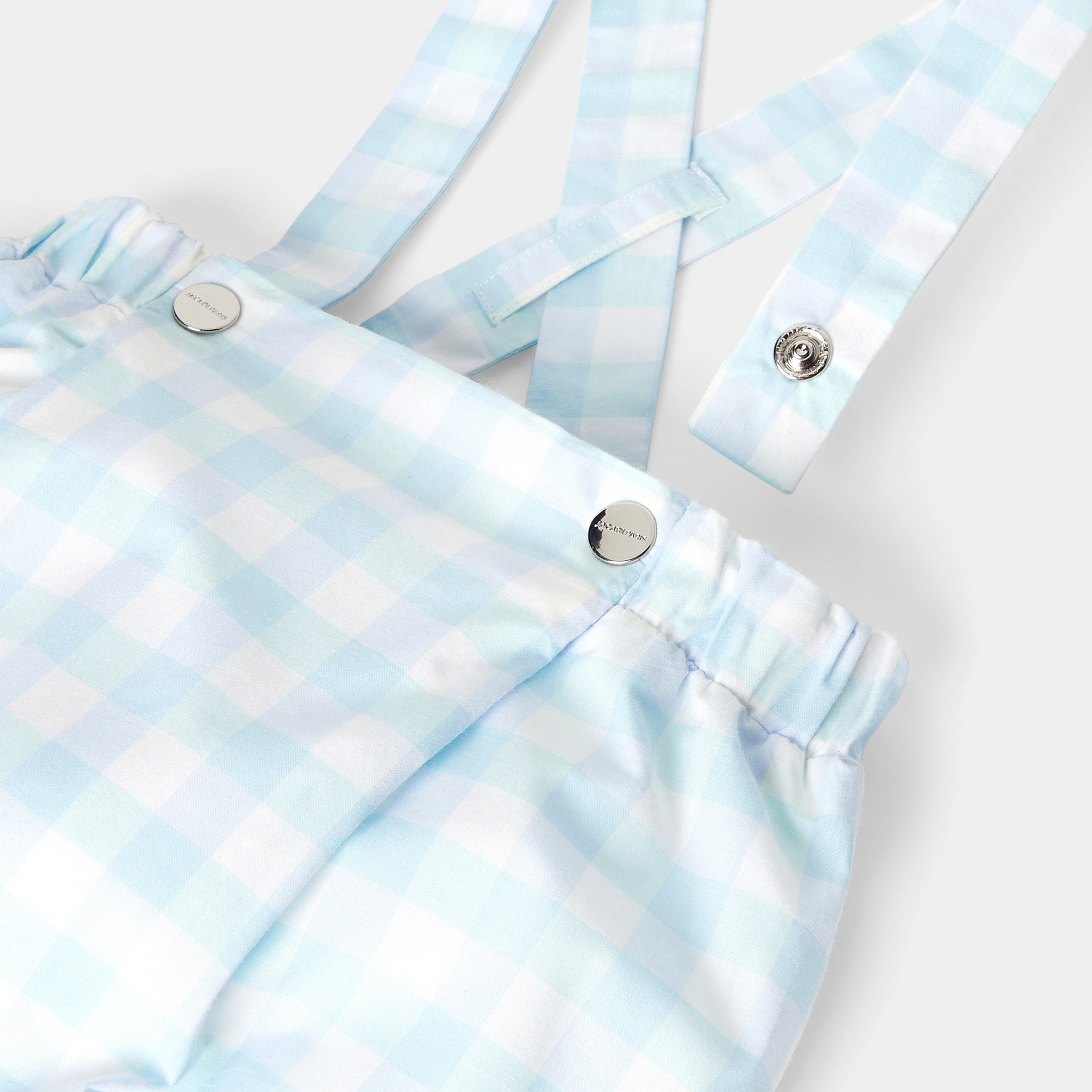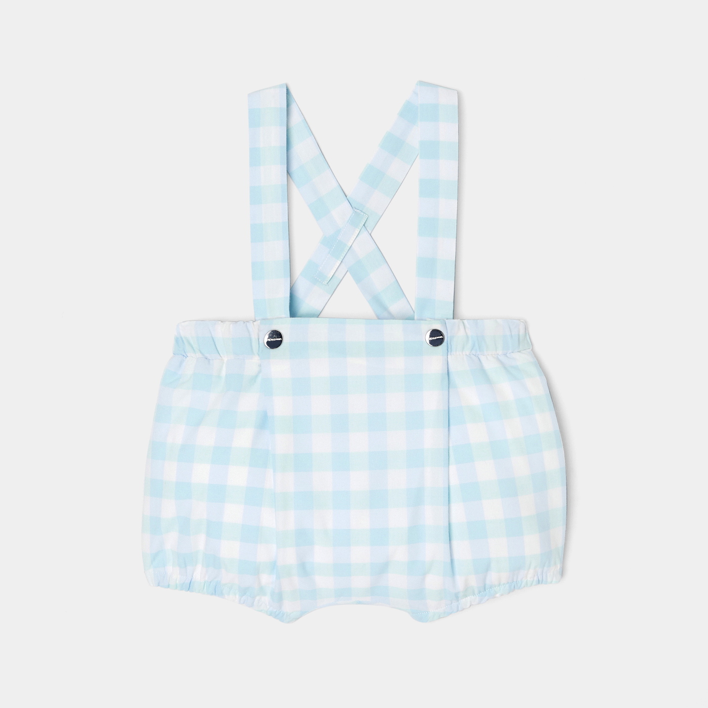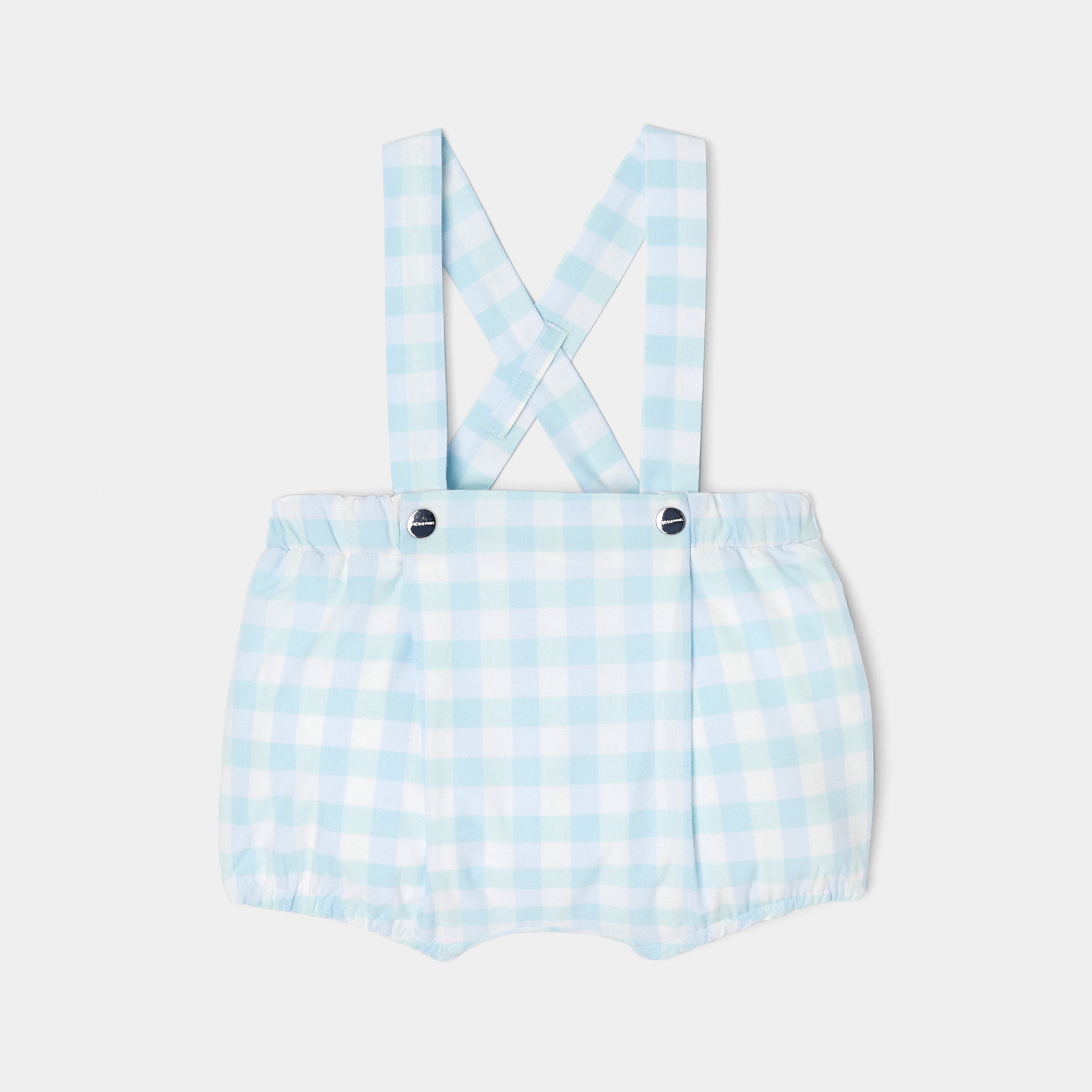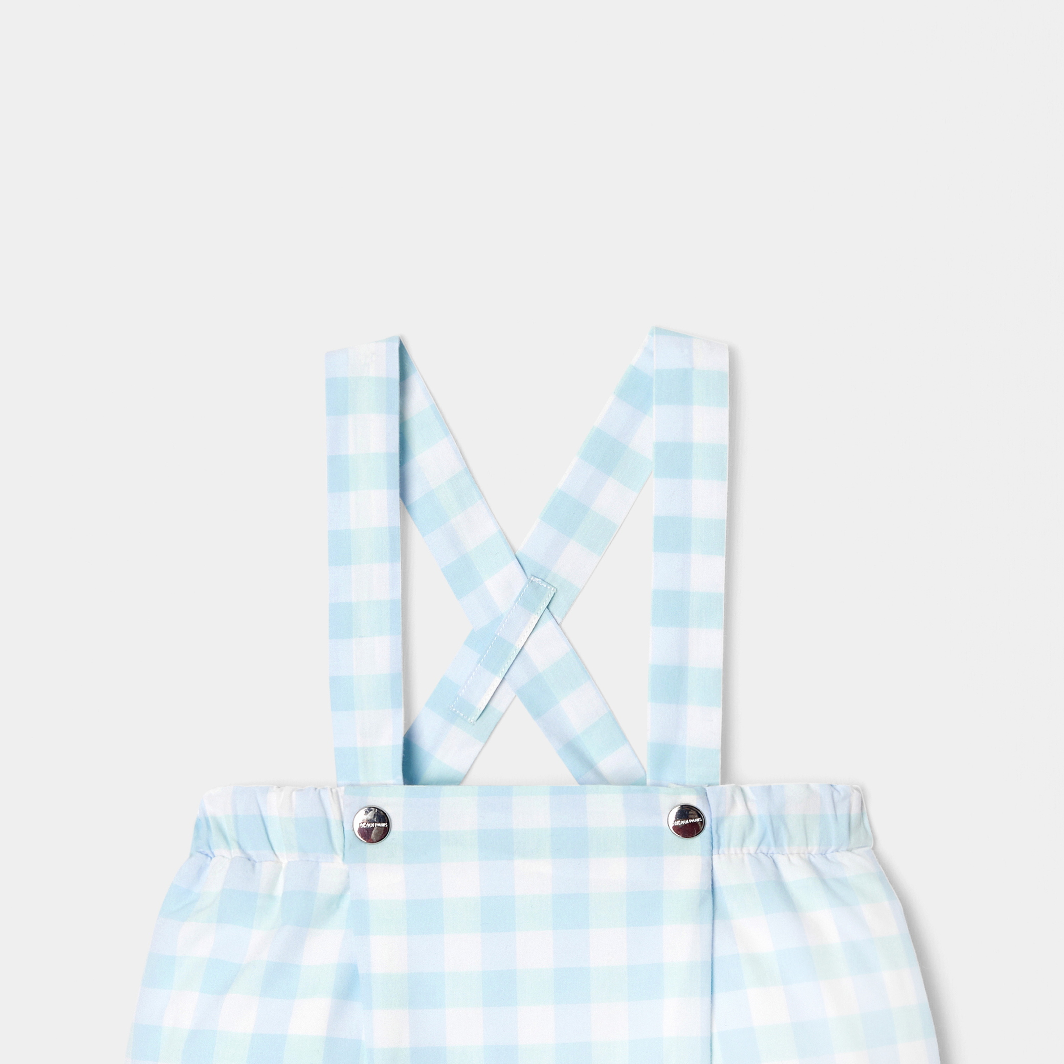 Moderno e autentico, il pagliaccetto bimbo di questa stagione è decorato con un motivo a quadretti Vichy fresco e frizzante, ideale per il ritorno a scuola. In cotone biologico e completamente foderato, bretelle incrociate, automatici con logo ed elastico in vita completano questo modello dall'eleganza francese che potrà essere indossato sopra un body per la fine dell'estate.