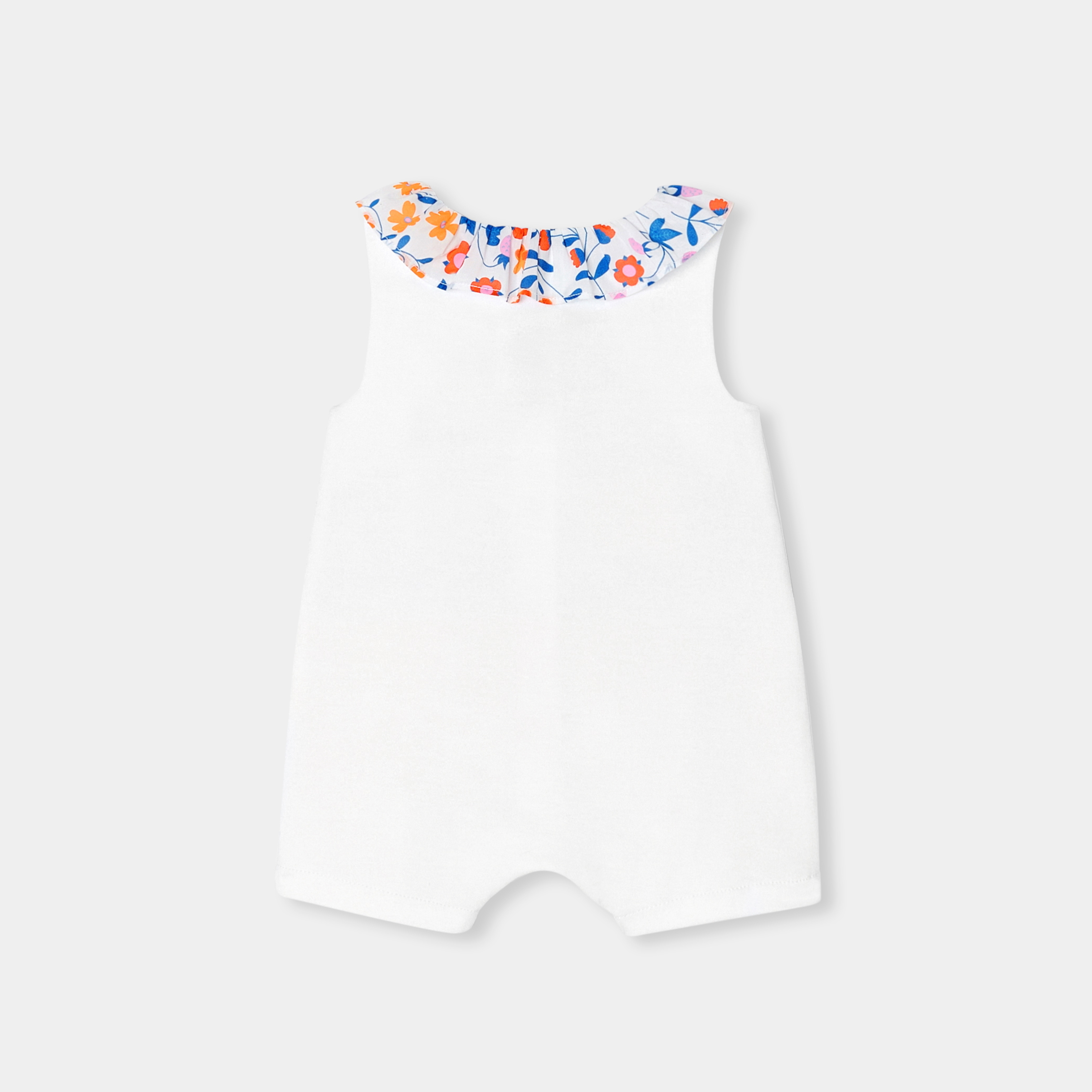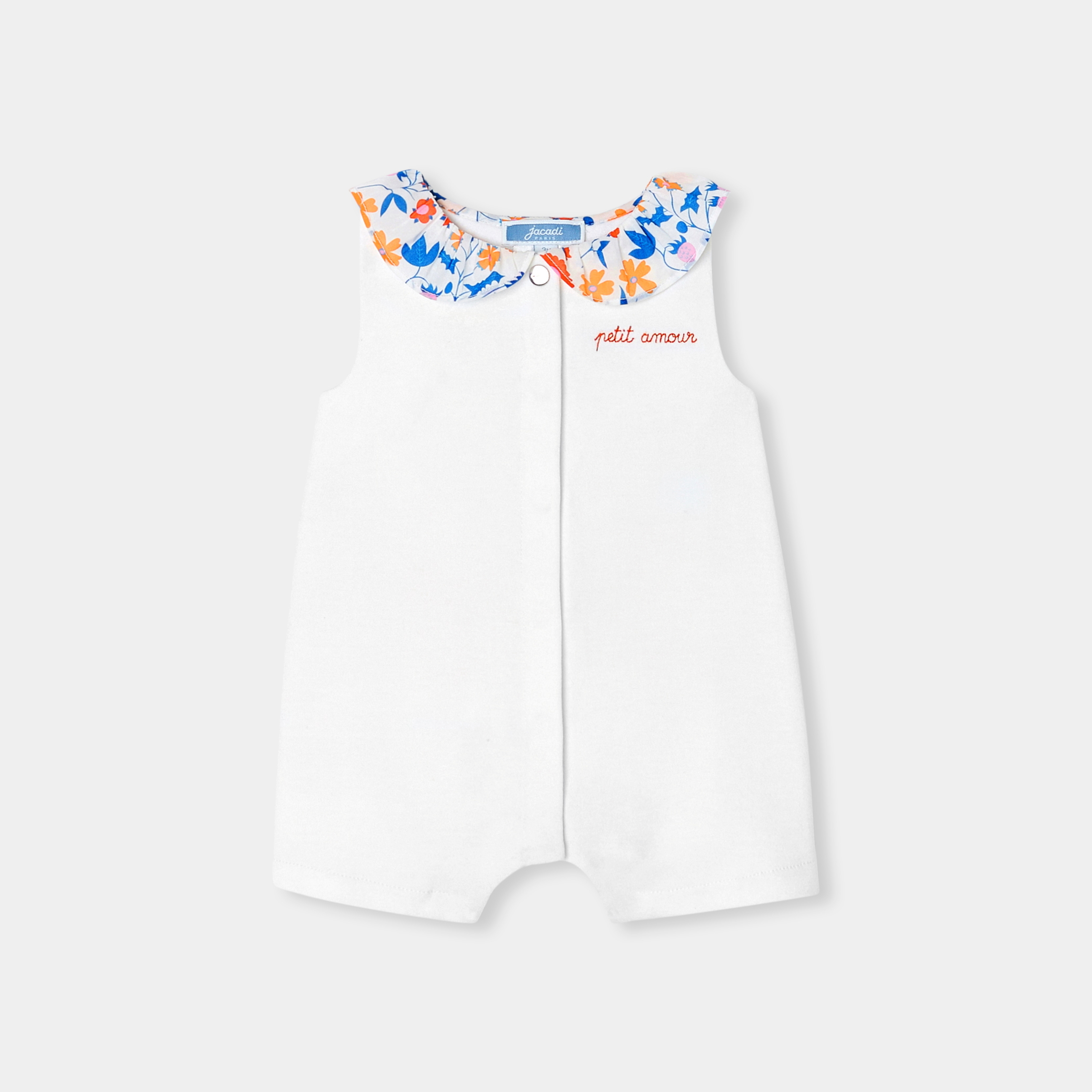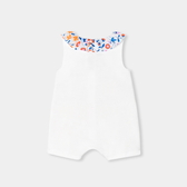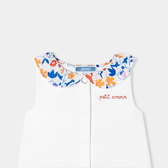 Pensato come una tutina da indossare tutta l'estate in città o al mare, questo pagliaccetto da bambina ha un look chic e minimalista. Impreziosito da un colletto in tessuto Liberty che dona colore e volume e con un tenero messaggio ricamato che completa questa incantevole tutina perfetta come idea regalo.
