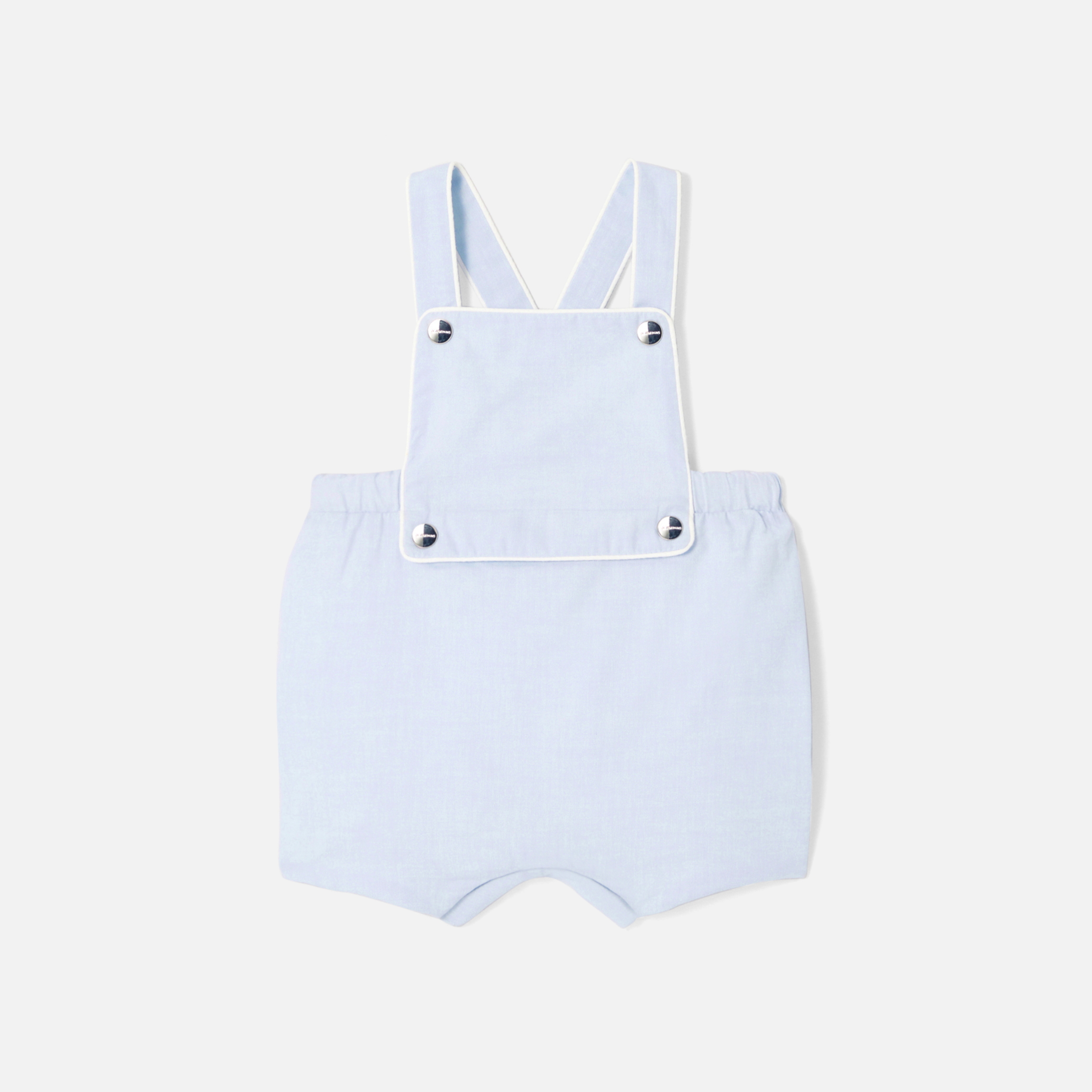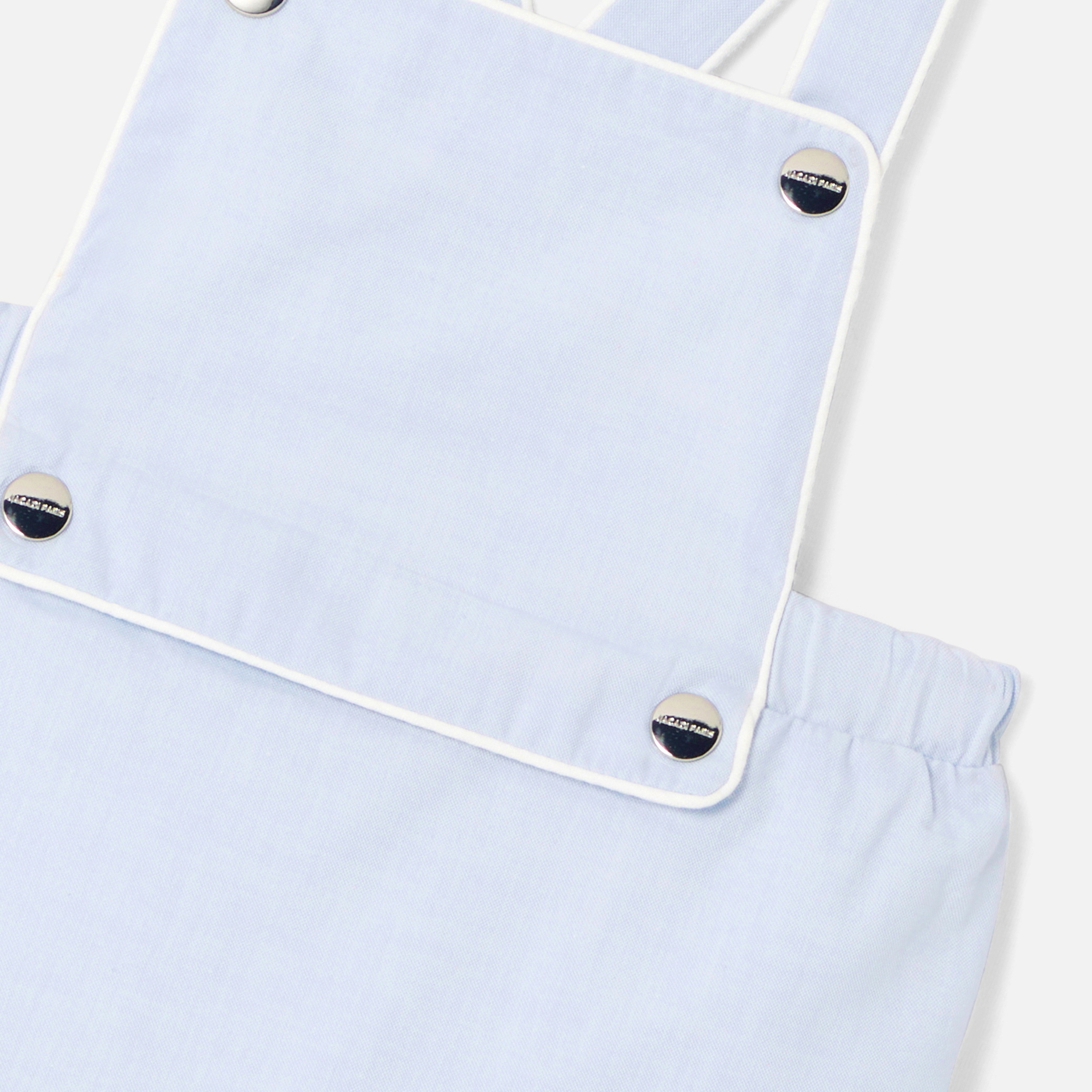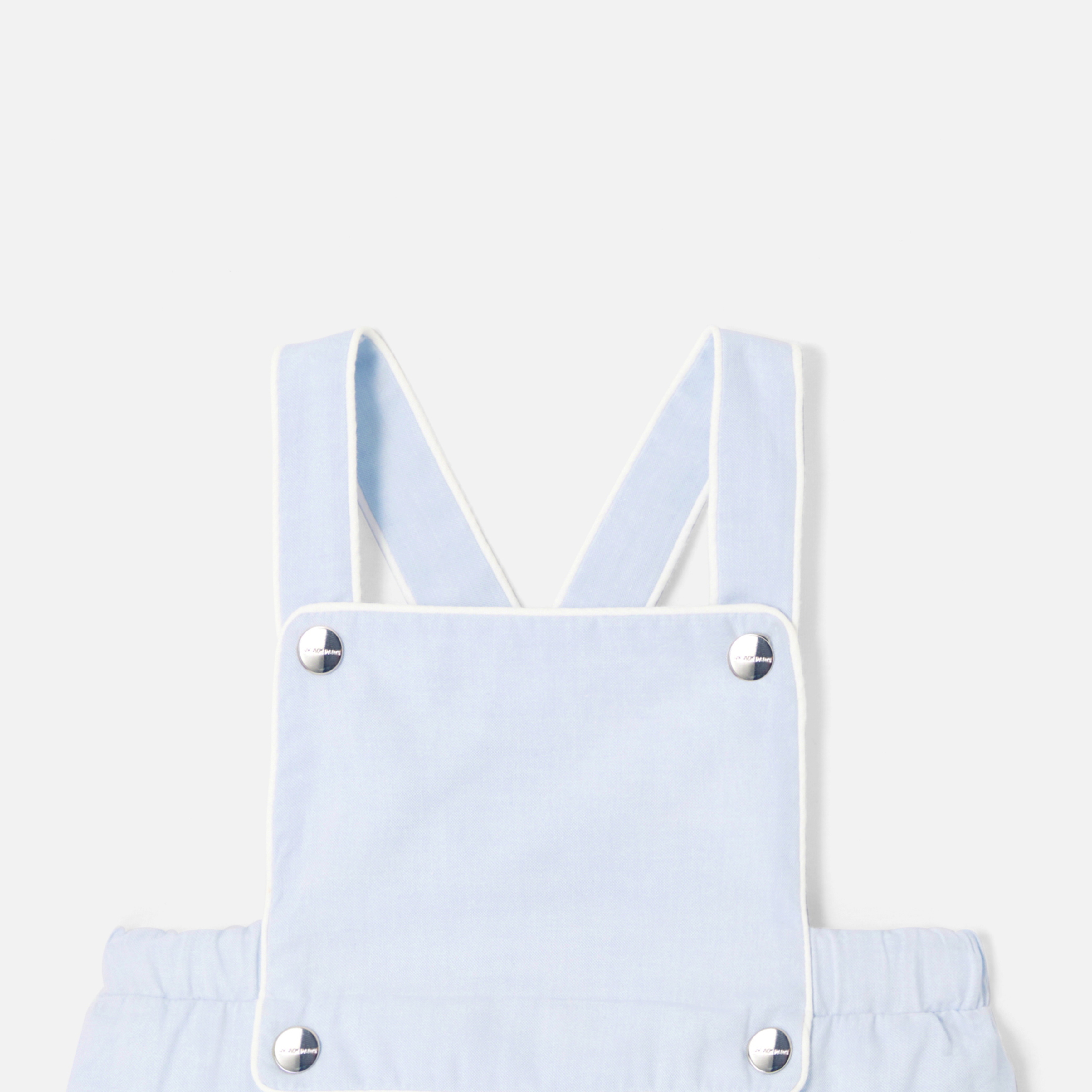 Immaginata per le belle giornate estive, questa salopette bimbo è realizzata in un elegante cotone biologico Oxford. Elegante e minimalista con la sua pettorina quadrata e gli automatici decorativi, è completamente foderata per il massimo comfort.