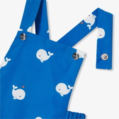 Questa stagione, la salopette corta bimbo è di grande tendenza. Il colore blu oceano e il motivo balene donano uno stile navy a questa salopette, mentre le bretelle incrociate sul retro aggiungono un tocco di modernità. Realizzato in morbido popeline, foderato e facile da infilare grazie all'apertura con automatici sul cavallo, questo modello estivo ti conquisterà.