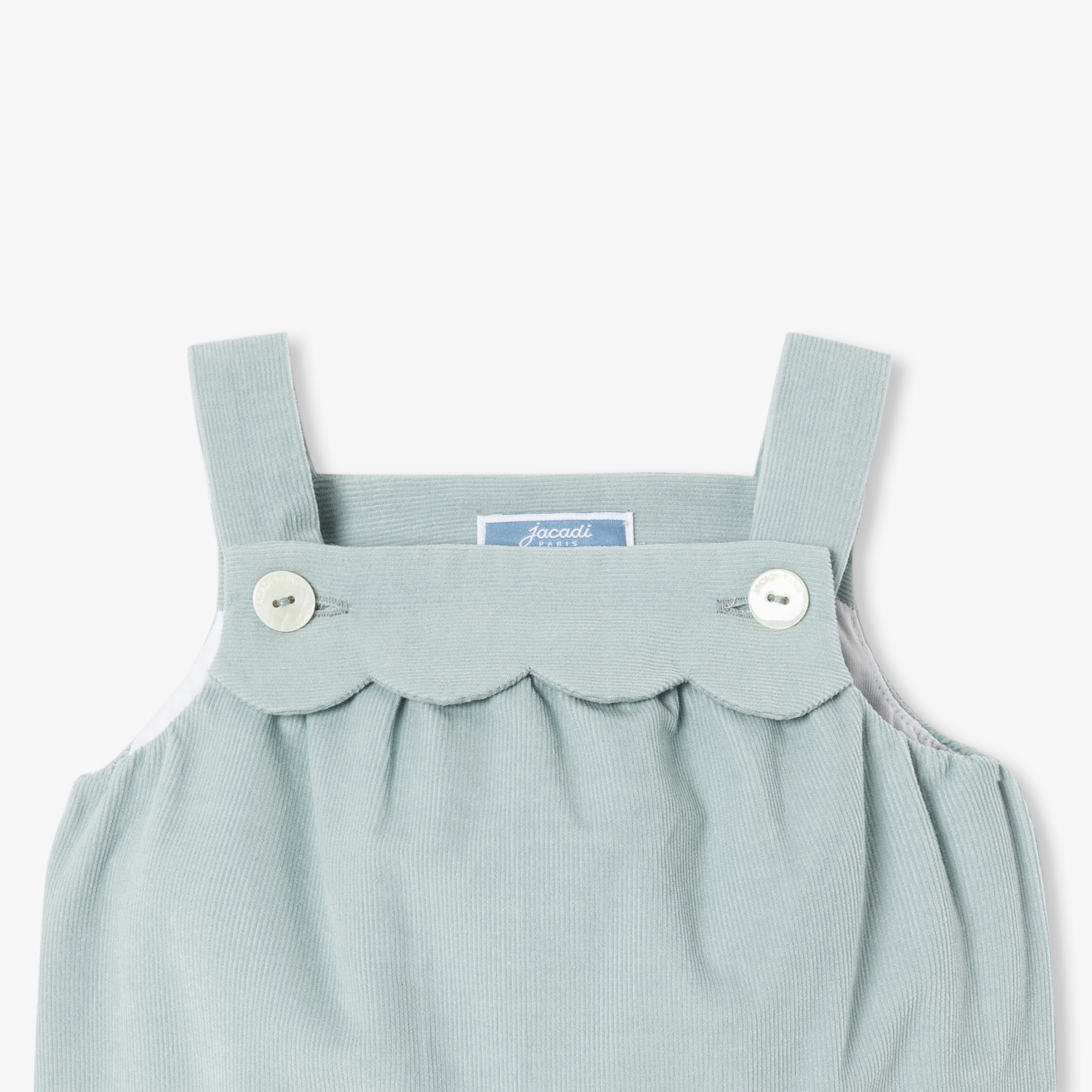 Il guardaroba autunno-inverno si tinge di colori tenui e rilassanti con questa salopette da neonata. Morbido velluto, graziosi dettagli smerlati e fodera in tessuto rendono questo modello perfetto per essere indossato tutti i giorni. Facile da indossare grazie agli automatici sulle bretelle e sul cavallo, abbina questo capo cosy e raffinato a un body e a un cardigan rosa per uno stile contemporaneo.