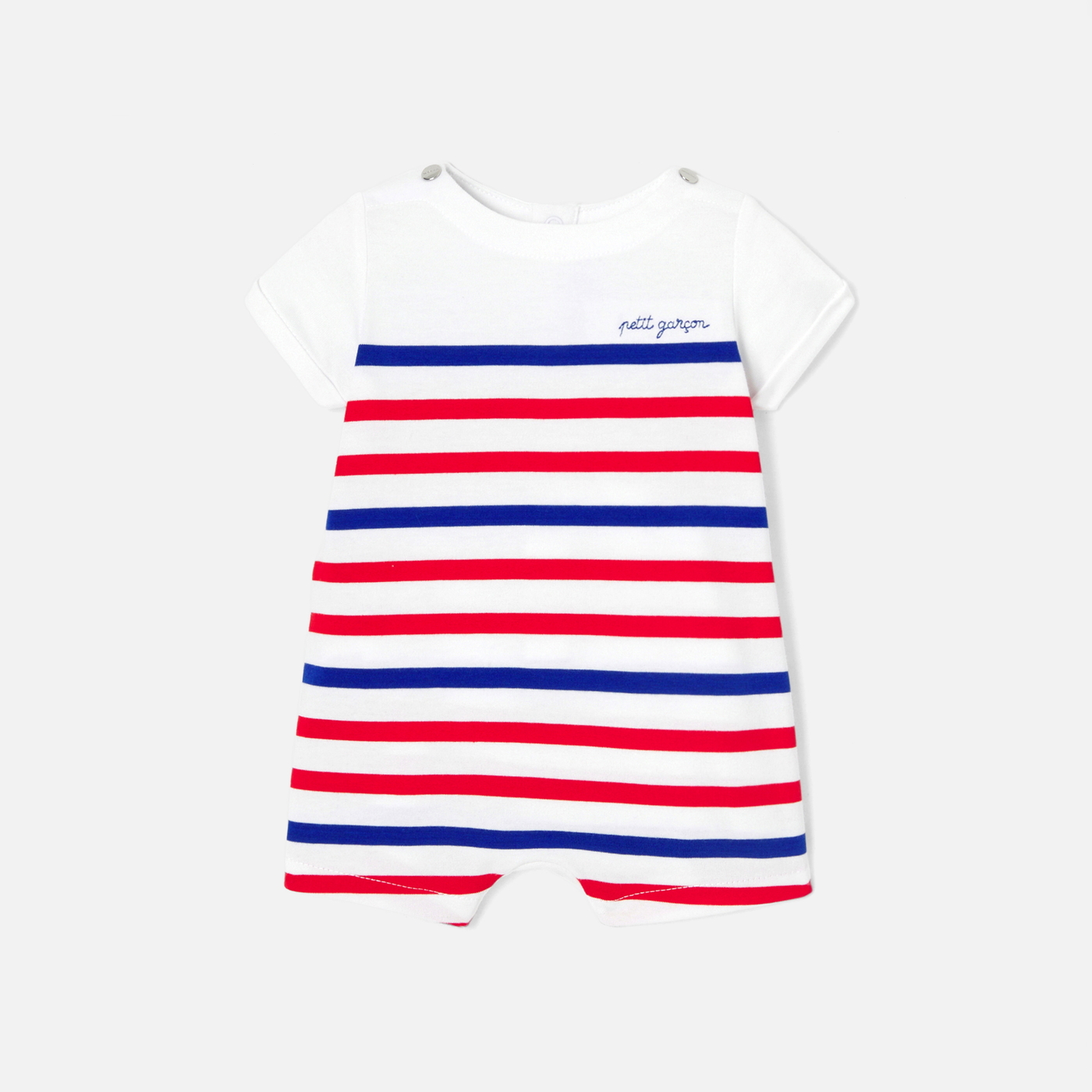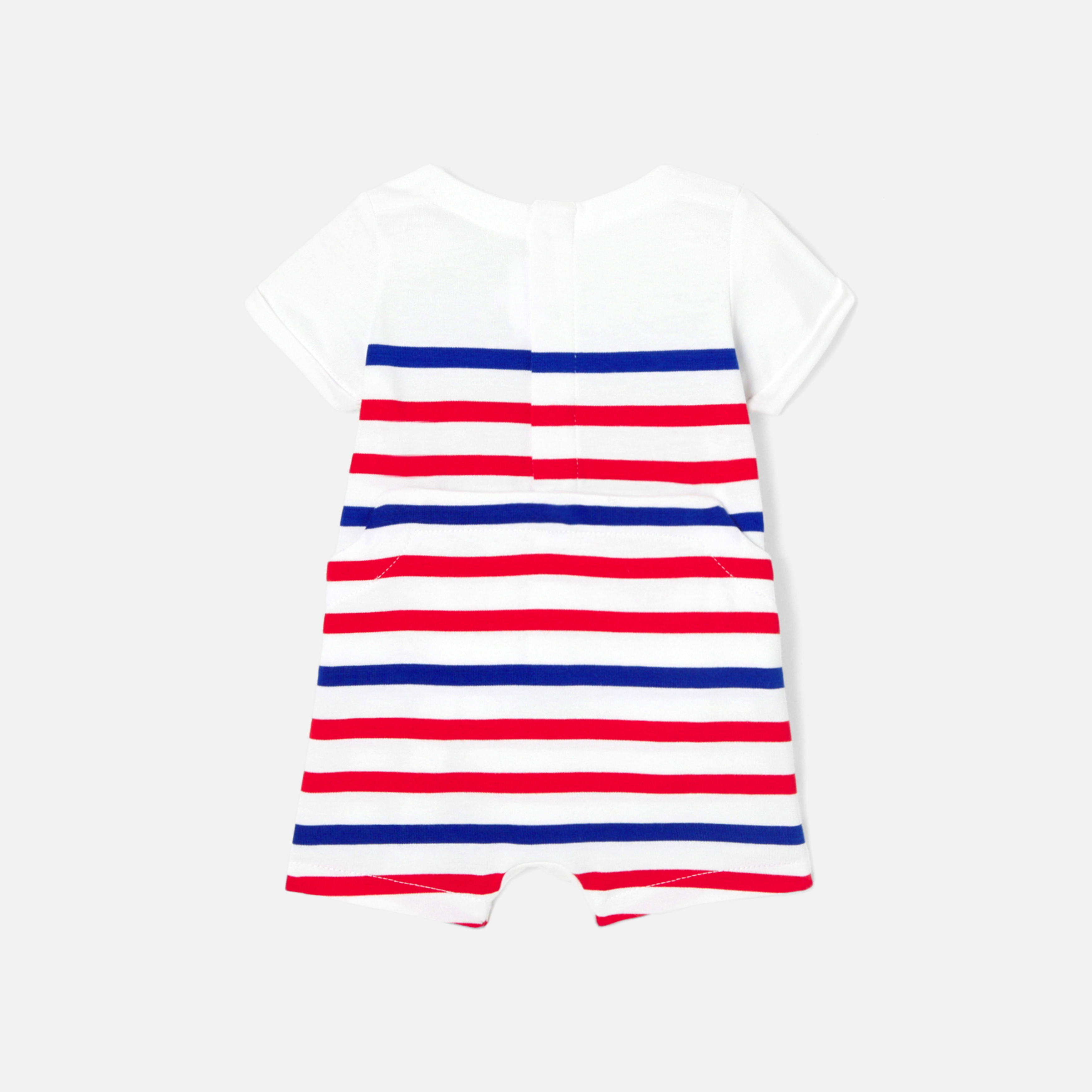 Scopri "L'Esprit Jacadi" con questa incantevole tutina bimbo. In stile marinière per un look navy, questa tutina in jersey di cotone biologico sarà perfetta per l'outfit quotidiano e le vacanze.