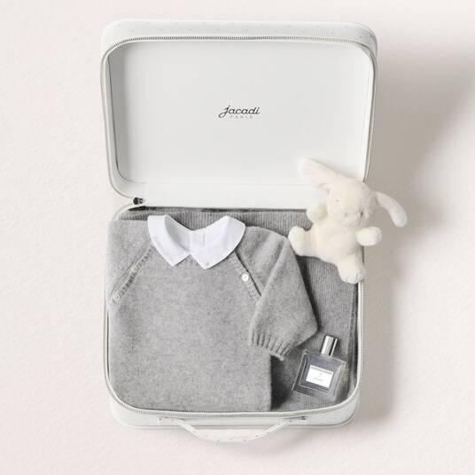La tutina per neonati di questa stagione trova il giusto equilibrio tra raffinatezza e stile casual. In pregiato cachemire, le sue linee eleganti ed essenziali offriranno comfort e calore ai più piccoli sin dall'autunno. Dotato di un'apertura sullo scollo e sul cavallo, questo capo dall'eleganza francese potrà essere indossato sopra un body e sarà una bella idea regalo per la nascita di un bambino.