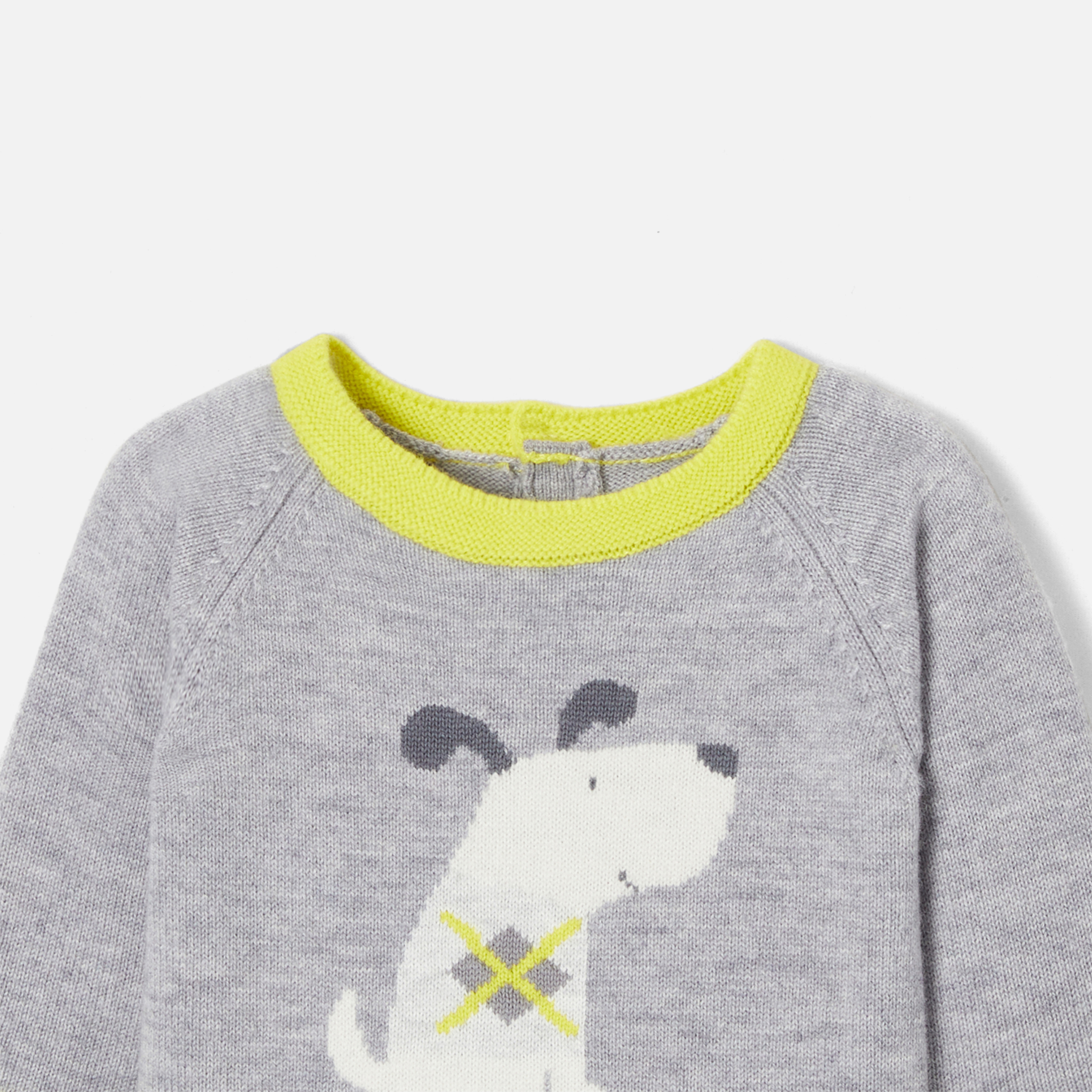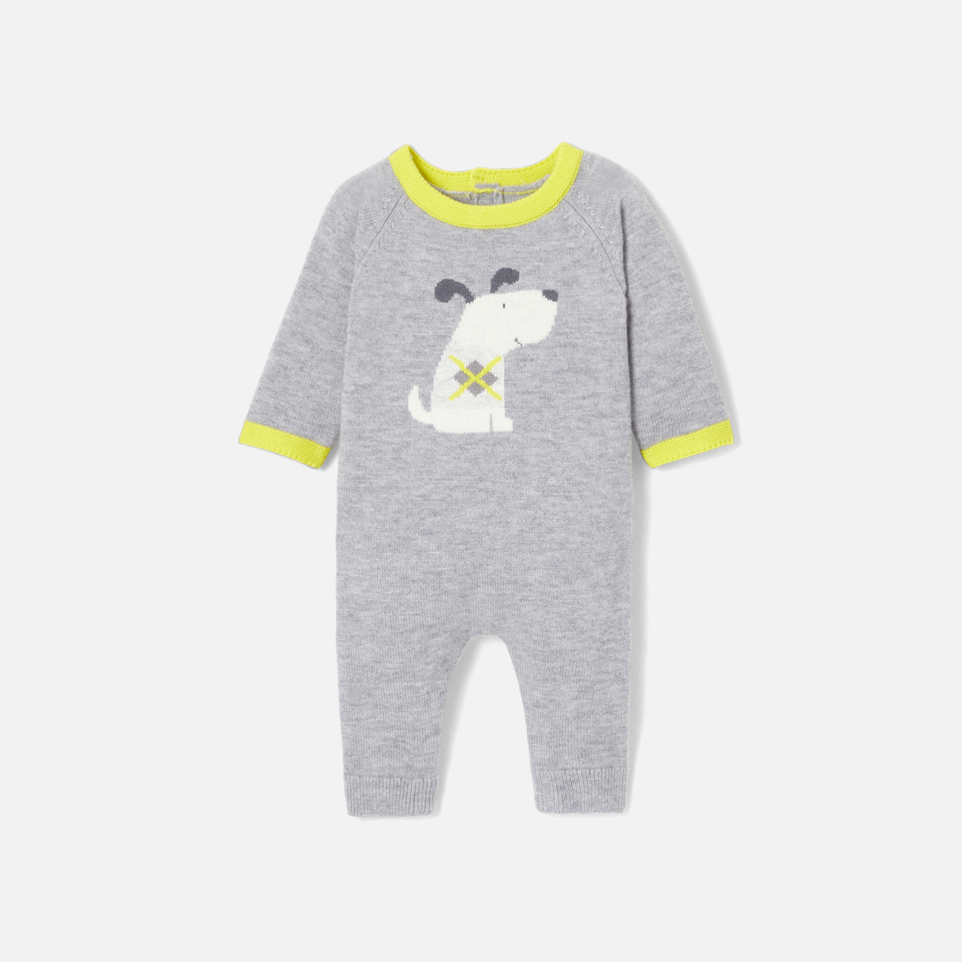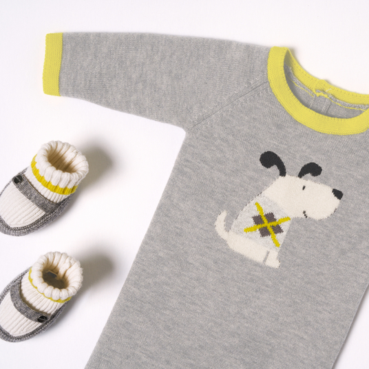 Quest'autunno, la tutina bimbo punta su linee grafiche ed eleganti. In lana sostenibile e cachemire, un cagnolino a intarsio e finiture a contrasto dinamizzano questo capo realizzato con cura. Indossata su un body e abbinata a graziose scarpine, questa tutina non può mancare nel guardaroba dei più piccoli.