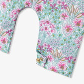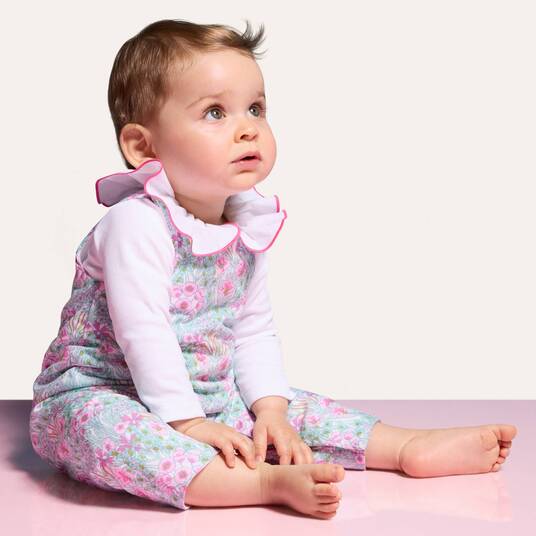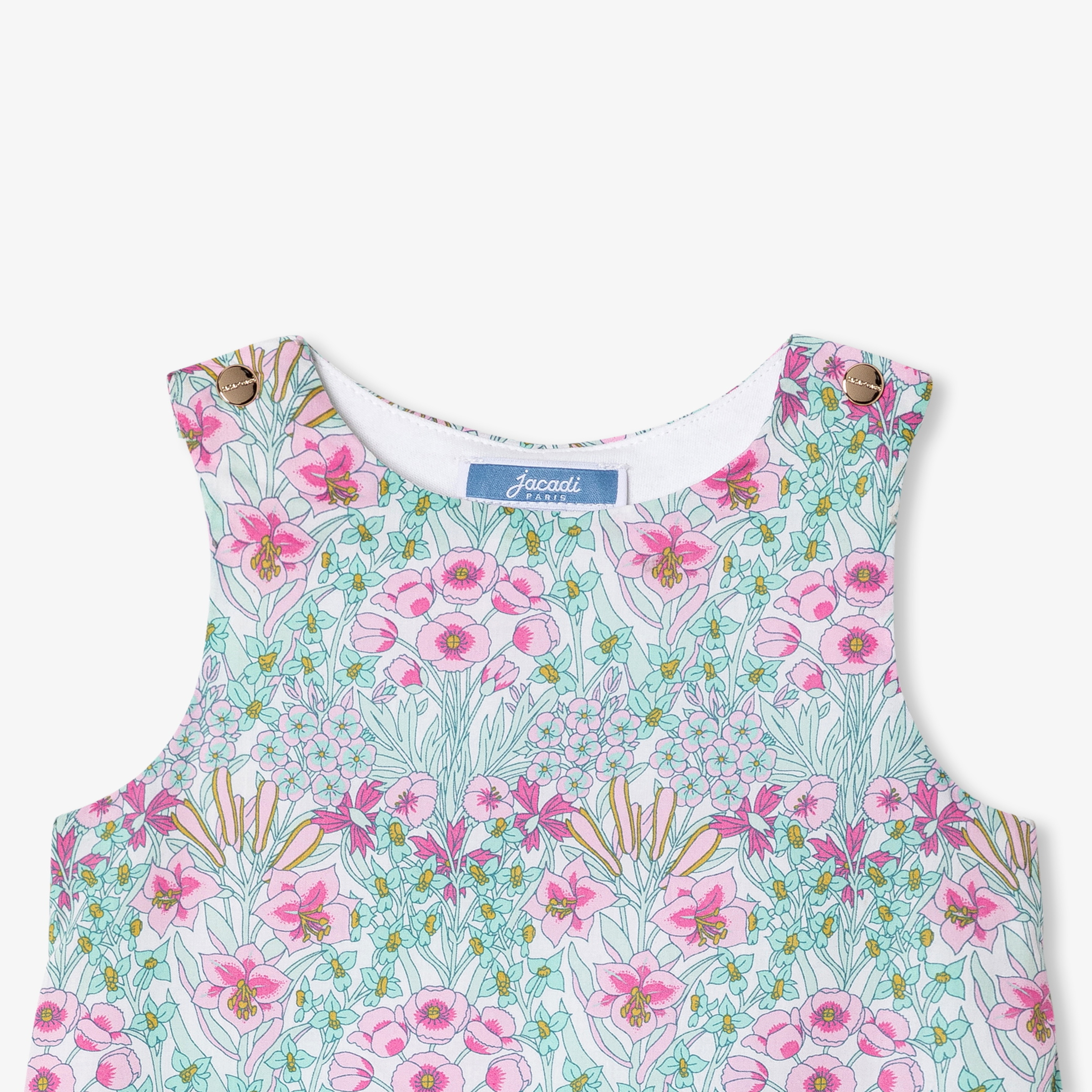 Questa tutina da neonata in tessuto Liberty trasporta in un mondo romantico e colorato. Modello minimalista, facile da indossare, con bottoni automatici su spalle, fianchi e cavallo. con fodera in tessuto per garantire comfort e morbidezza. Abbinata a un body e a un cardigan rosa per il nido e per tutti i giorni, seguirà la tua piccolina in tutte le sue scoperte.