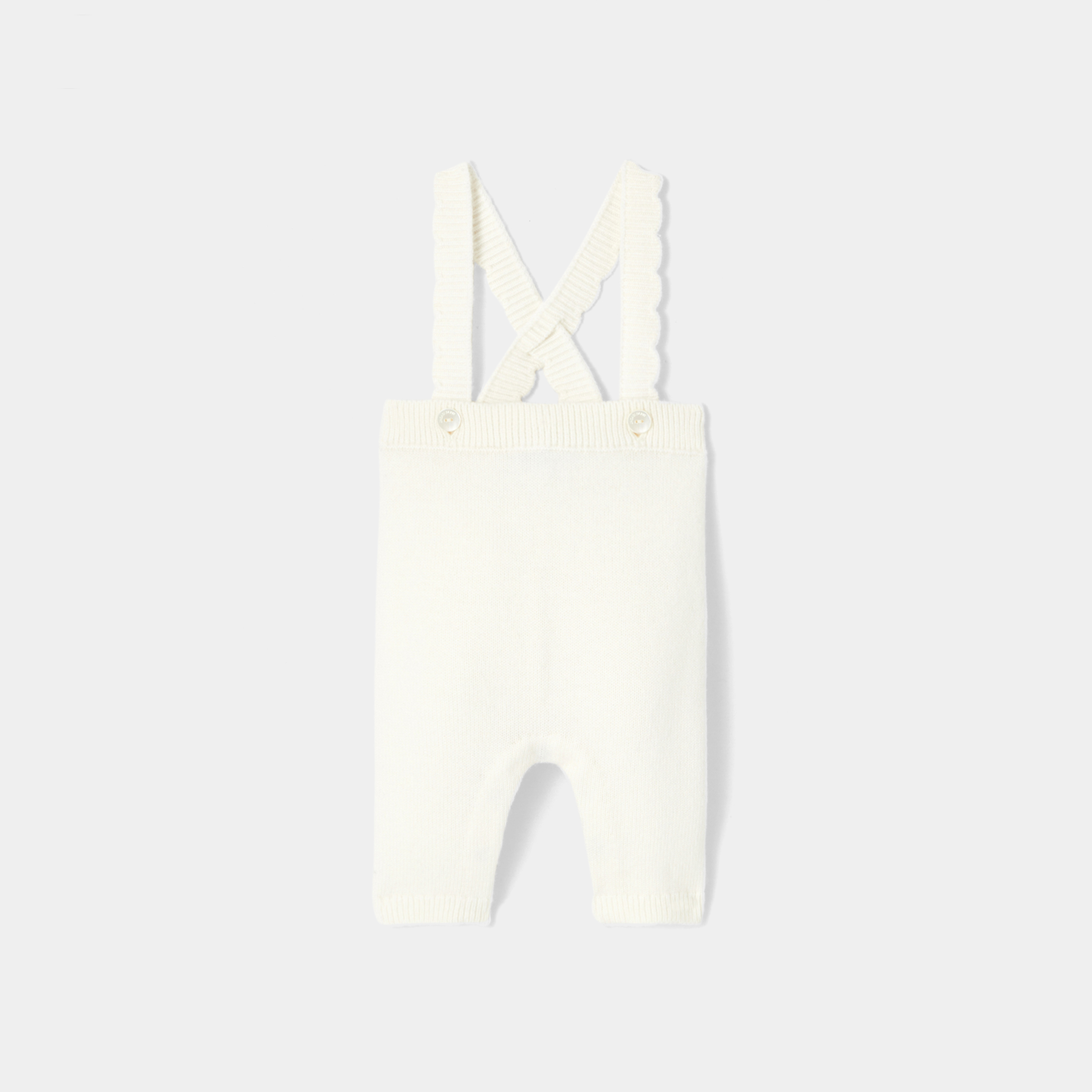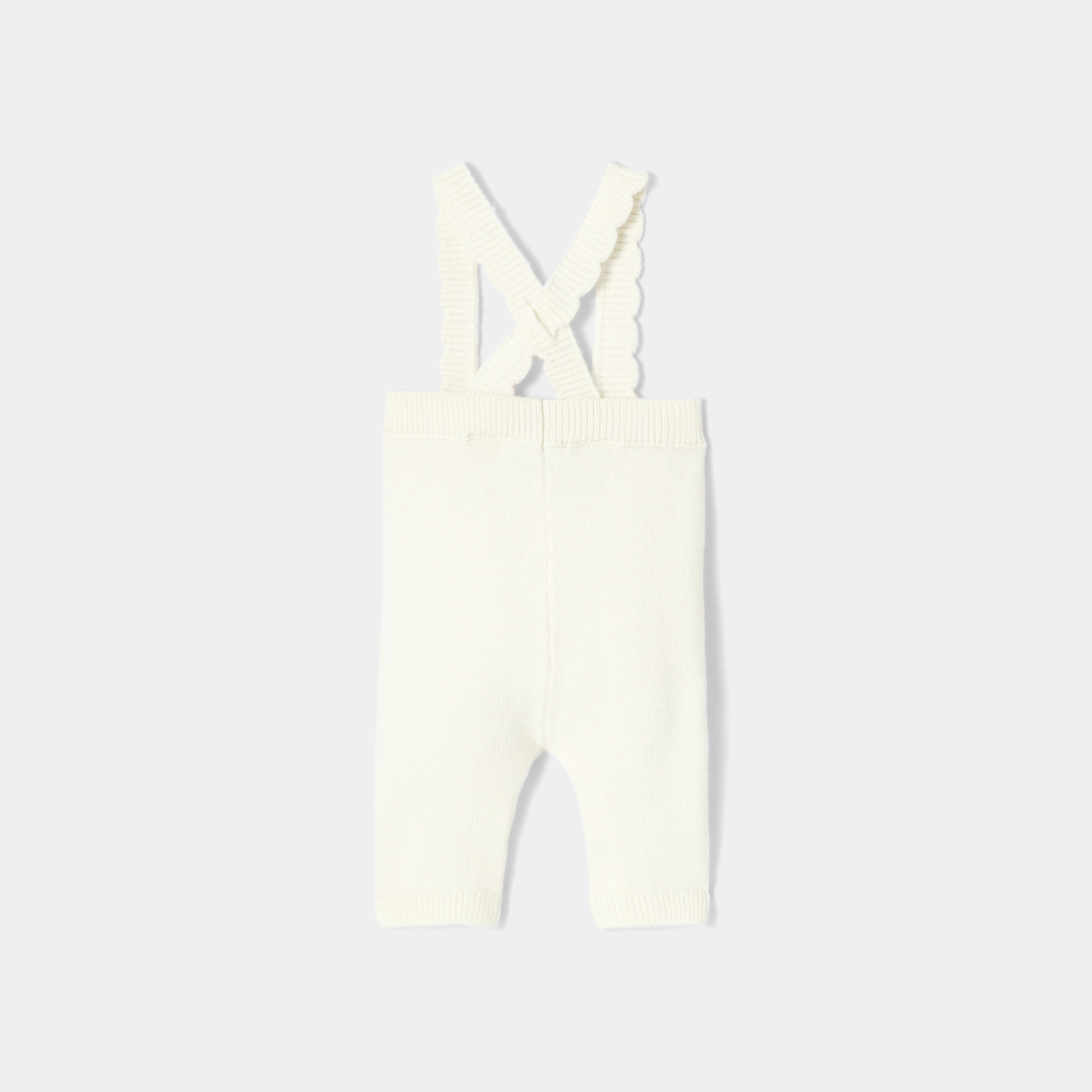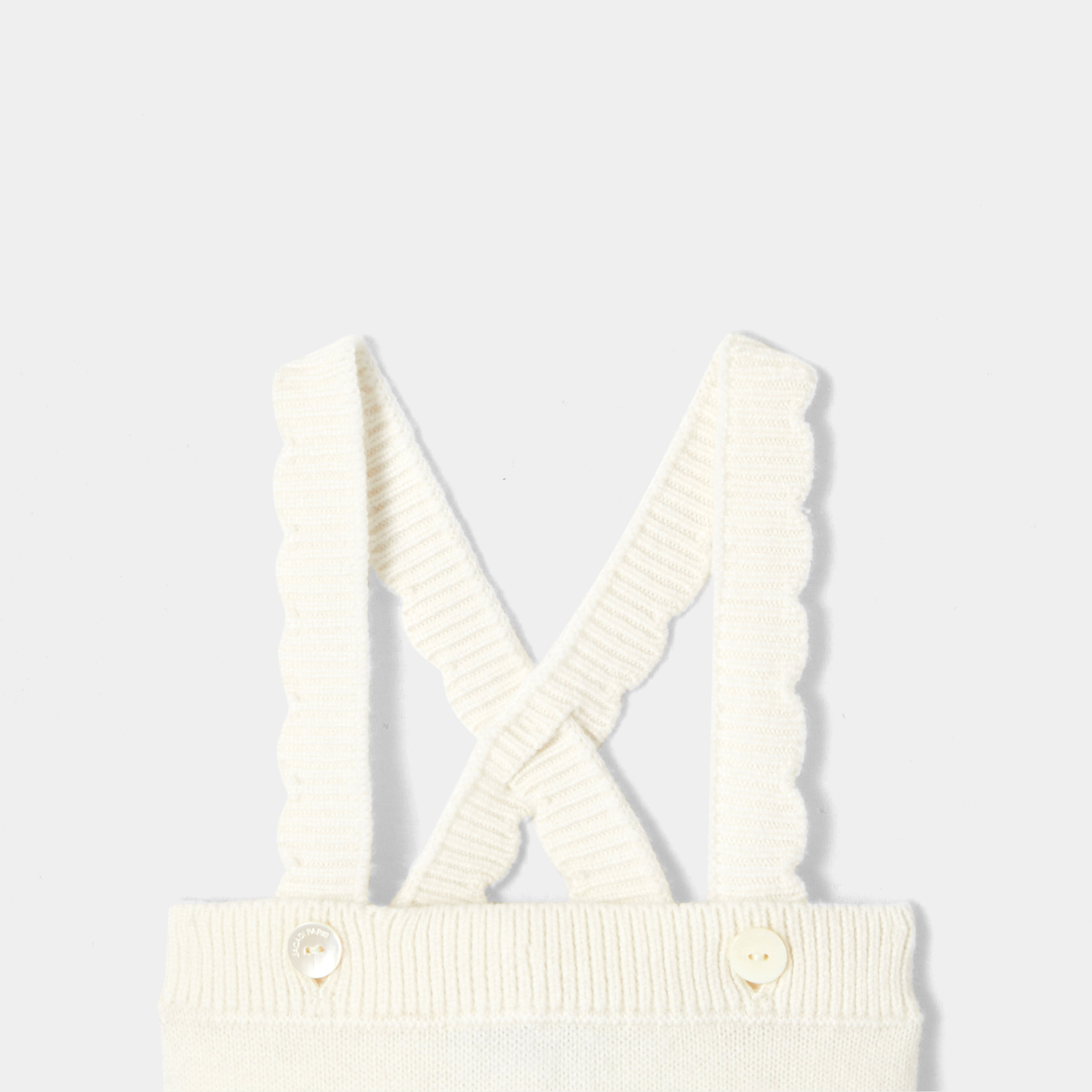 Per un outfit quotidiano all'insegna del comfort e dell'eleganza, gli stilisti hanno creato queste deliziose ghettine a vita alta per evitare che le bimbe si scoprano. Arricchite da bretelle con bordi smerlati e realizzate in lana merino e cachemire, queste ghettine a vita alta, da abbinare a un body con colletto a petalo, offriranno comfort e benessere alle più piccole.