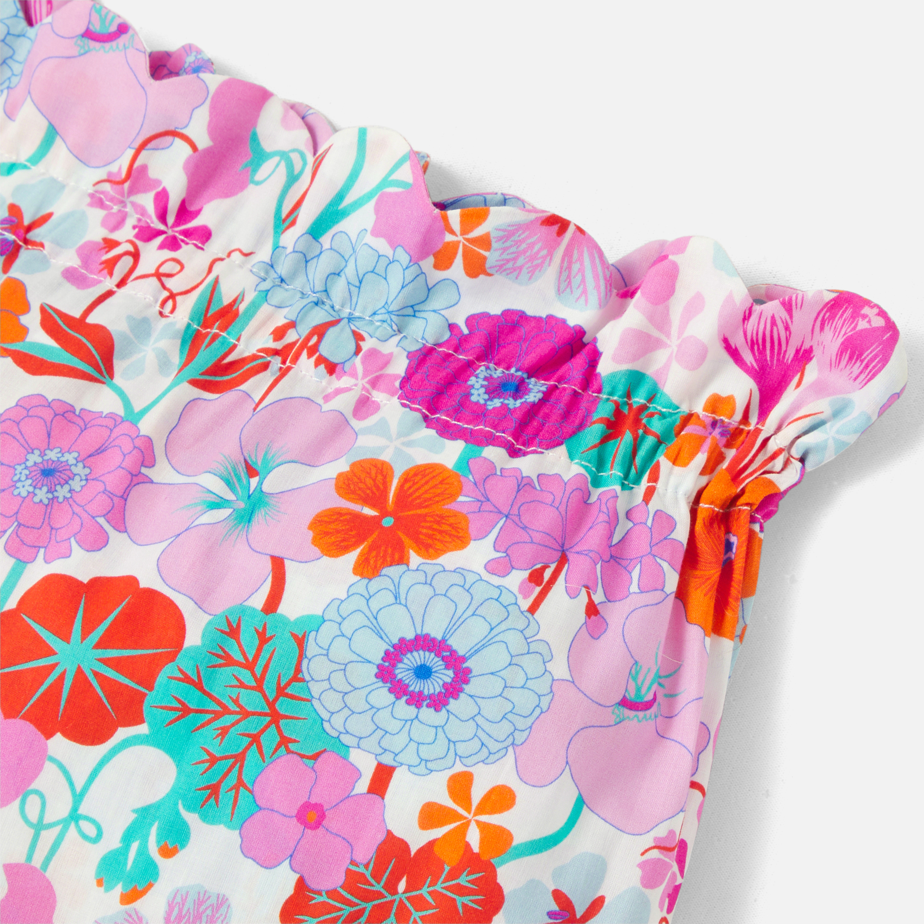 Queste mutandine bimba sono perfette per creare belle combinazioni moda. Da indossare in piena estate con un body o con l'abito coordinato, gli stilisti hanno rielaborato il tessuto Liberty Fabrics ingrandendo i motivi per un look ultra contemporaneo. Smerlate e dotate di elastico in vita, queste mutandine sono irresistibili.