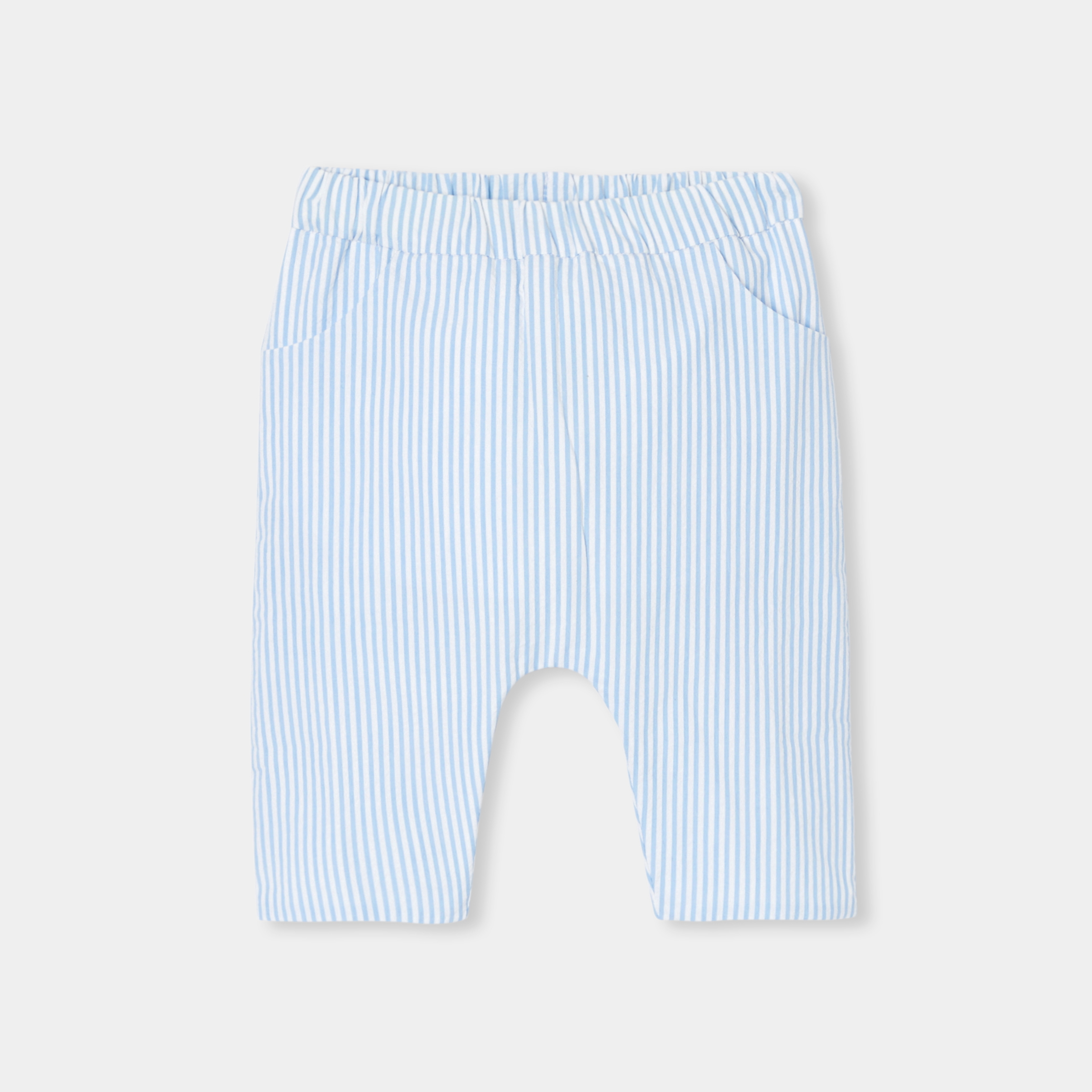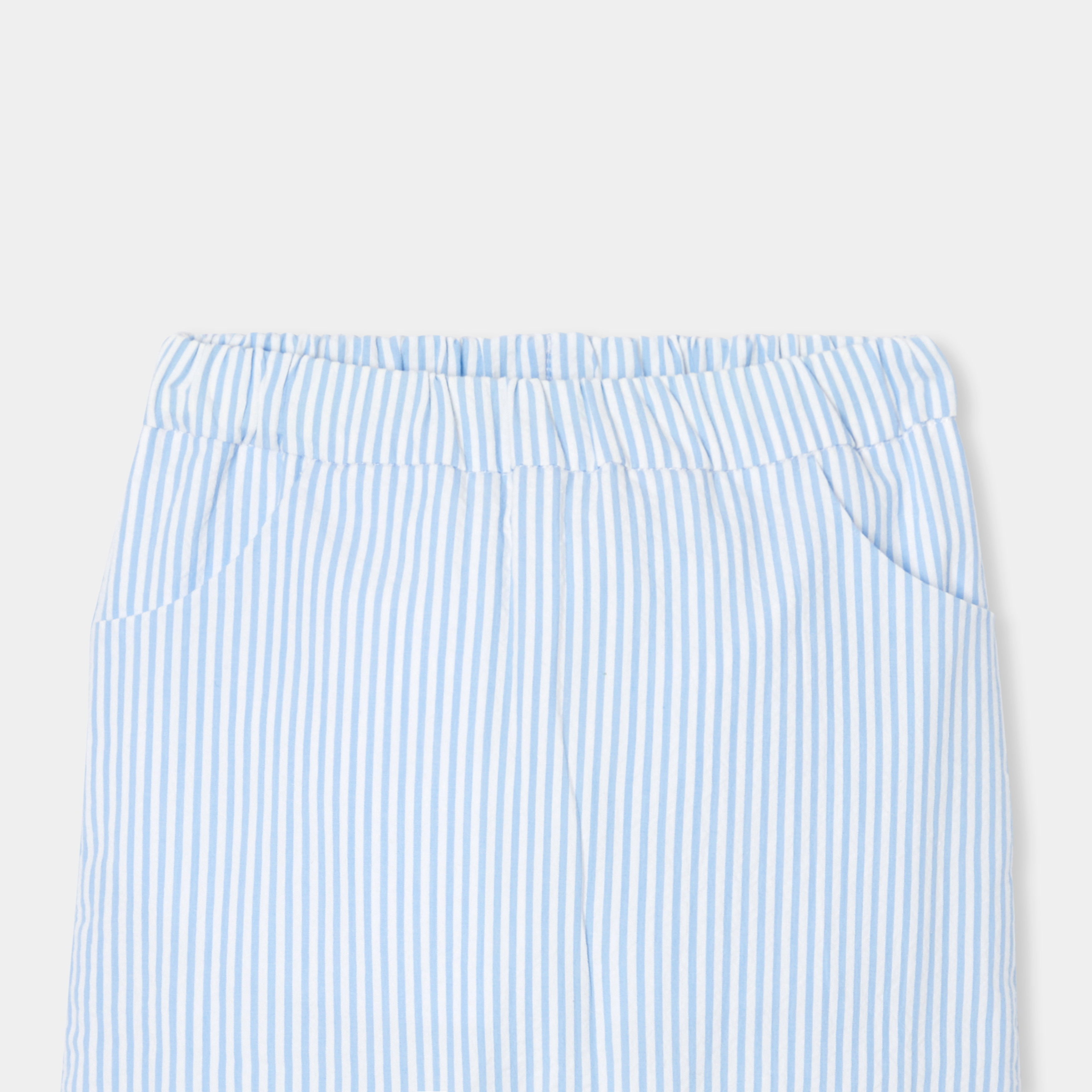 Casual chic e comodi, questi pantaloni da bambino sono pronti per la stagione estiva. Realizzati in seersucker con un comodissimo effetto goffrato, sono foderati in popeline per il massimo comfort. Da abbinare a una t-shirt e a un cardigan stile teddy per un look alla moda, questo nuovo modello pratico e a misura di bambino è irresistibile.