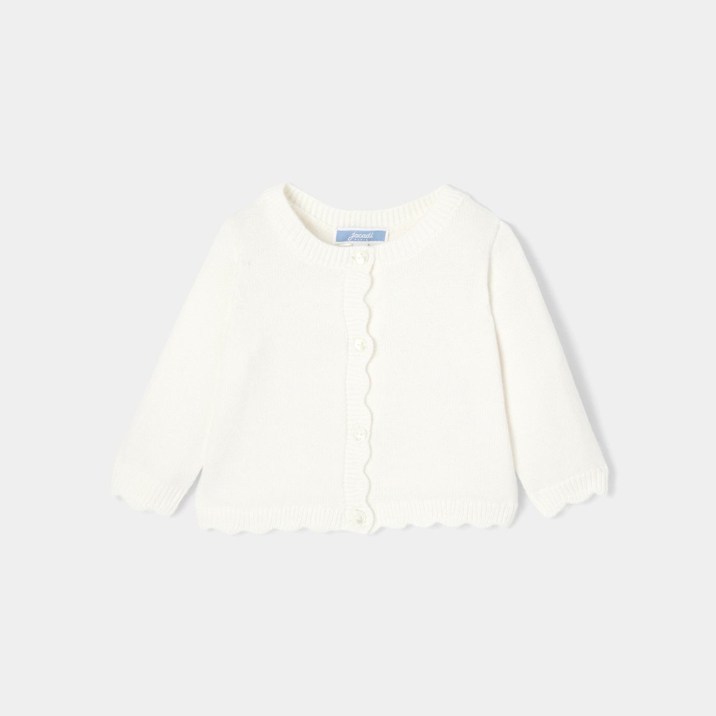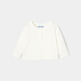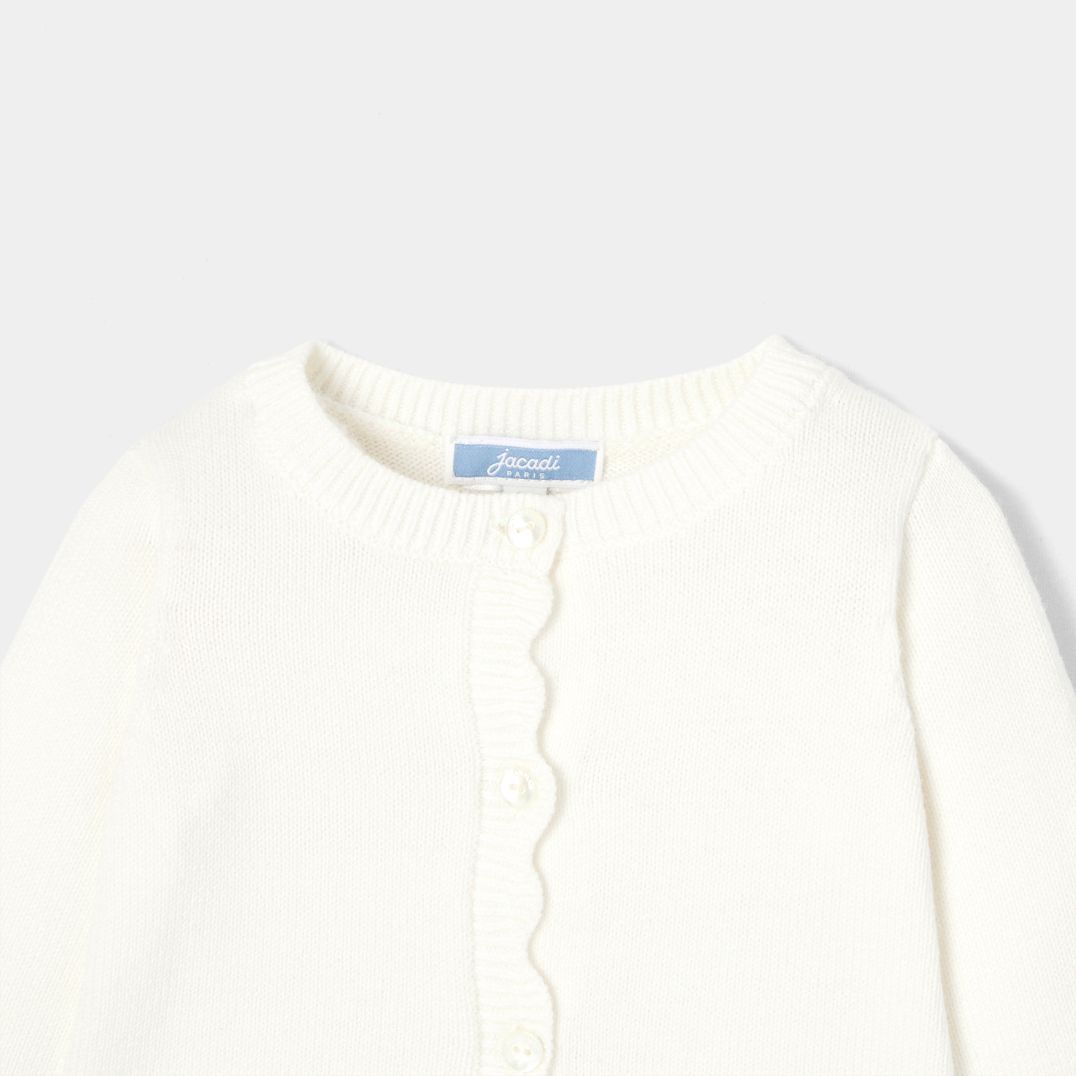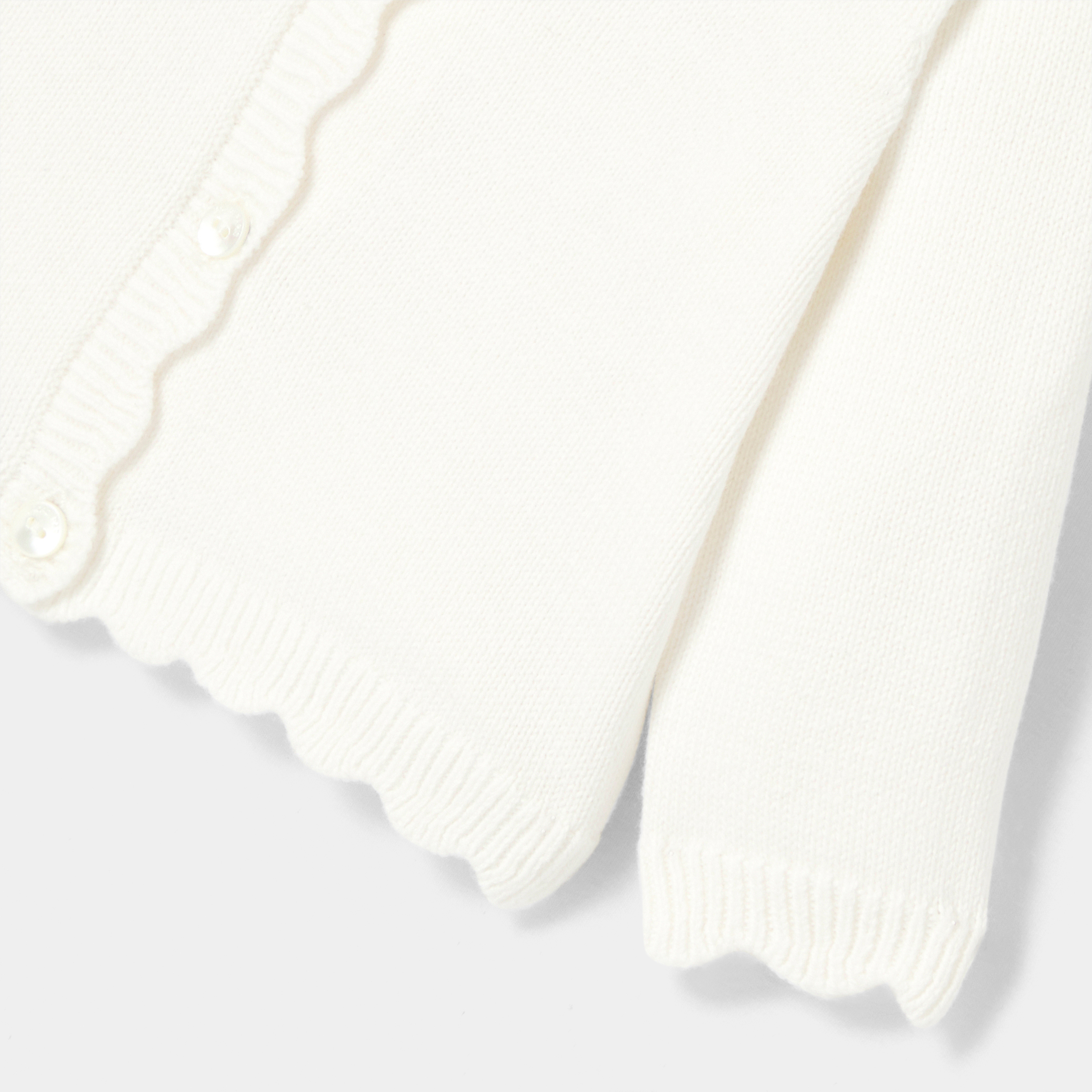 Per riscaldare un outfit da cerimonia, l'immancabile cardigan bimba di questa stagione è realizzato in lana sostenibile e cachemire. In tinta unita e quindi facile da abbinare, scegli un bell'abito in tessuto Liberty per il grande giorno.