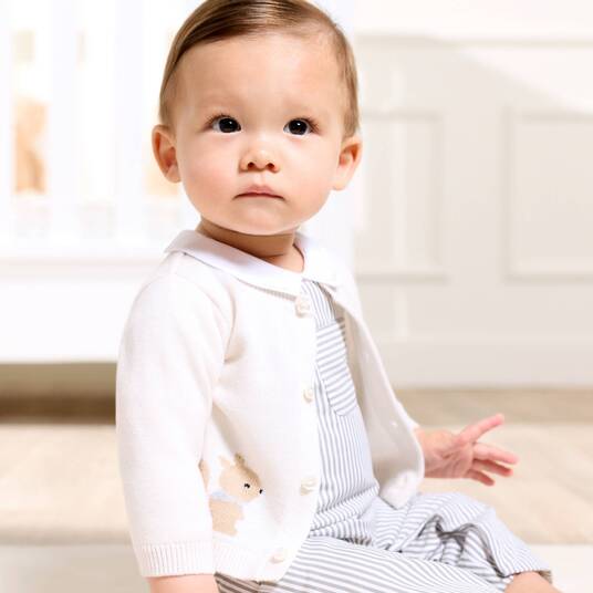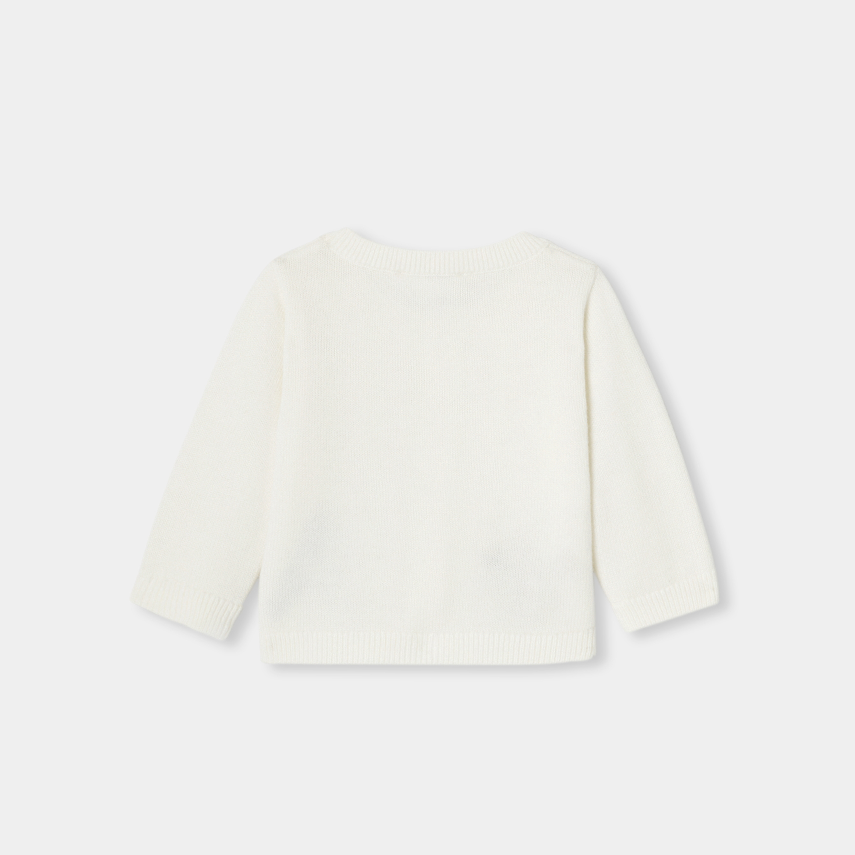 Caratterizzato da un taglio classico e da un colore intramontabile, il cardigan neonato offre una passeggiata parigina con la sua Torre Eiffel e lo scoiattolo a intarsio. Caldo e confortevole grazie al tessuto in misto lana merino e cashmere, in inverno potrà essere indossato con pantaloni in velluto o una salopette.