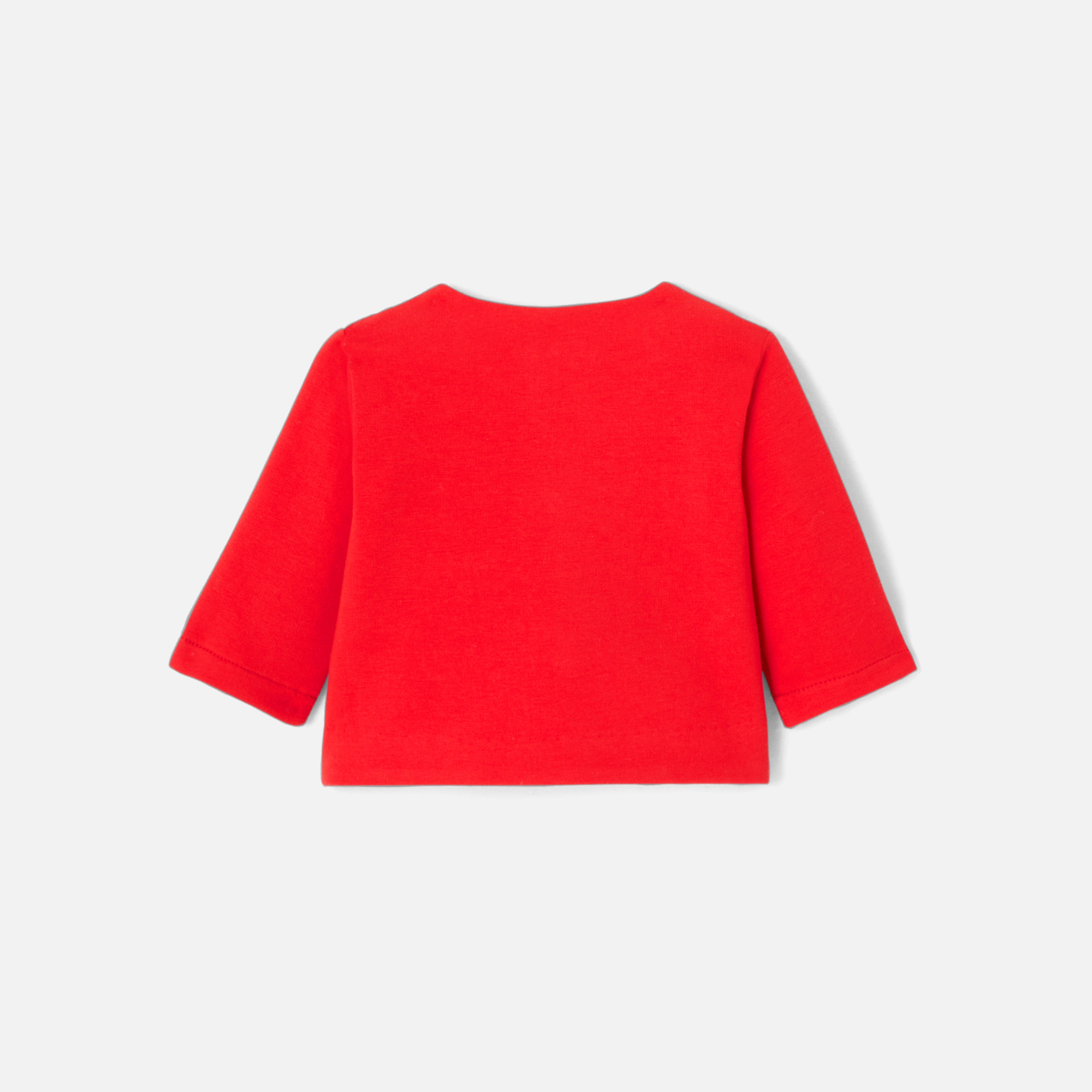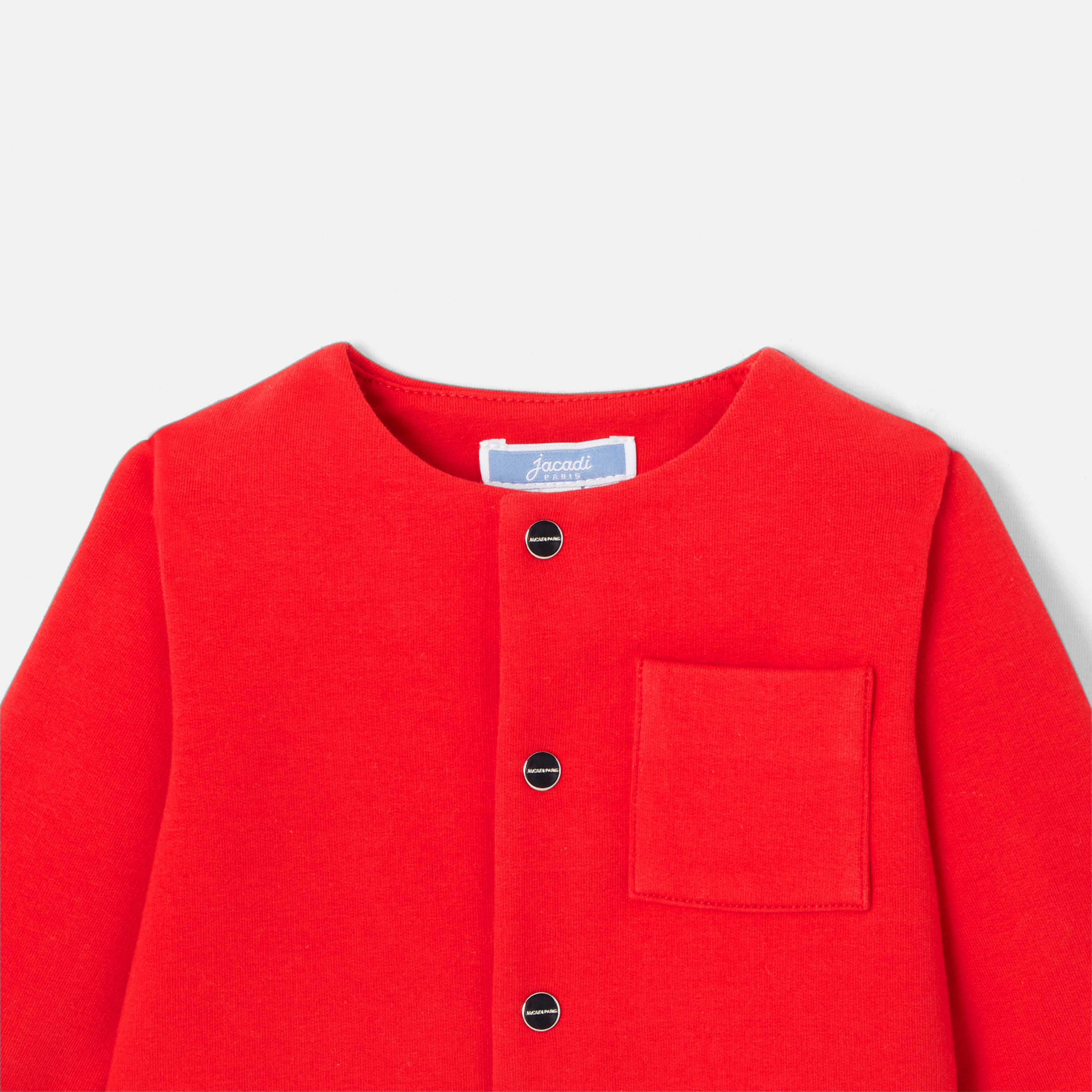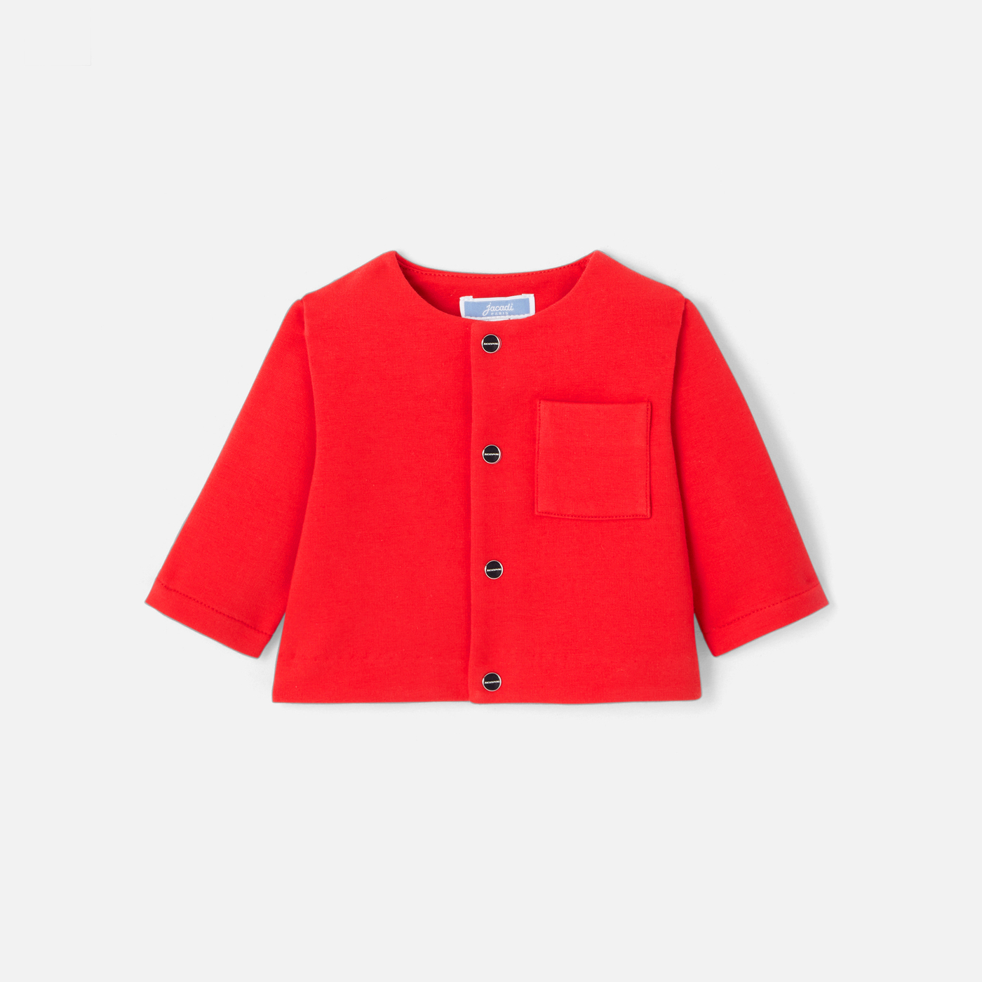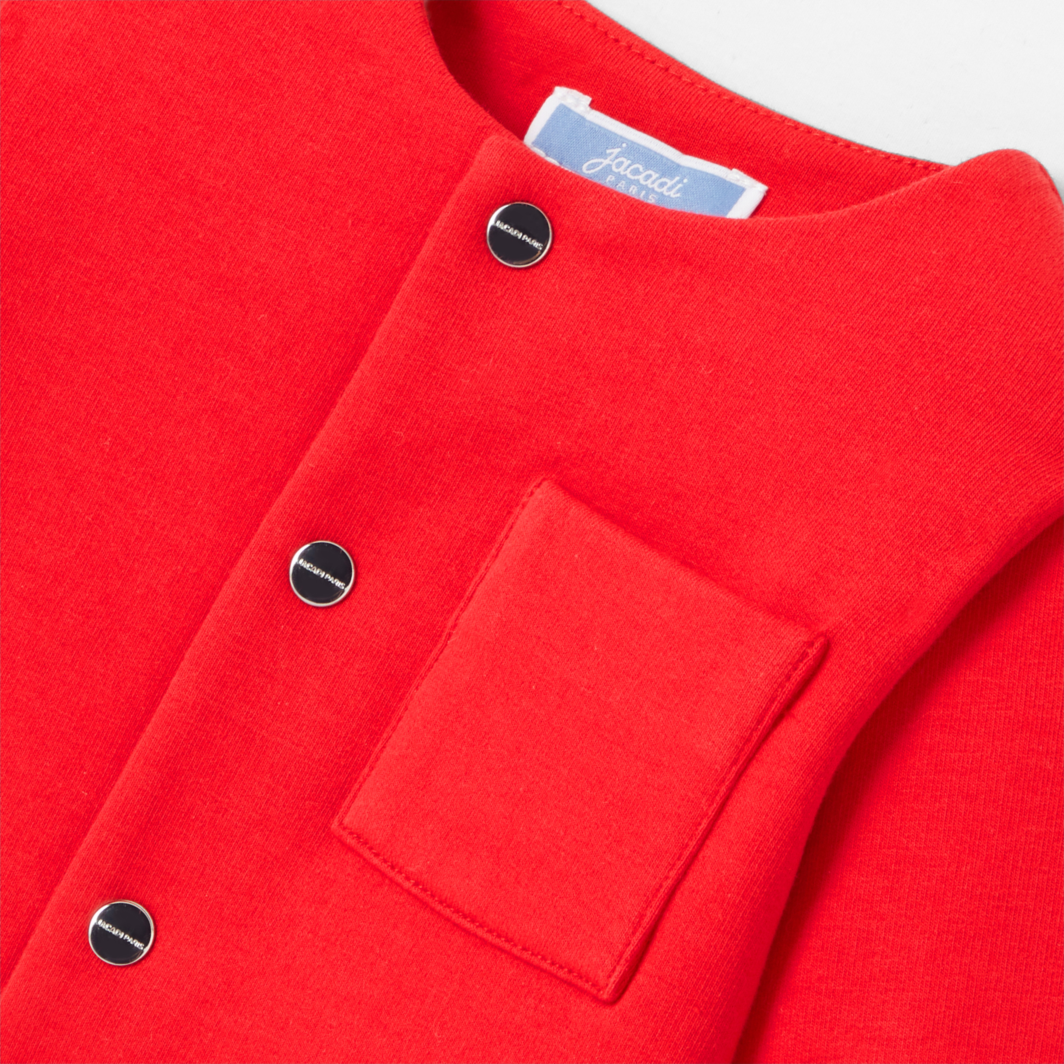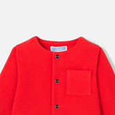 Per la primavera l'immancabile cardigan bimbo è in tessuto felpato. In stile giacca con una tasca sulla pettorina e un'apertura con automatici per un look contemporaneo, si abbinerà a meraviglia a un pagliaccetto o a una salopette.
