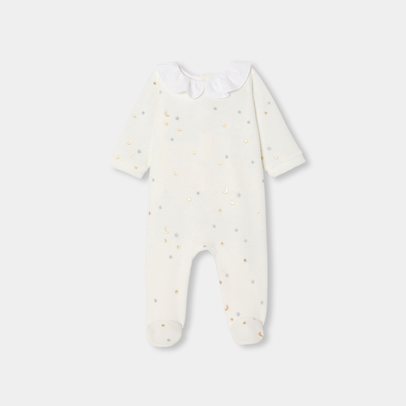 I pigiami in velluto sono perfetti per le notti fresche. La loro texture morbida e soffice avvolge il vostro bambino in calore e comfort. I modelli in velluto riccio, disponibili in rosa pallido o bianco, aggiungono un tocco di sofisticatezza al guardaroba del vostro bambino. I motivi a nuvole o coniglietti portano un tocco poetico, ideale per i sogni più dolci.