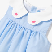 Attualizzato dal maxi colletto smerlato ricamato a cuori, questo abito bimba dallo chic parigino è facile da indossare dalla primavera all'estate. Realizzato in fil a fil di cotone e foderato in voile di cotone, si apre sulla schiena con bottoncini.
