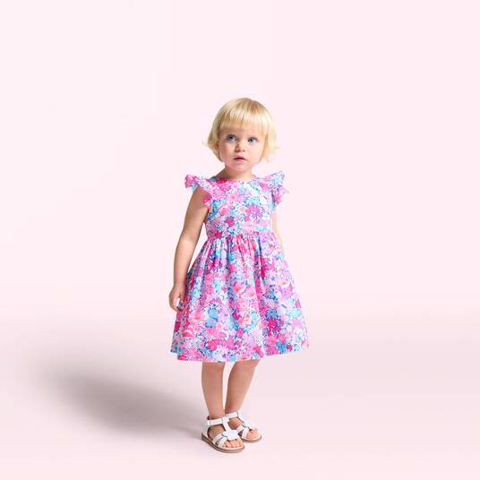 Quest'estate, Jacadi invita le bimbe a tuffarsi in un luminoso mondo floreale con questo abito bimba In tessuto Liberty, le maniche a volant, le spalline incrociate sulla schiena e le piccole pieghe in vita completano questo capo dal volume grafico, da indossare con accessori coordinati in occasione di una cerimonia e, successivamente, tutti i giorni.