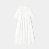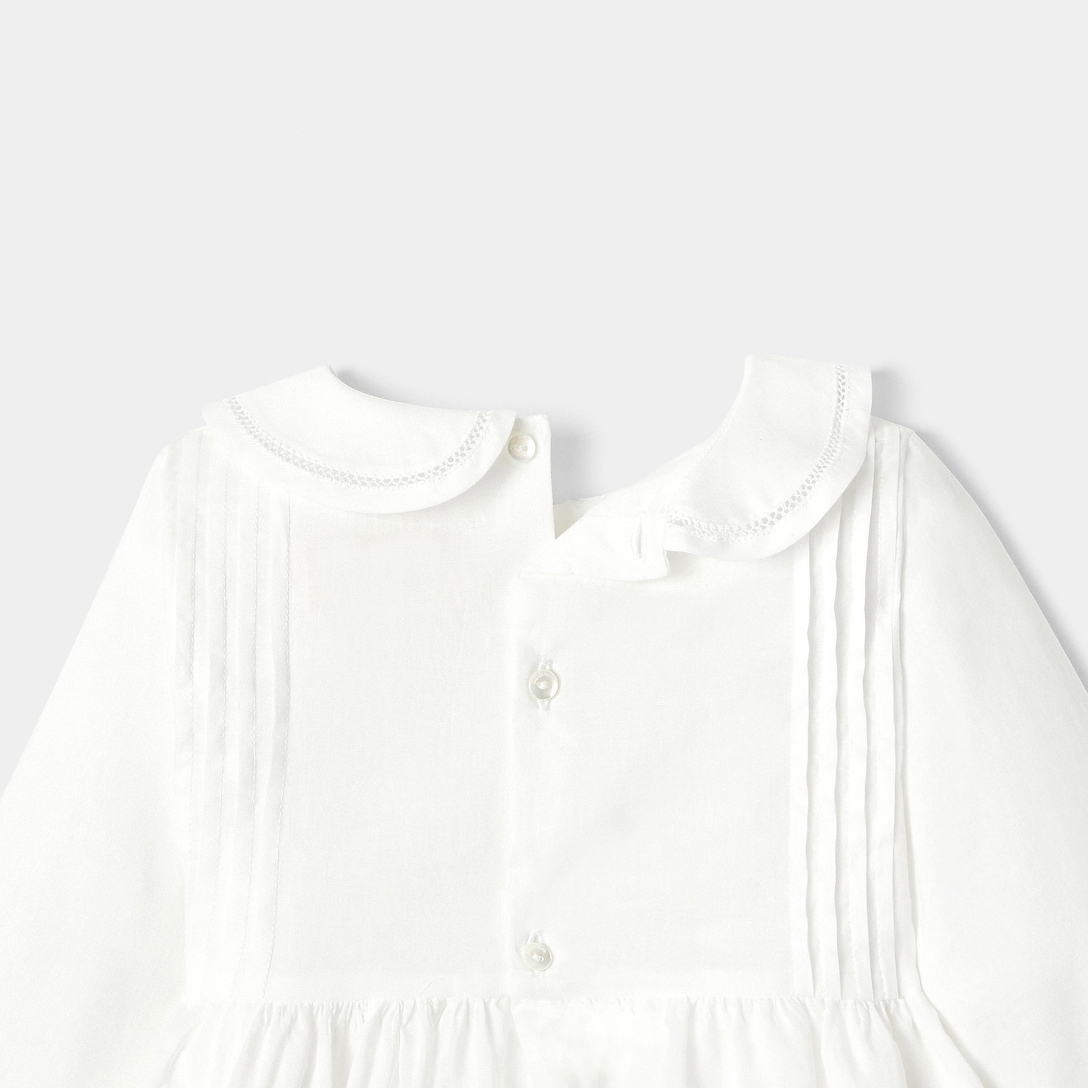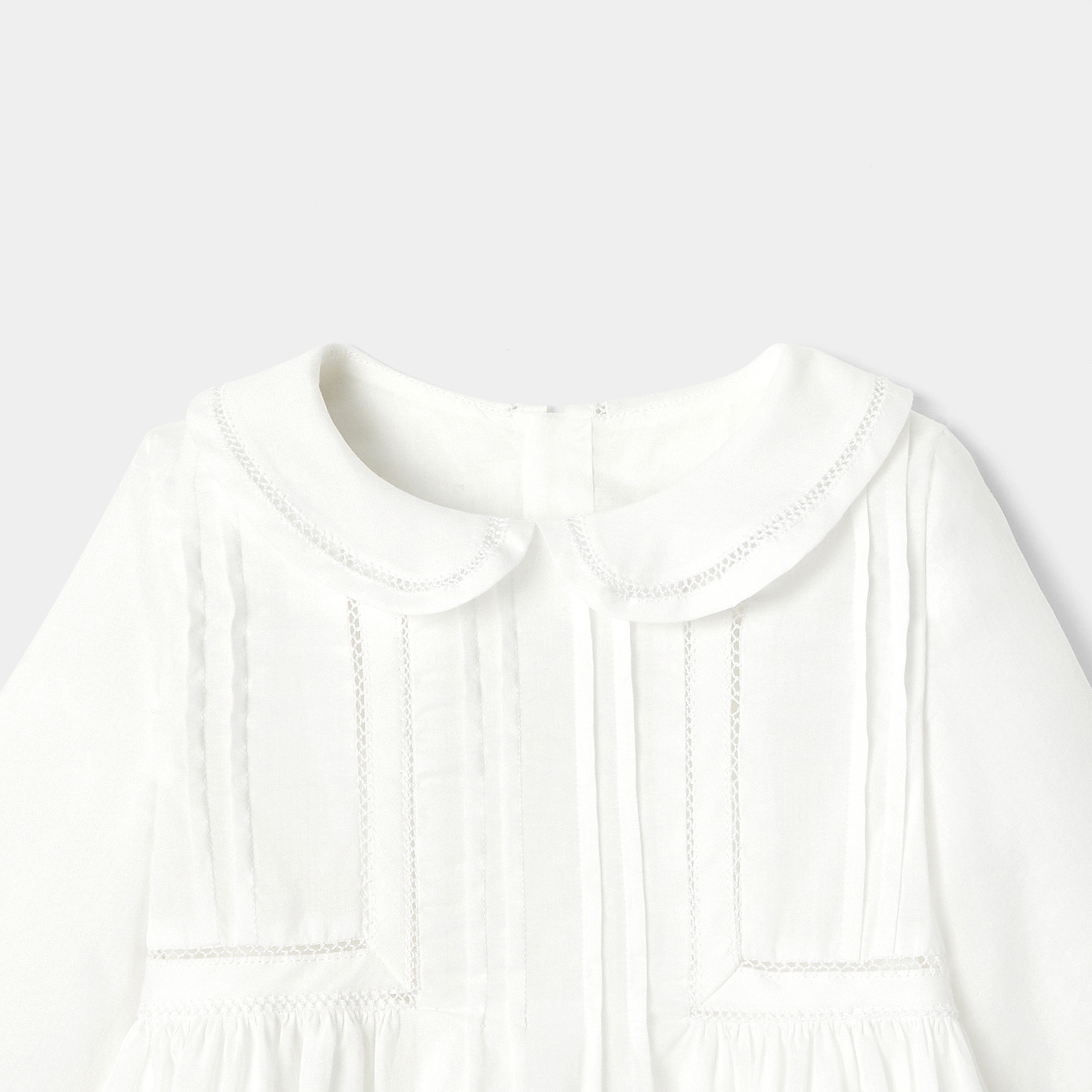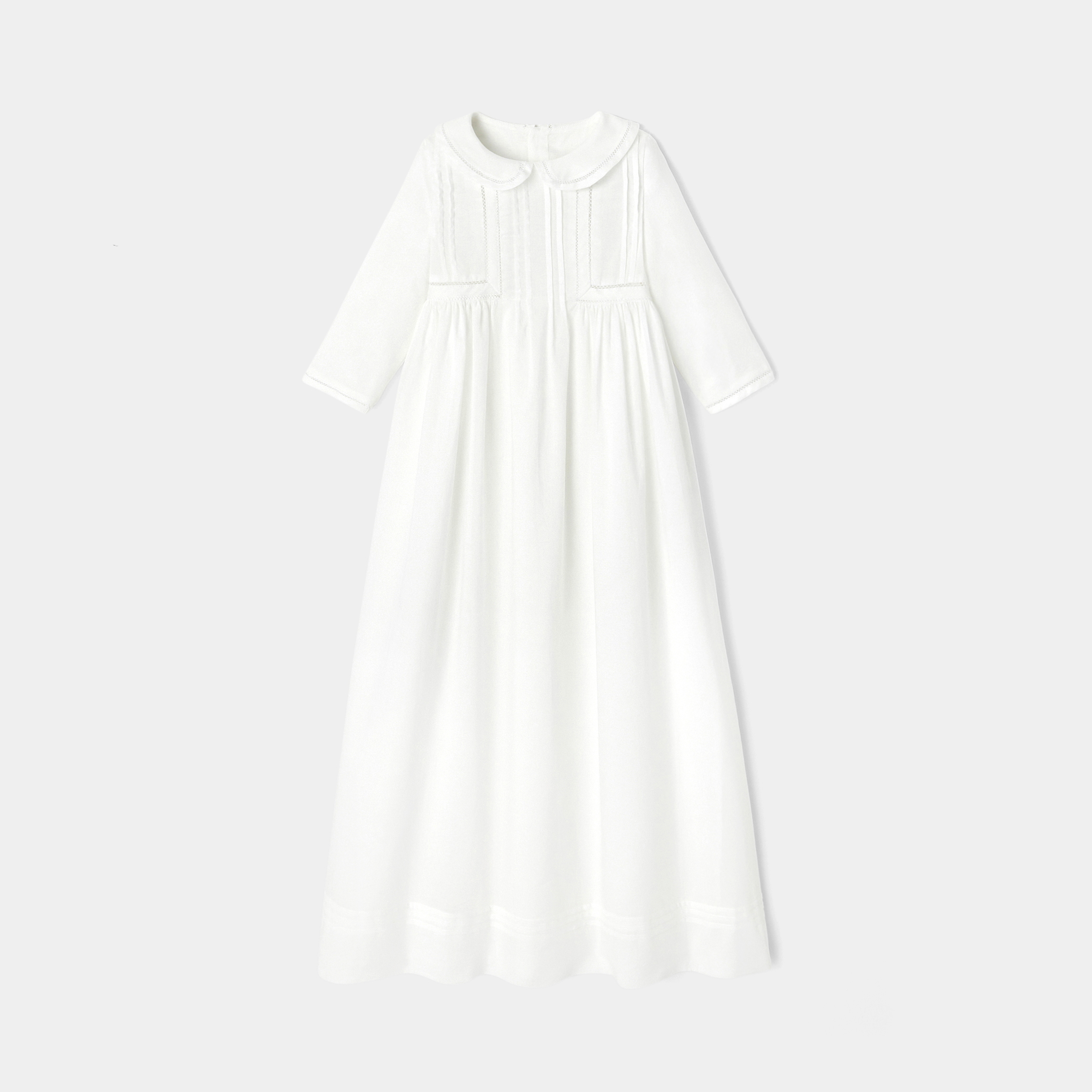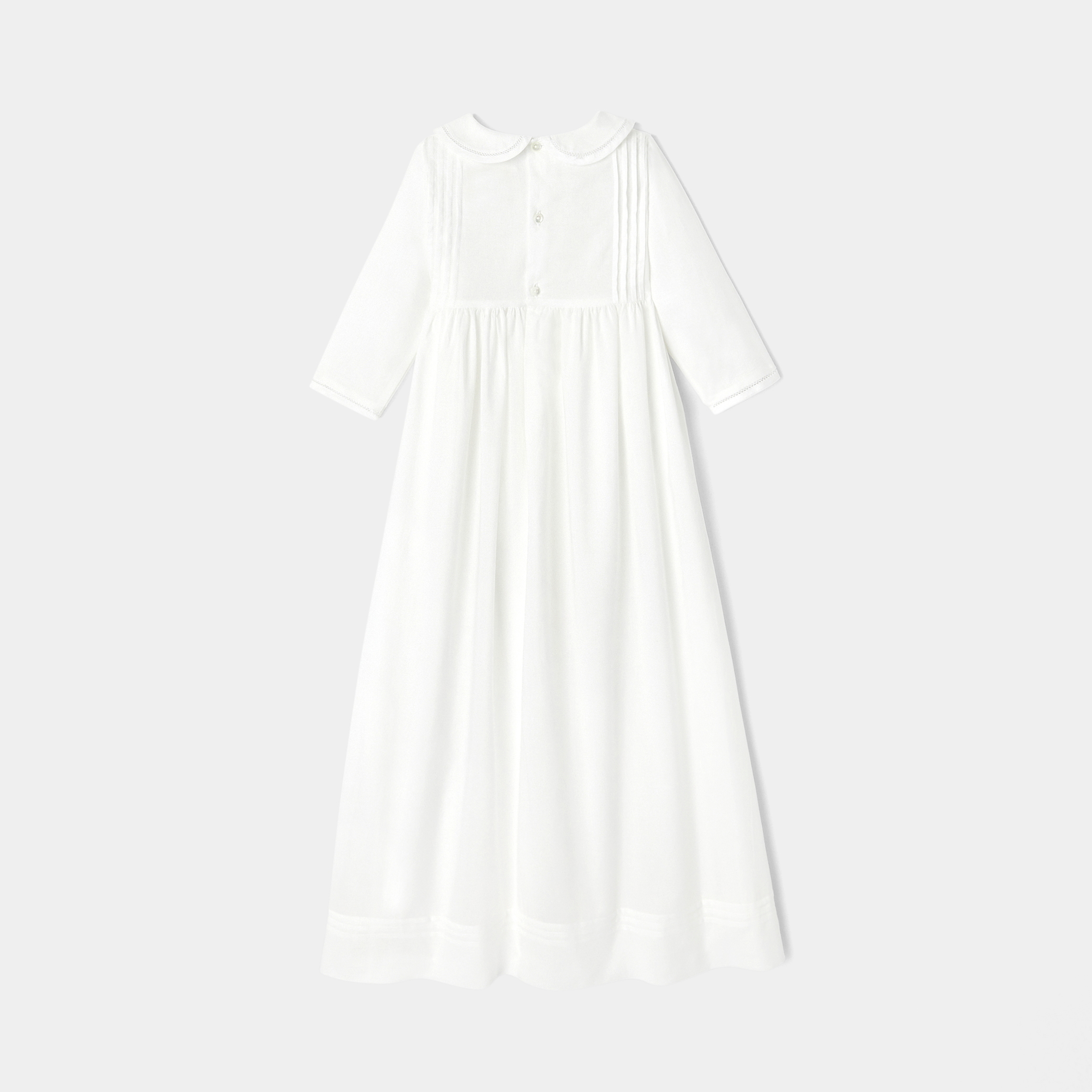 Immaginato nei nostri atelier creativi di Parigi, quest'elegante abito bimba mette in luce lo stile francese. Riproducendo le linee tradizionali dell'abito da cerimonia con una lunga gonna stile tutù, questo modello è realizzato in voile di cotone. Ornato di un colletto tondo, maniche lunghe, dettagli traforati e pieghe abbelliscono quest'abito creato per i momenti che contano.