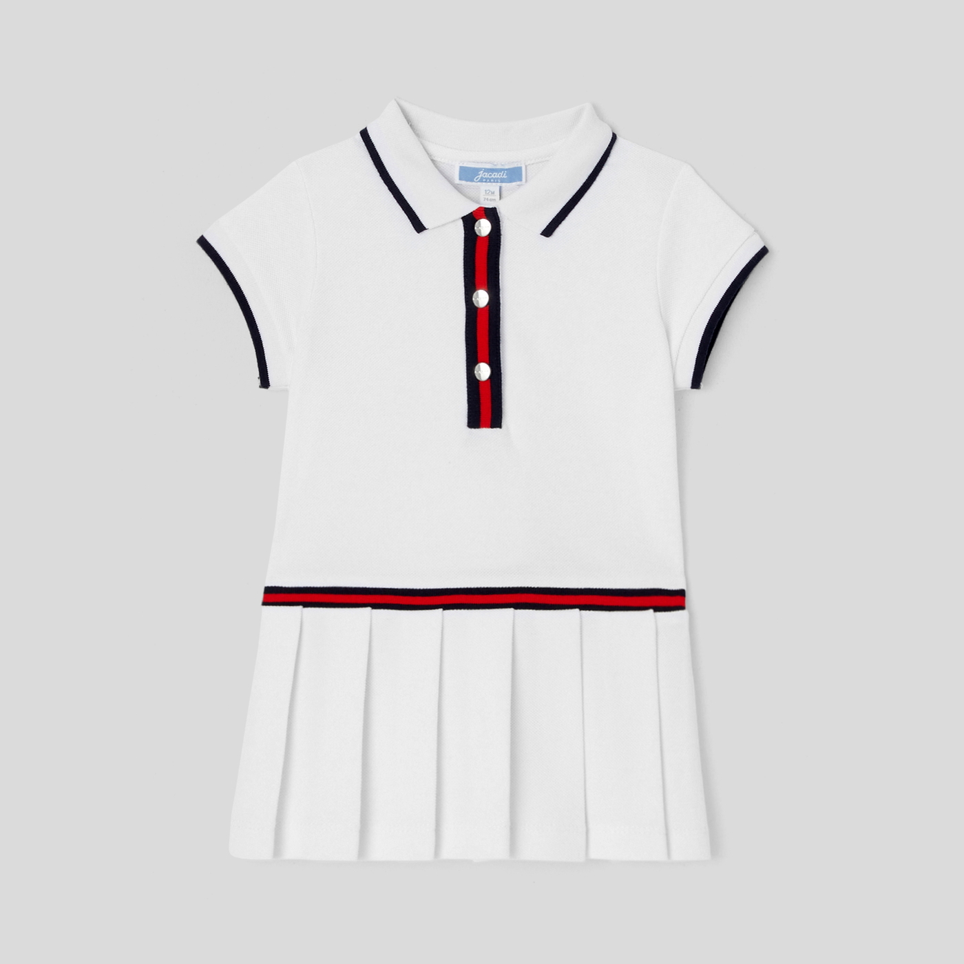 Ispirato all'abito da tennis, quest'abito bimba è realizzato in piqué di cotone. Abbellito da una patta con bottoni a contrasto e da un fondo a pieghe per un look sporty-chic, questo capo immancabile nell'outfit quotidiano si abbinerà a meraviglia a graziose sneakers e accompagnerà le più piccole in primavera.