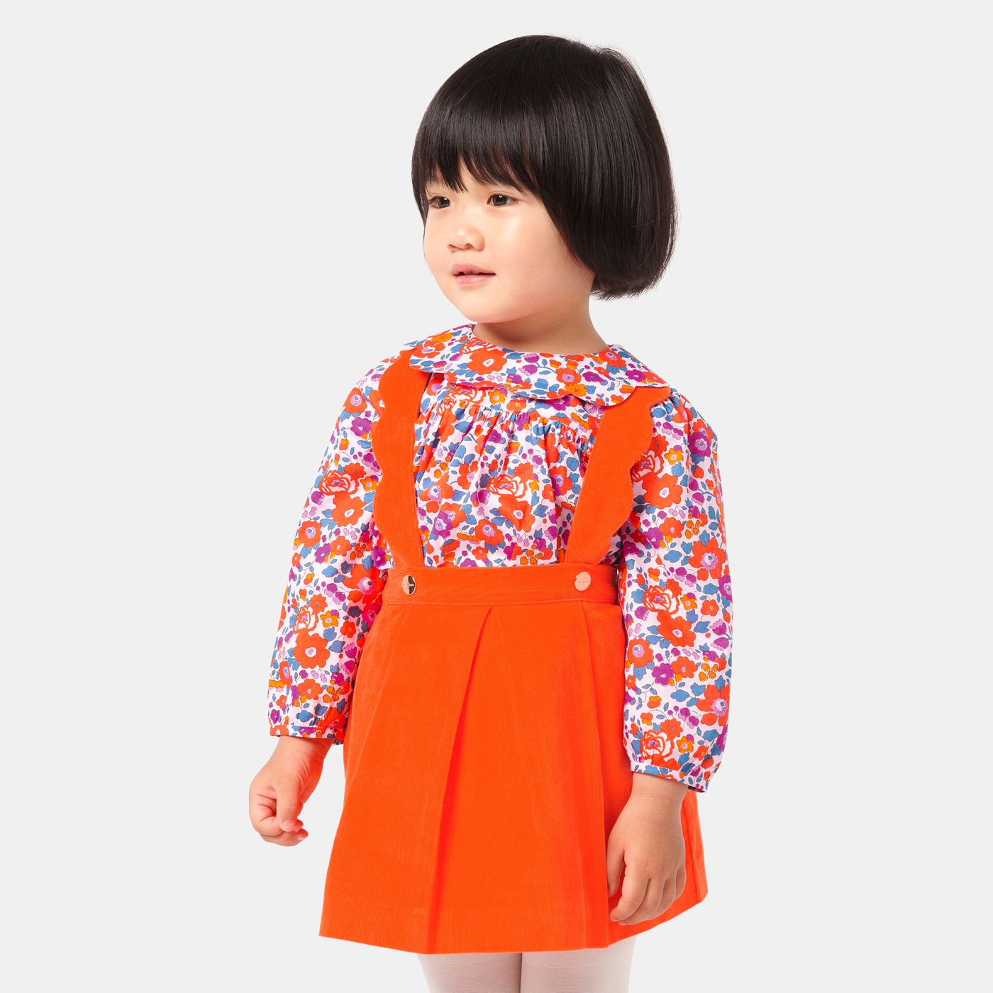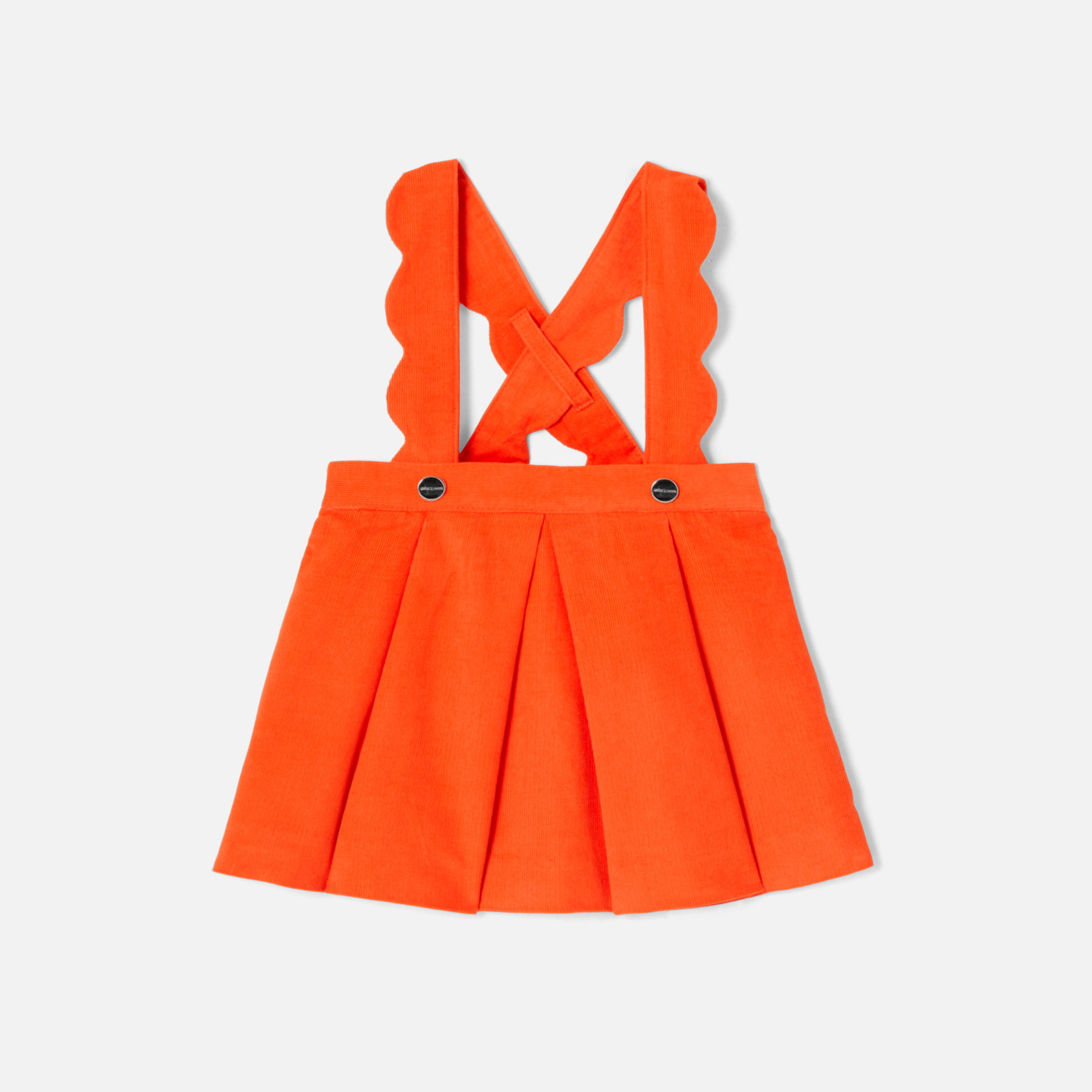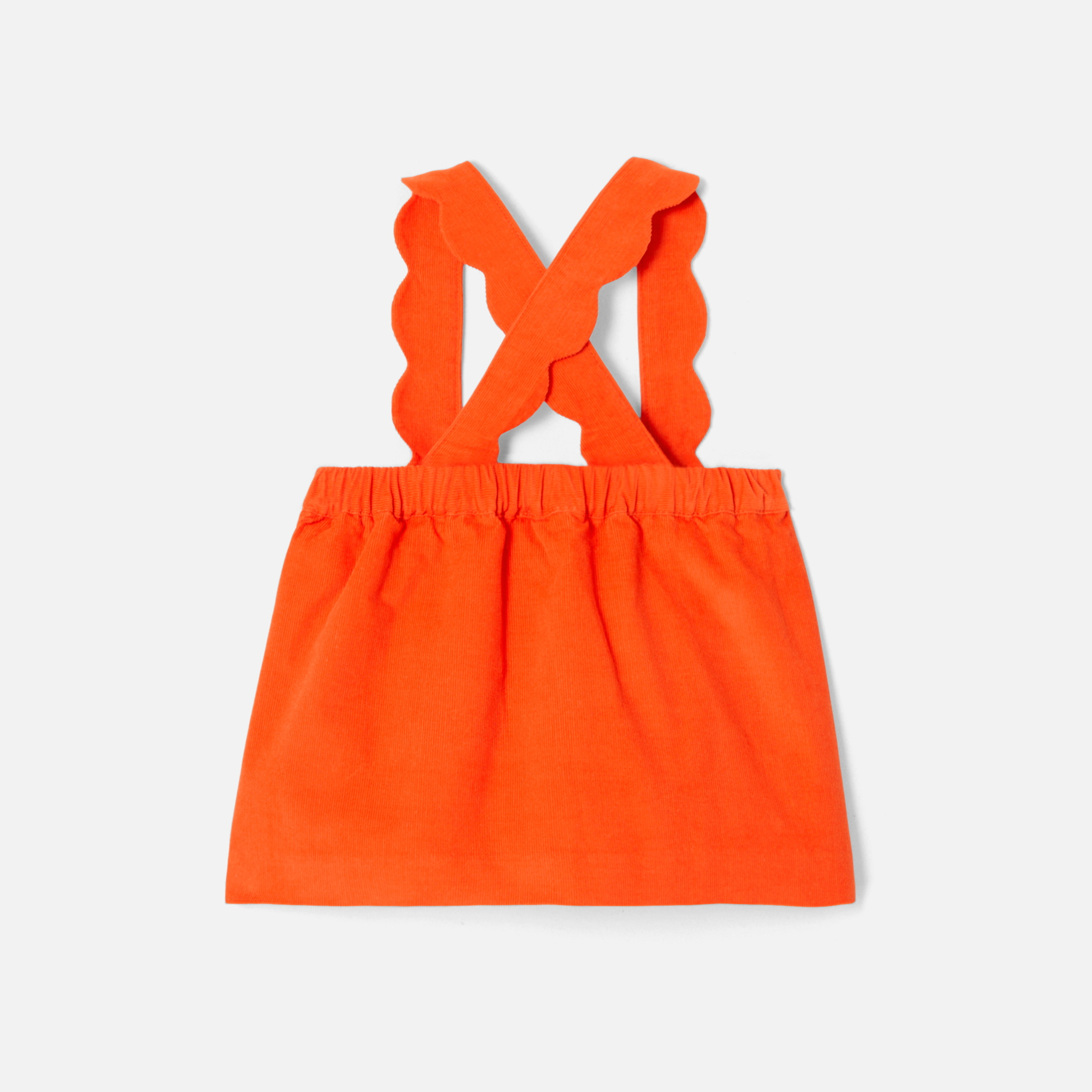 Quest'autunno, i nostri stilisti hanno rielaborato il modello dell'abito scamiciato bimba. In morbido velluto, lasciati conquistare dalla sua gonna a pieghe, dalle spalline con bordi smerlati e dalla bella tonalità fiammeggiante. Da abbinare a un body e a graziosi collant, questo modello sarà perfetto per affrontare la stagione con eleganza.