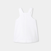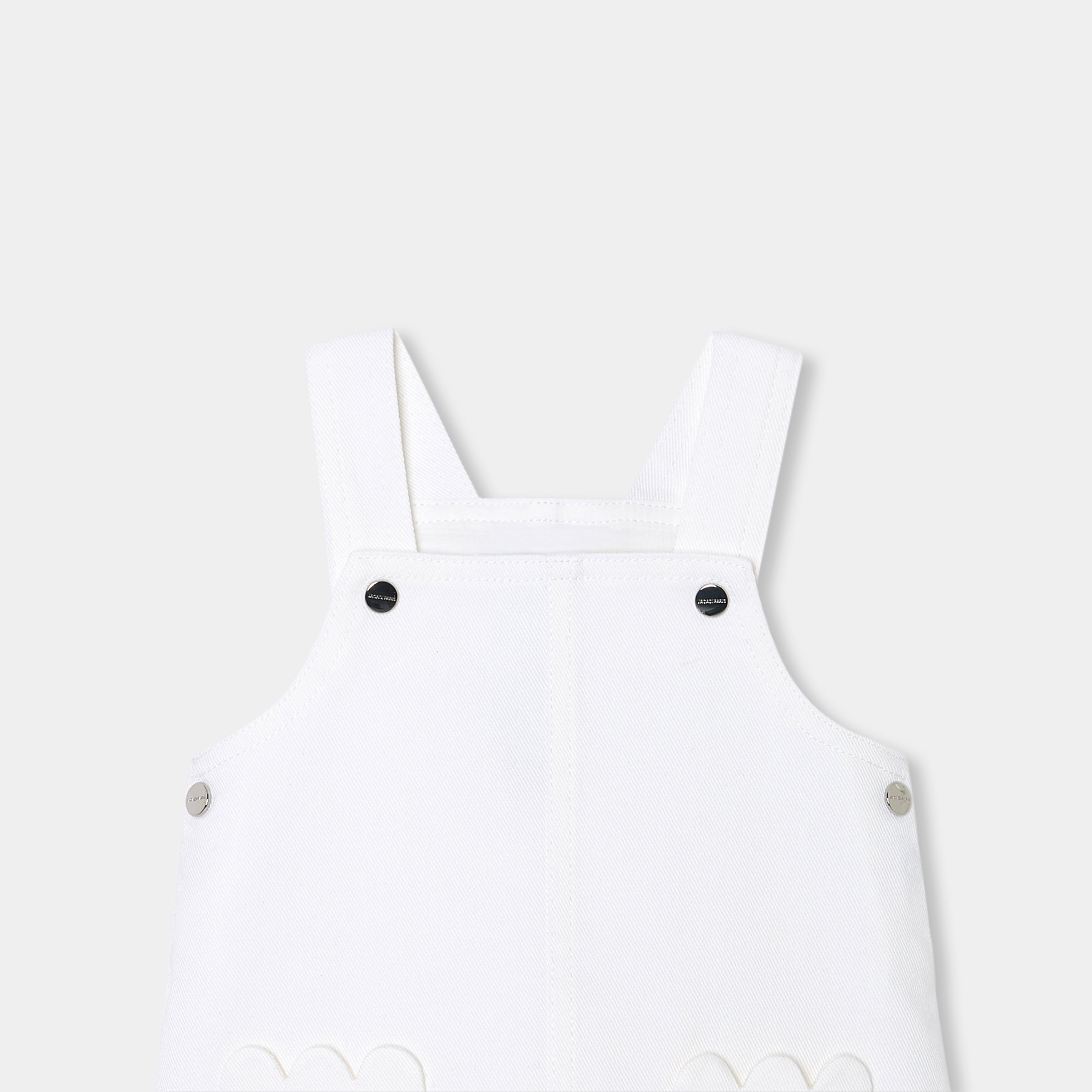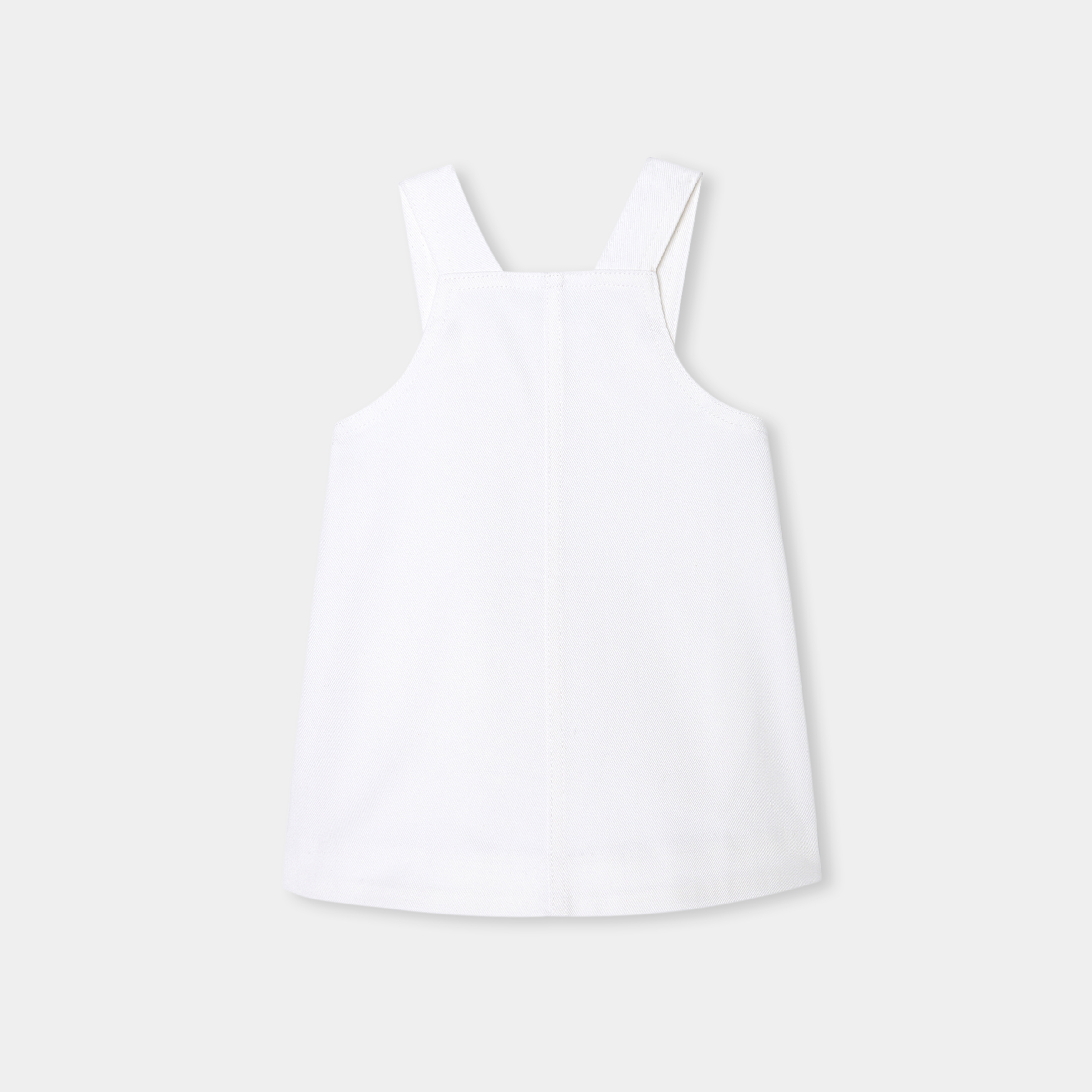 Una brezza anni '60 soffia nel guardaroba della bimba con questo abito scamiciato. Taglio a trapezio, accessoriato con bretelle stile salopette, abbina questo abito in tela denim a un body a pois e a un cardigan stile teddy per un look dal fascino parigino.