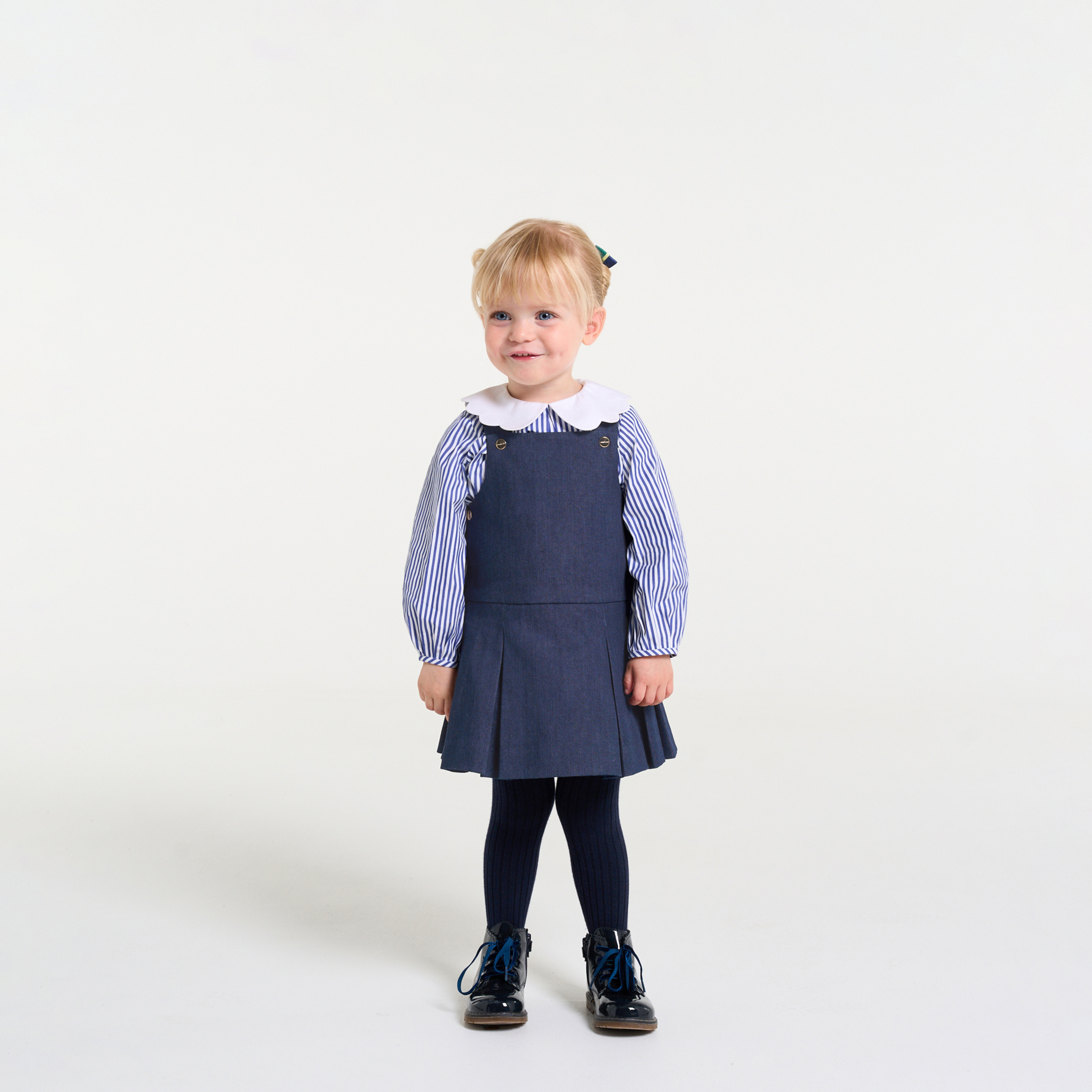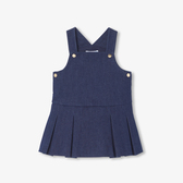 Un classico del guardaroba delle bimbe, Jacadi ha rivisitato l'intramontabile abito scamiciato da neonata. Vita bassa e gonna a pieghe, l'autenticità di questo modello incontra la modernità del denim raw per un look vintage contemporaneo. Indossato su una t-shirt con un paio di collant e delle Mary Jane, questo capo perfetto per tutti i giorni è un regalo ideale.