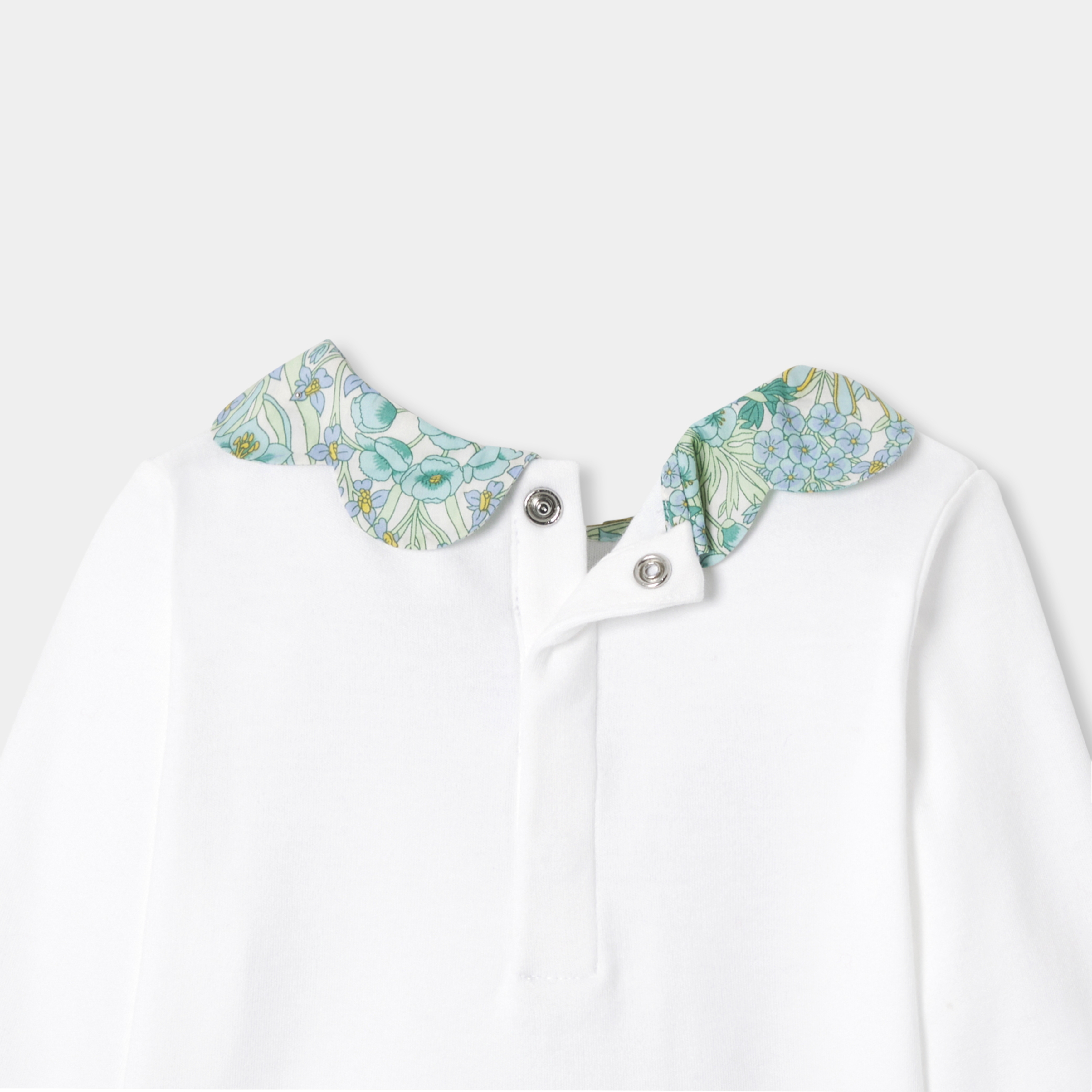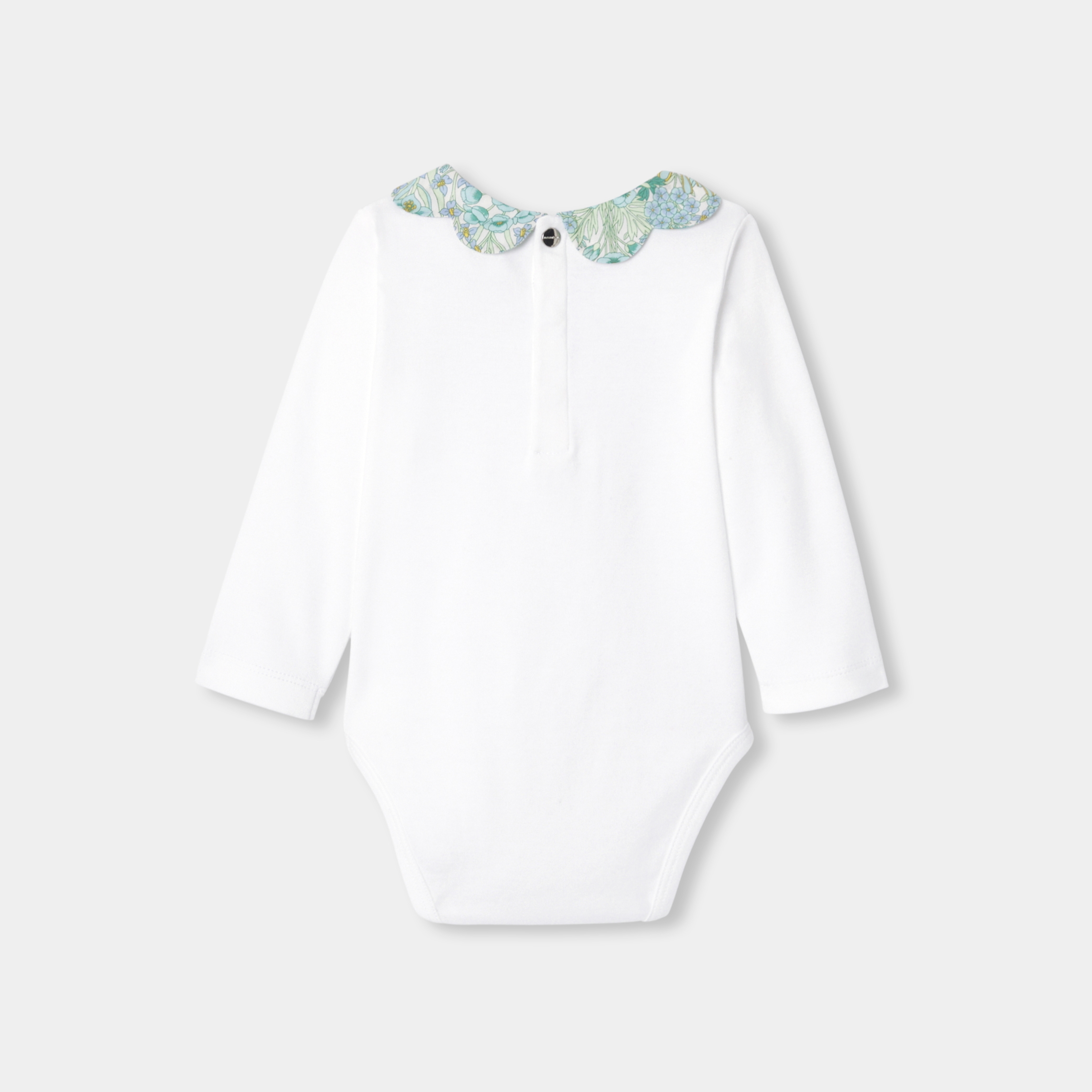 Decorato con un colletto smerlato in tessuto Liberty, questo body da neonata si abbina a tutti gli outfit della stagione. In morbido e soffice cotone organico, con pantaloni di velluto o sotto un abito, è interessante per la sua raffinatezza e versatilità.