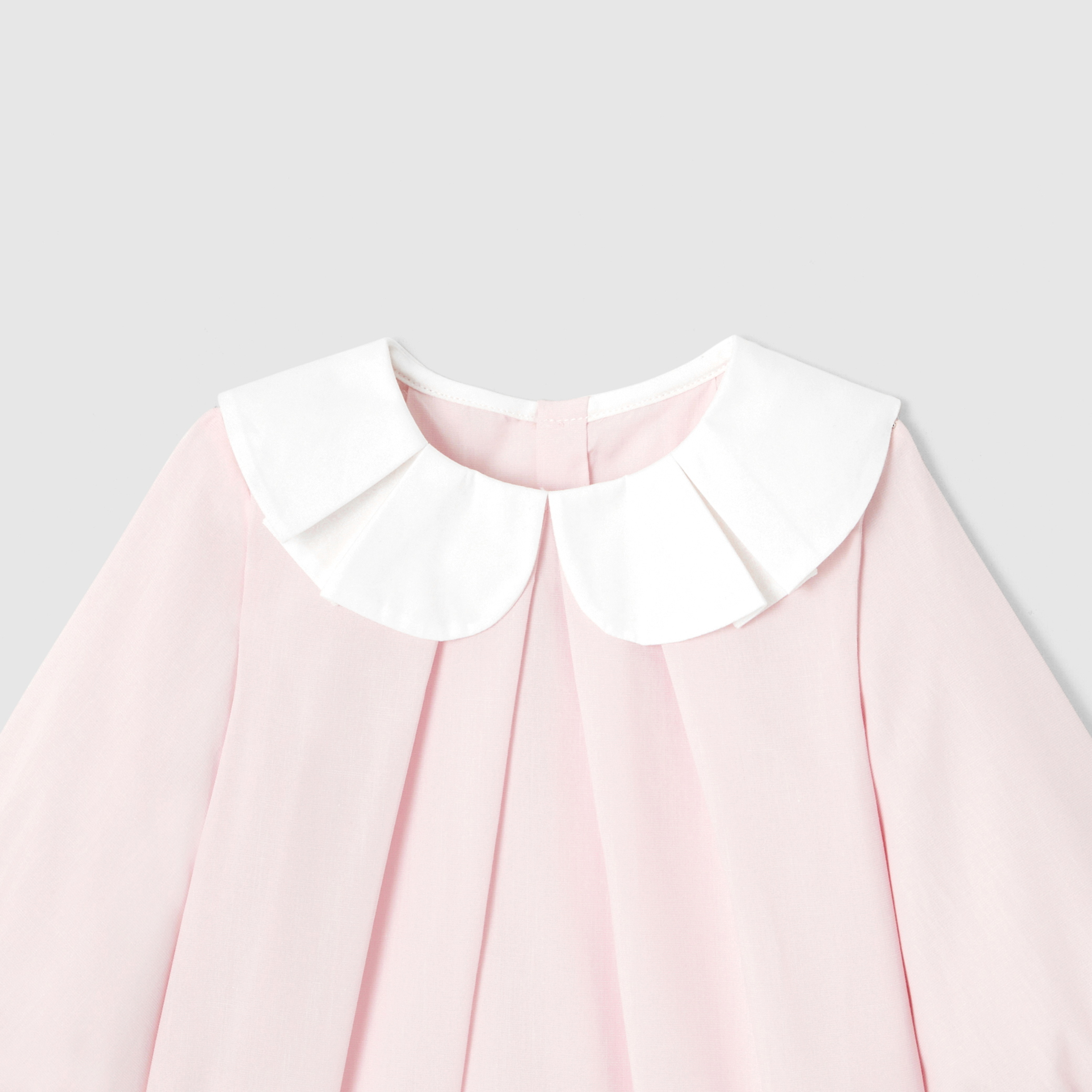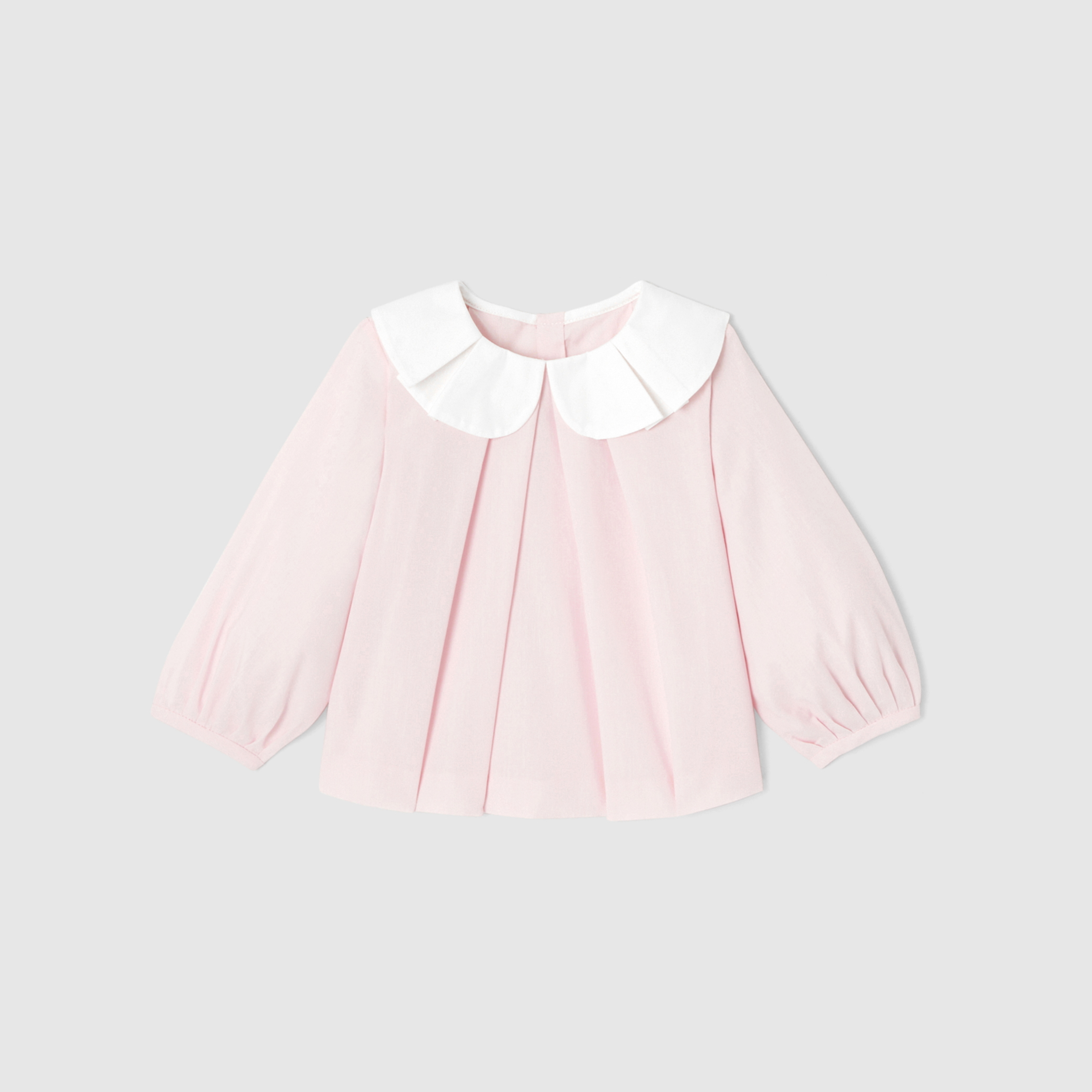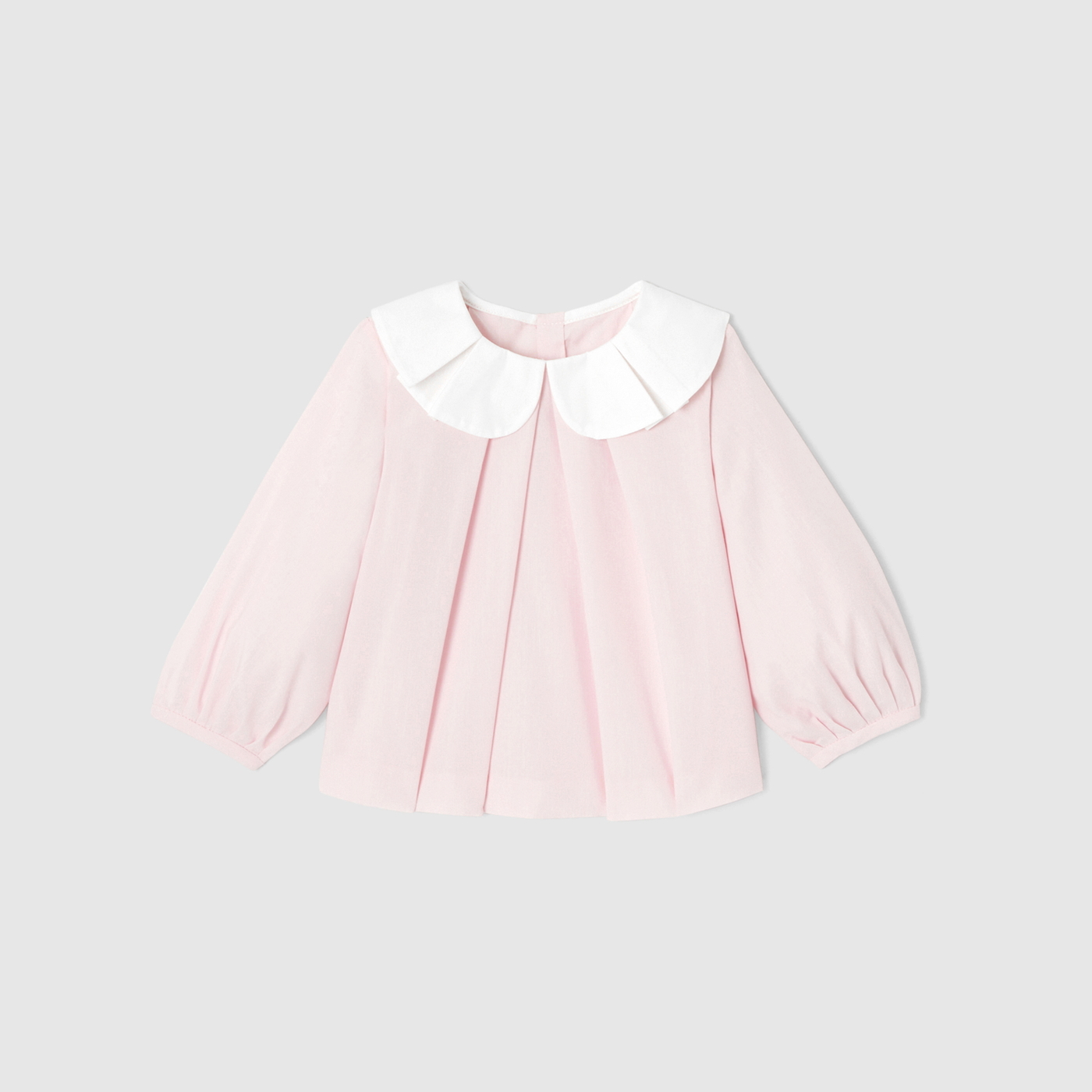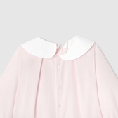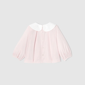 Elogio dell'eleganza, Jacadi crea la blusa bimba perfetta da indossare tutti i giorni. In fil-a-fil di cotone biologico, è arricchita da un nuovo colletto tondo a petalo per un look city-chic.