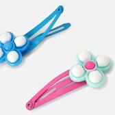 Fiori pop e colori tenui per queste incantevoli mollette bimba. Facili da attaccare, abbelliranno i codini e terranno in ordine le ciocche ribelli.