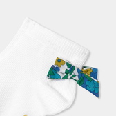 Questi classici calzini bianchi da bimba sono stati ravvivati per la stagione con un fiocco in tessuto Liberty sul retro della caviglia. Morbidi e facili da infilare in un paio di Mary Jane o di stivaletti, daranno un tocco di stile in più agli outfit di tutti i giorni.