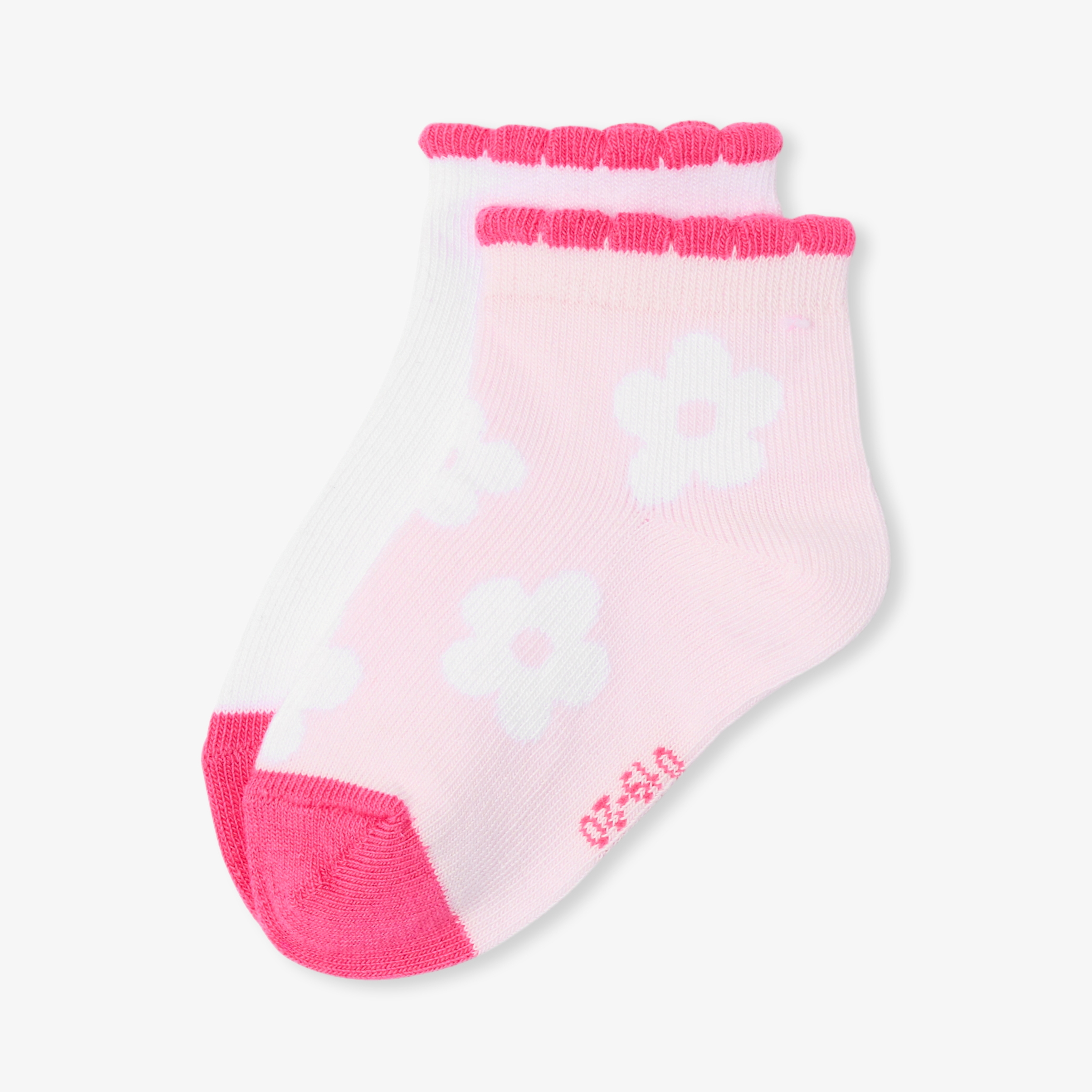 Completa il suo l'outfit con originalità scegliendo questi splendidi calzini bimba. Questo modello corto, vivacizzato da fiorellini a intarsio, potrà essere abbinato ai capi coordinati per un look chic e grafico.