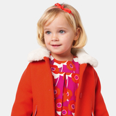 Ode ai tessuti di bella fattura e al know-how della maison, il cappotto bimba di questa stagione trae ispirazione dal guardaroba inglese. In panno di lana, un collo in pelliccia ecologica modernizza questo elegantissimo cappotto bimba. Da indossare sopra un abito o con una blusa e un paio di shorts, questo elegante modello accompagnerà le bimbe in tutte le uscite autunnali.