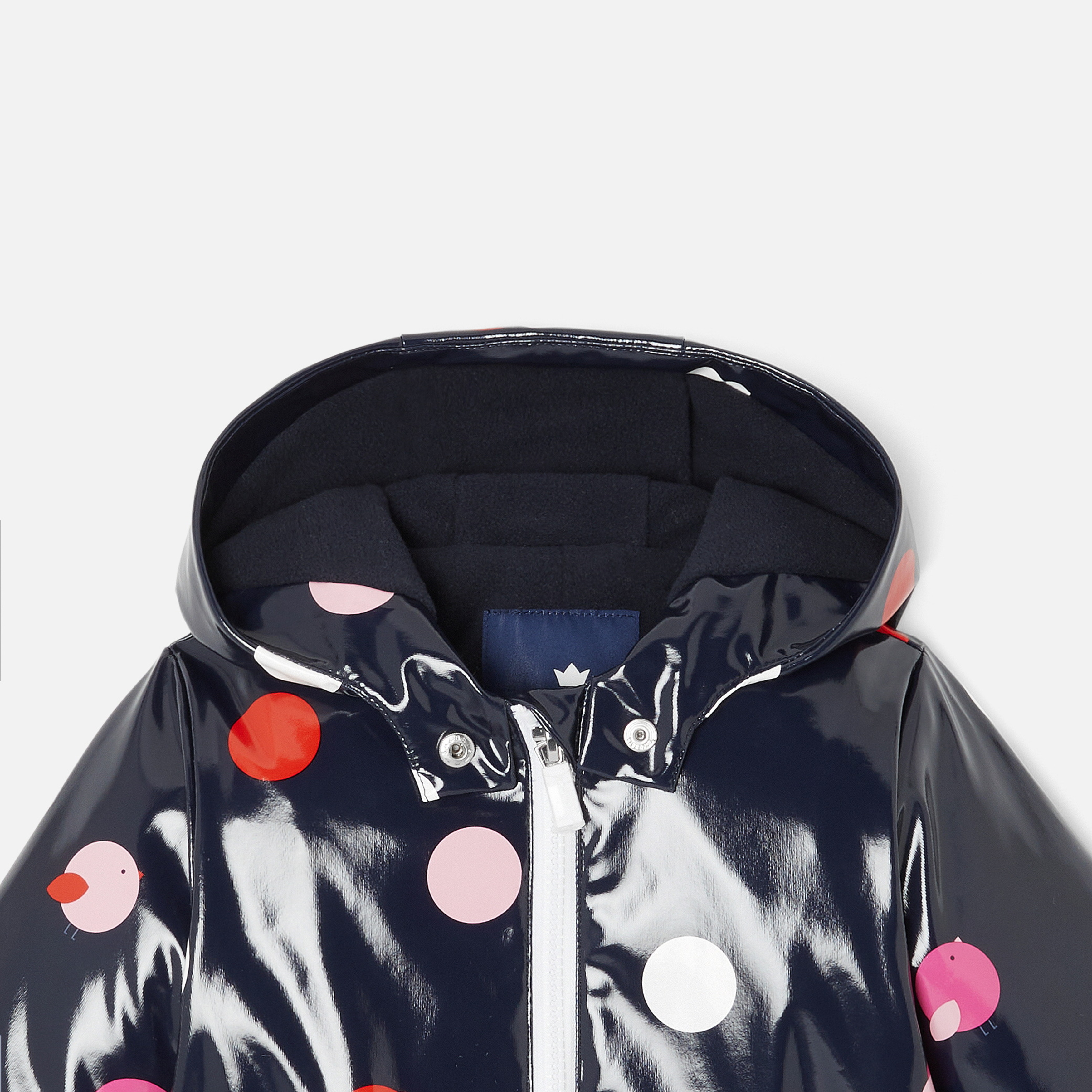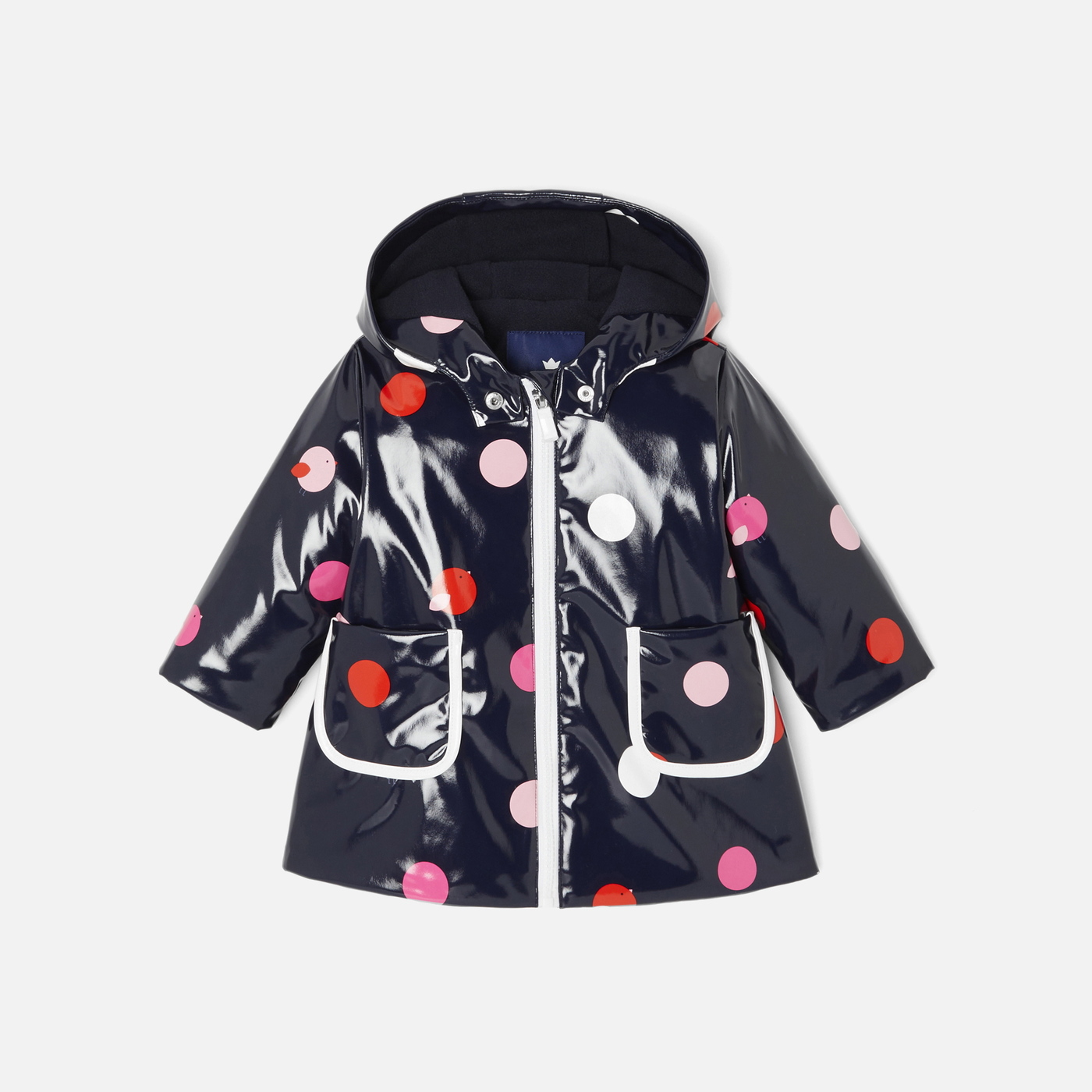 Jacadi crea il capo perfetto per i giorni di pioggia con questa incantevole cerata bimba. In tessuto verniciato impermeabile, decorato con una stampa a pois e uccellini da abbinare ai capi stessa collezione, cappuccio, tasche applicate, fodera in jersey e chiusura zip completano questo must-have dell'outfit quotidiano, perfetto per affrontare gli acquazzoni passeggeri.