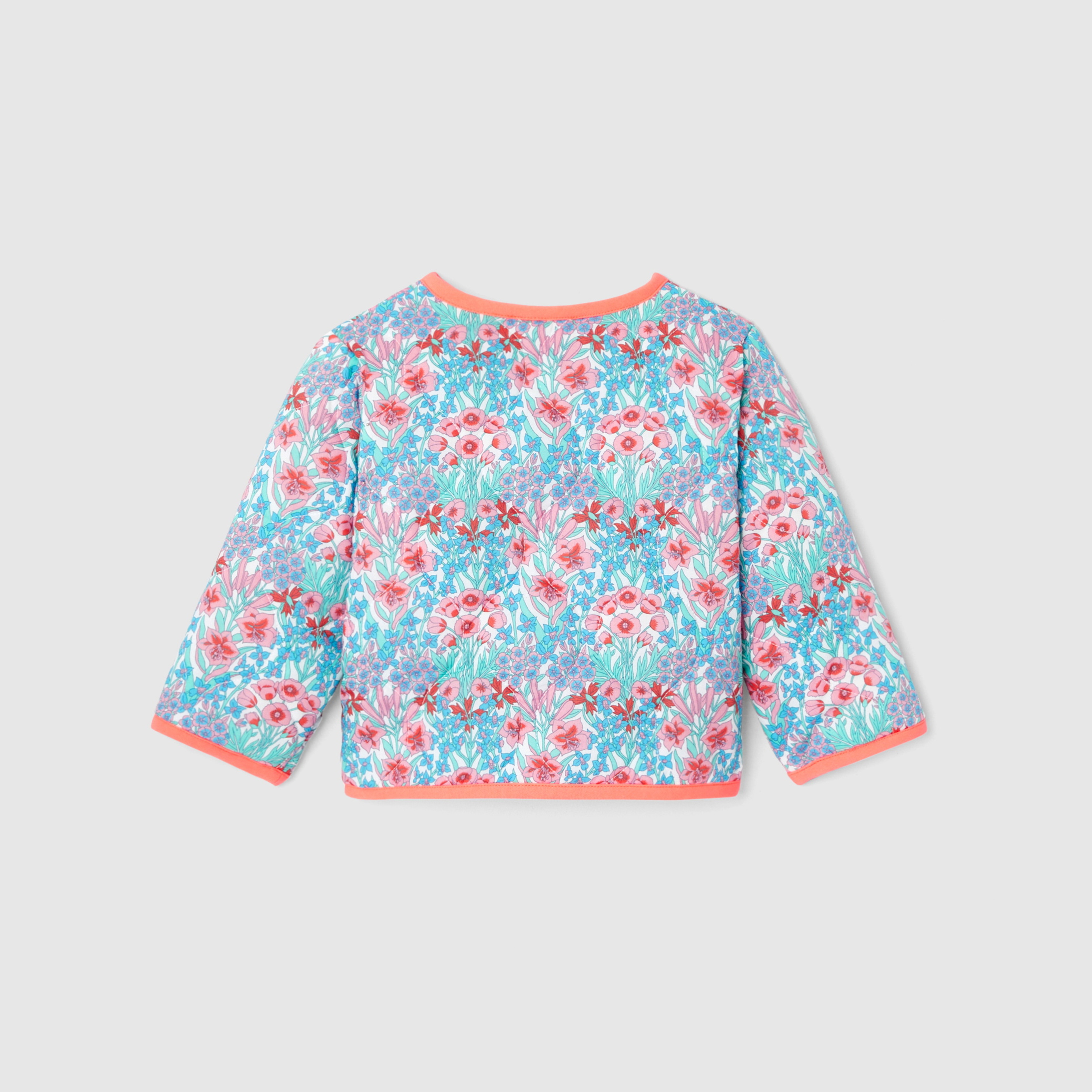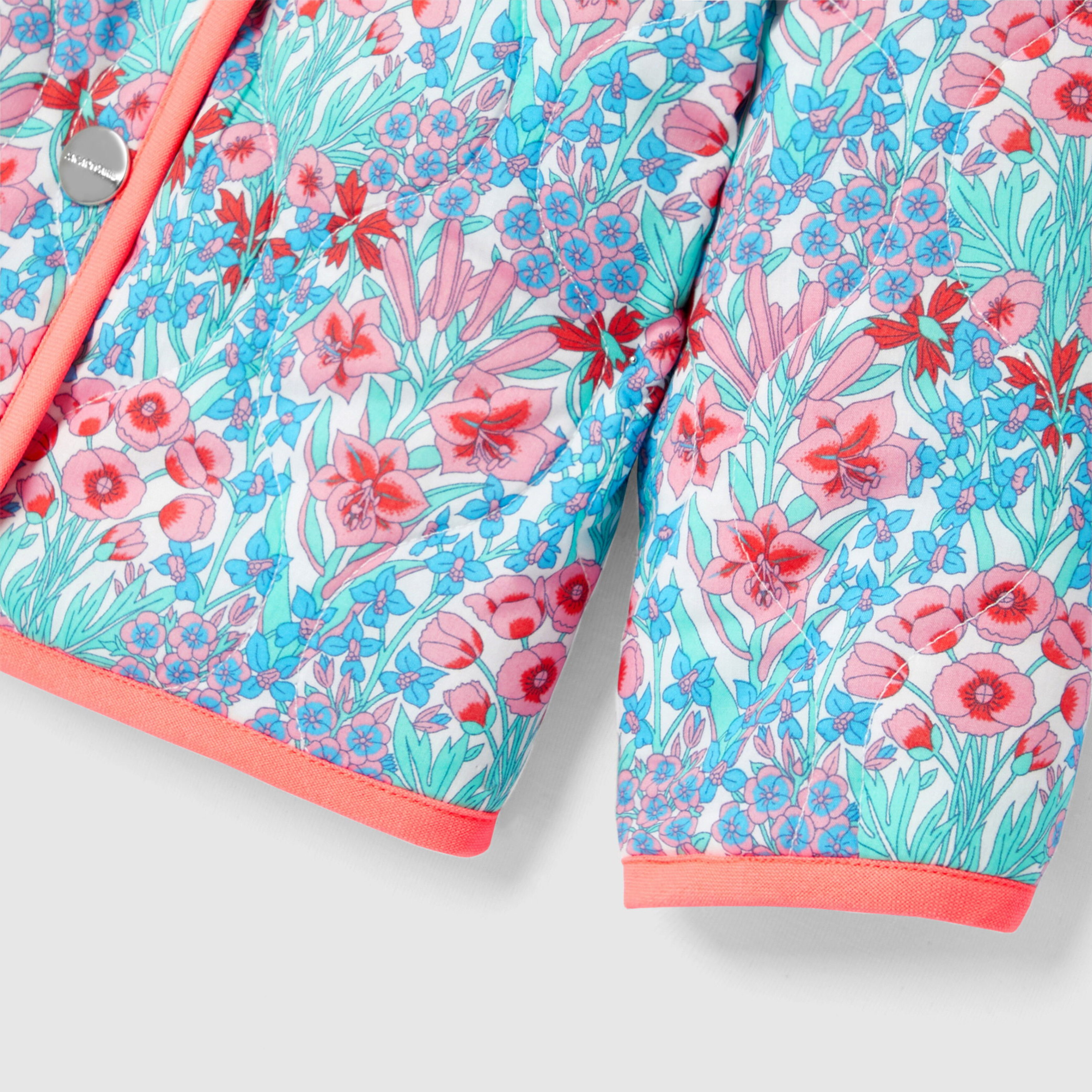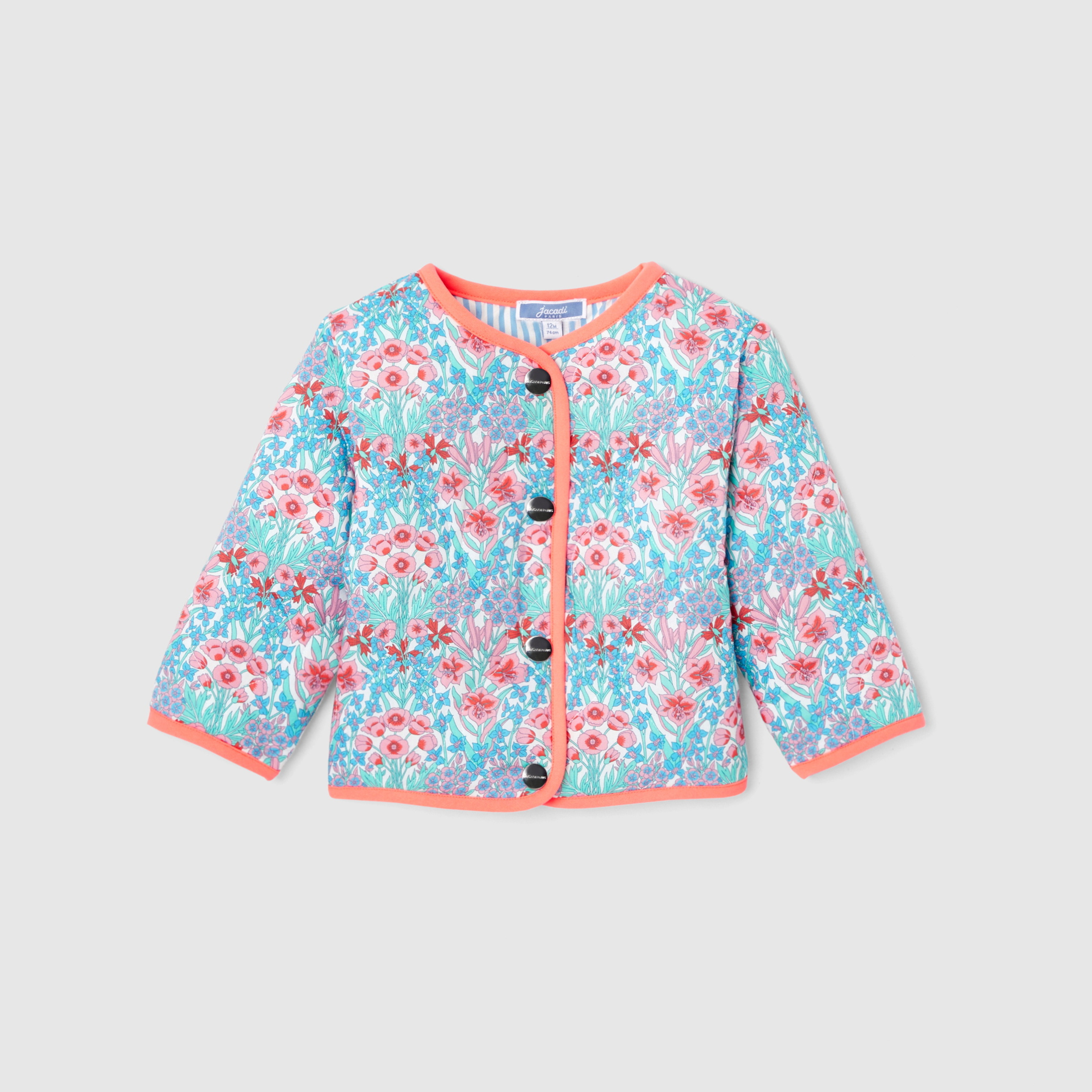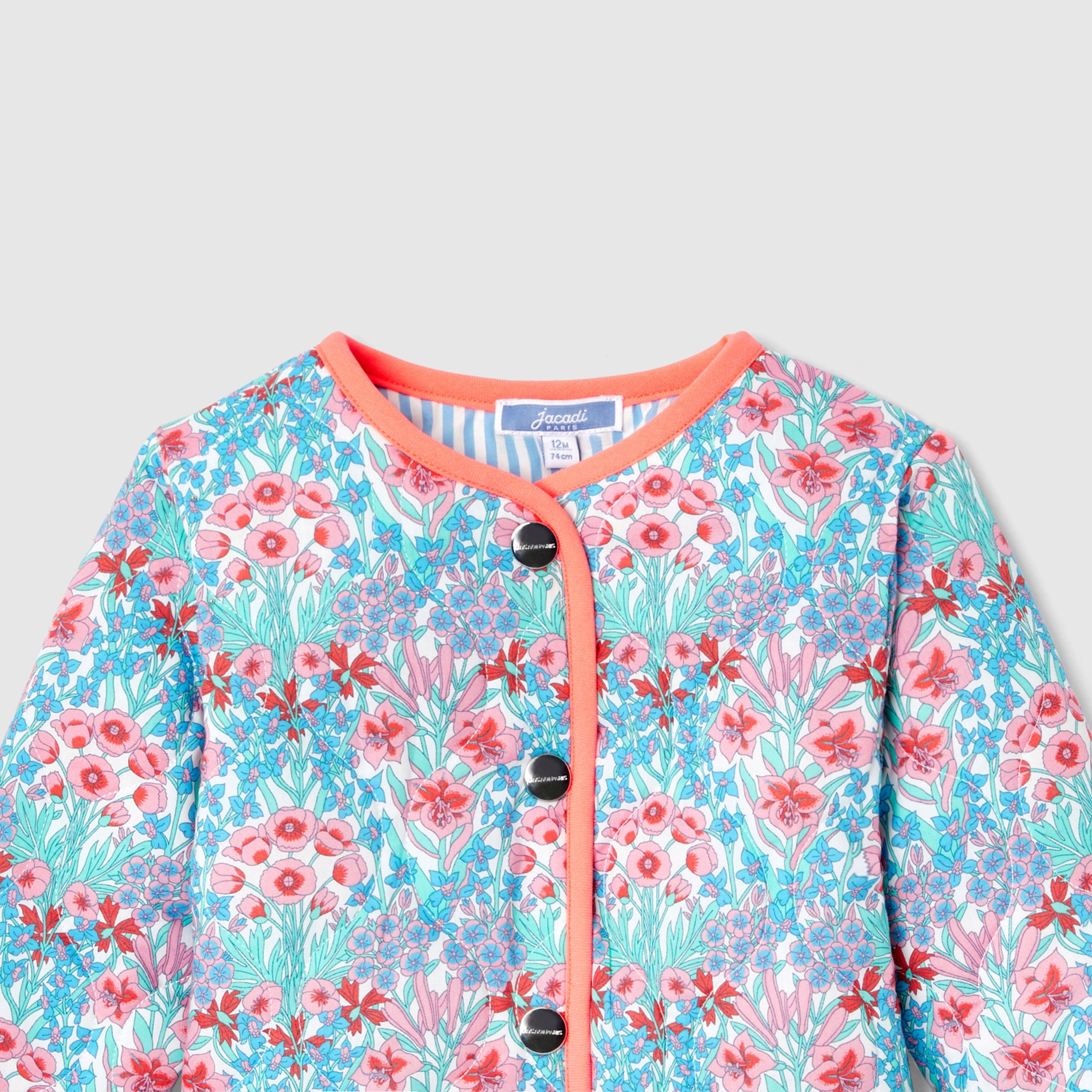 La giacca trapuntata bimba fa il suo ingresso nel guardaroba primaverile In tessuto Liberty e leggermente imbottita, è foderata in jersey per offrire comfort e morbidezza, si distingue per la sua fodera in jersey a righe. Chiusa da automatici e arricchita da un bordino fluo, abbinala a una t-shirt e a shorts in gabardine per la primavera.