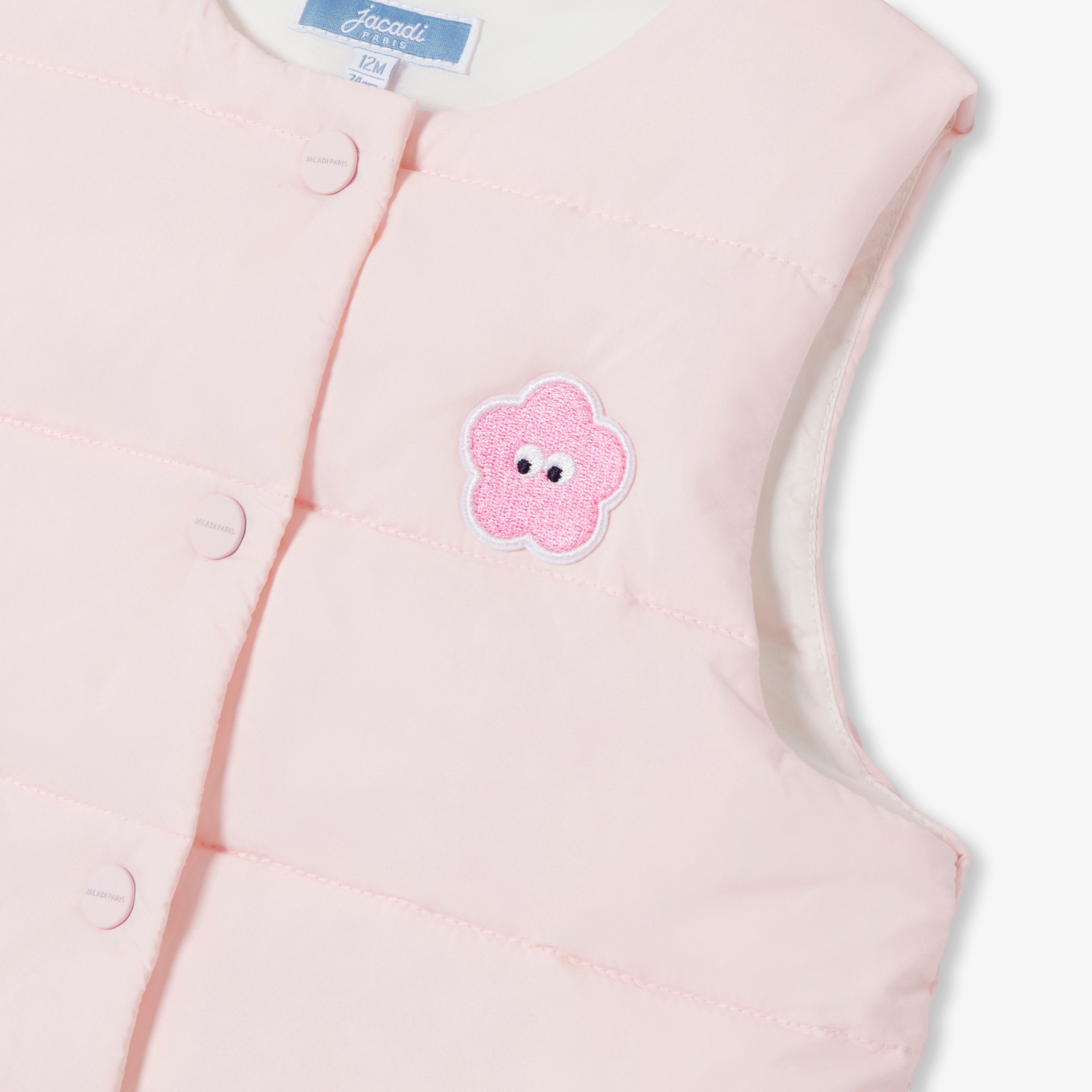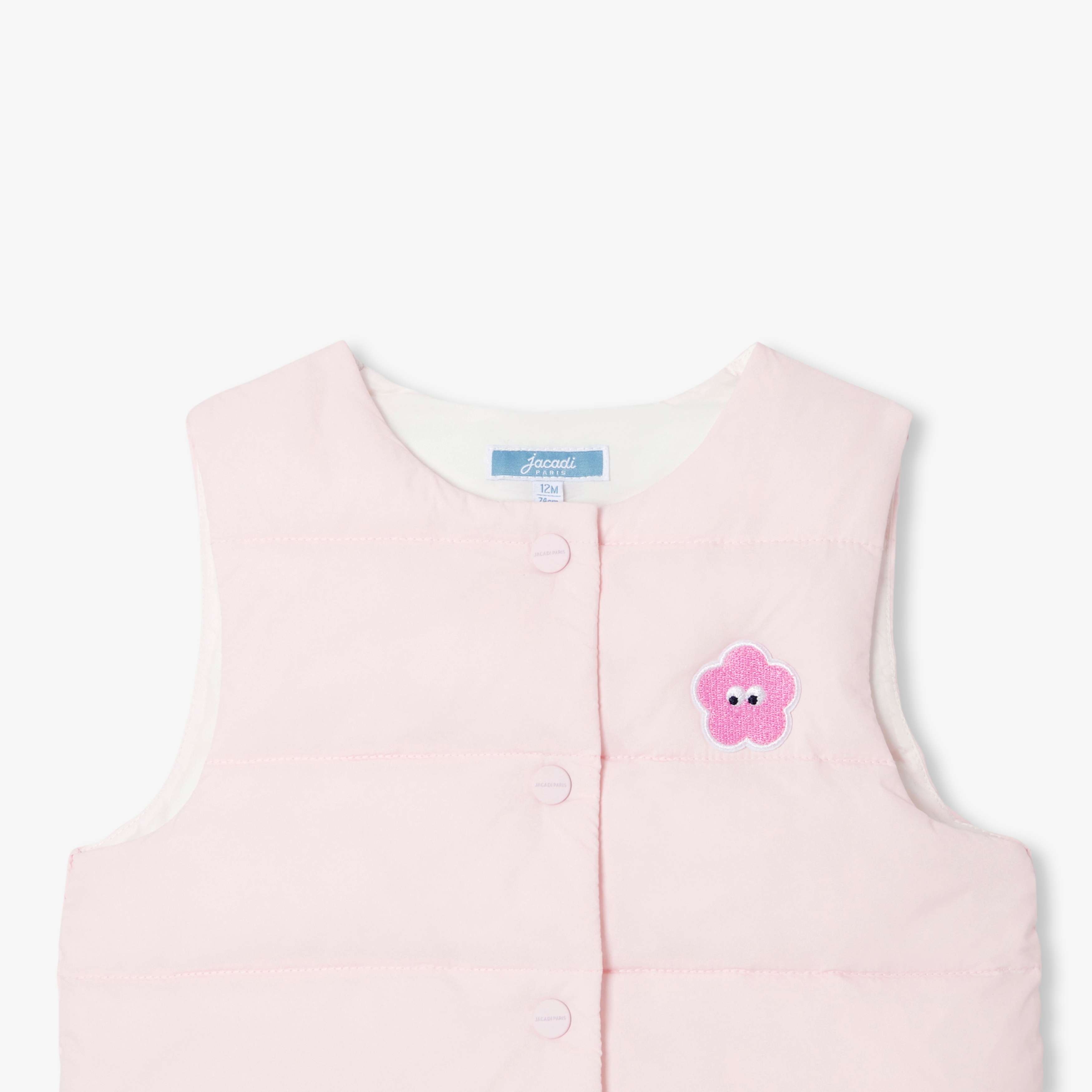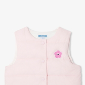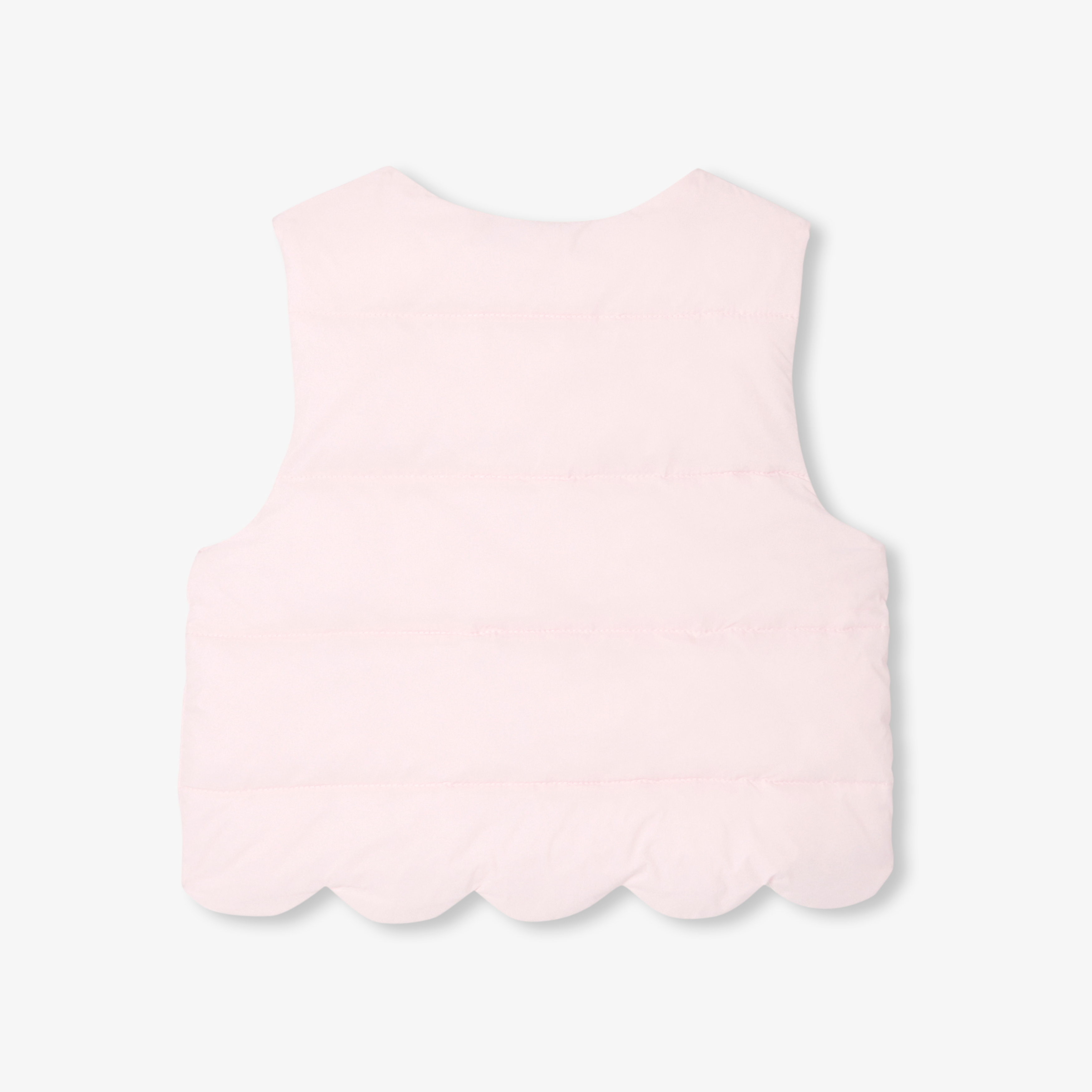 Tanto chic quanto pratico, il piumino smanicato bimba è più attuale che mai. Indossato su una felpa con i jeans o una marinière per un look contemporaneo, il fondo smerlato e lo stemma sul petto rendono questo modello una scelta dinamica per l'inizio di stagione.