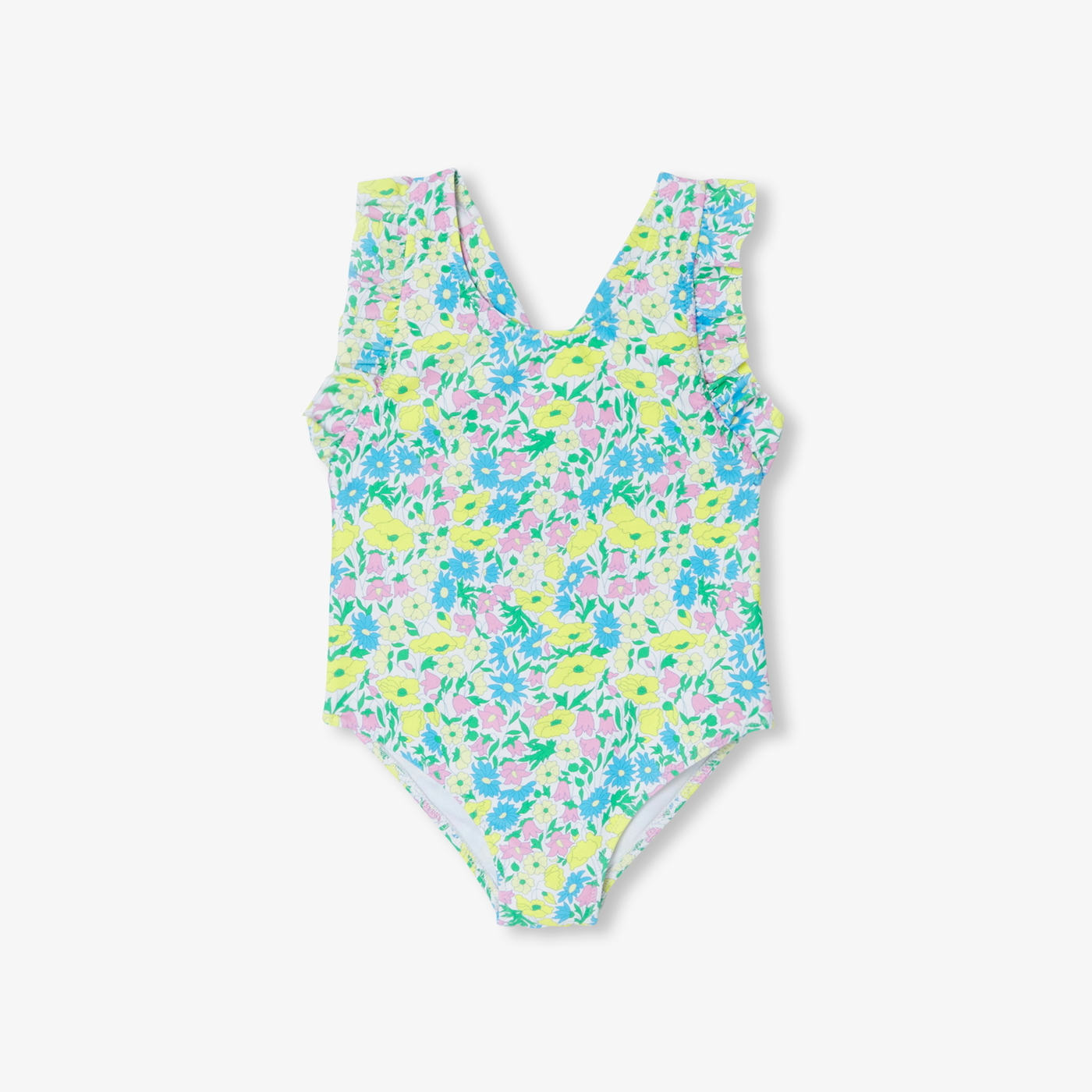 Una stagione floreale e colorata con questo costume da bagno bimba. Caratterizzato da un allegro tessuto Liberty, questo must-have dell'estate da indossare in spiaggia o in piscina, si abbinerà a meraviglia al cappellino coordinato.