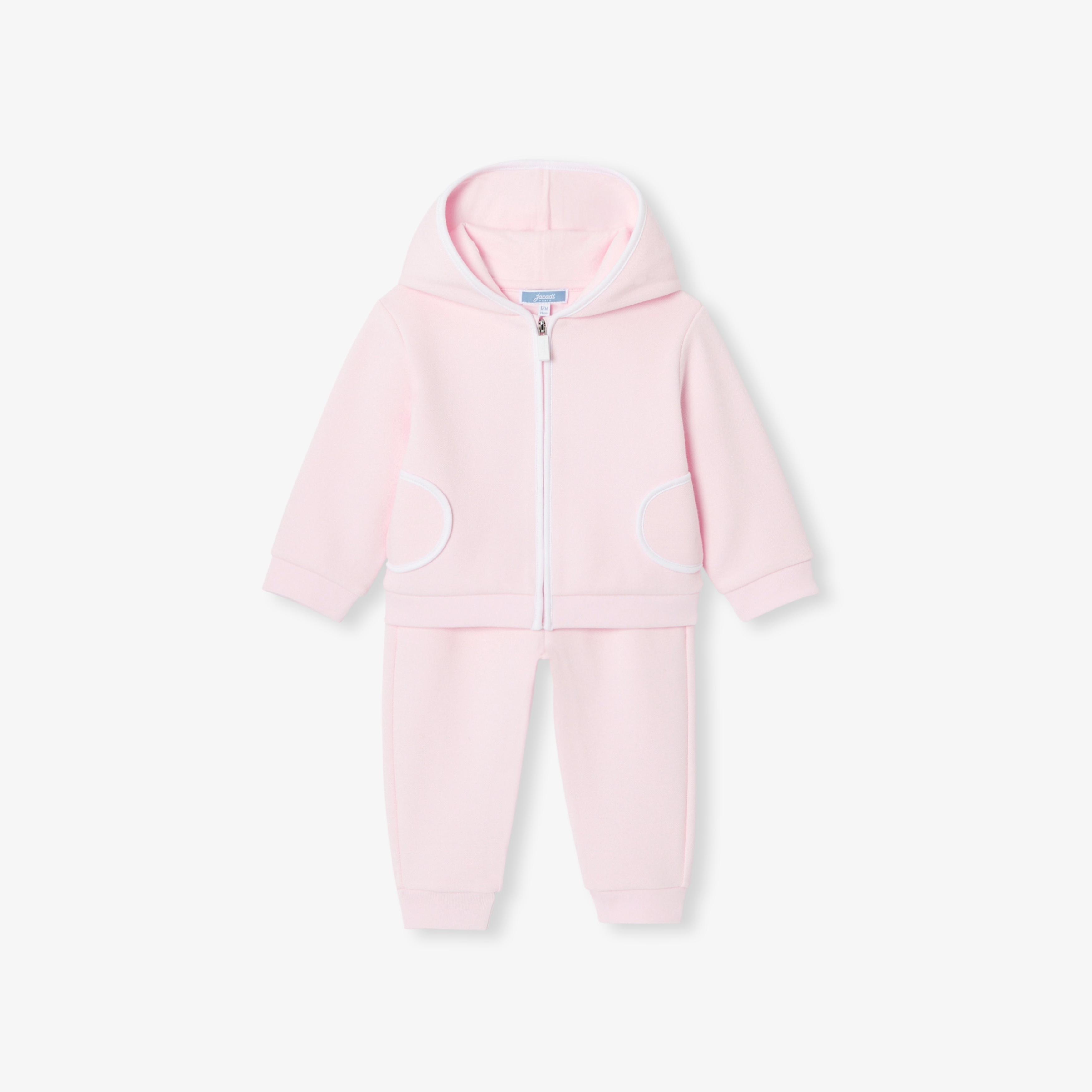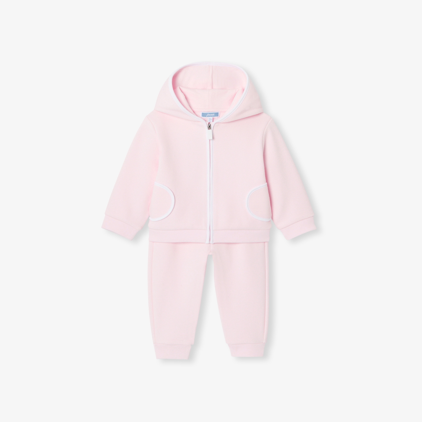 Gli stilisti hanno creato un completo davvero comodo, perfetto per l'abbigliamento quotidiano delle bimbe. Realizzato in maglia piqué double face, questo completino è composto da una felpa con zip e cappuccio, tasche applicate con profili a contrasto e comodissimi pantaloni con elastico in vita. Ideale per casa e il nido, non può mancare nel guardaroba delle più piccole.