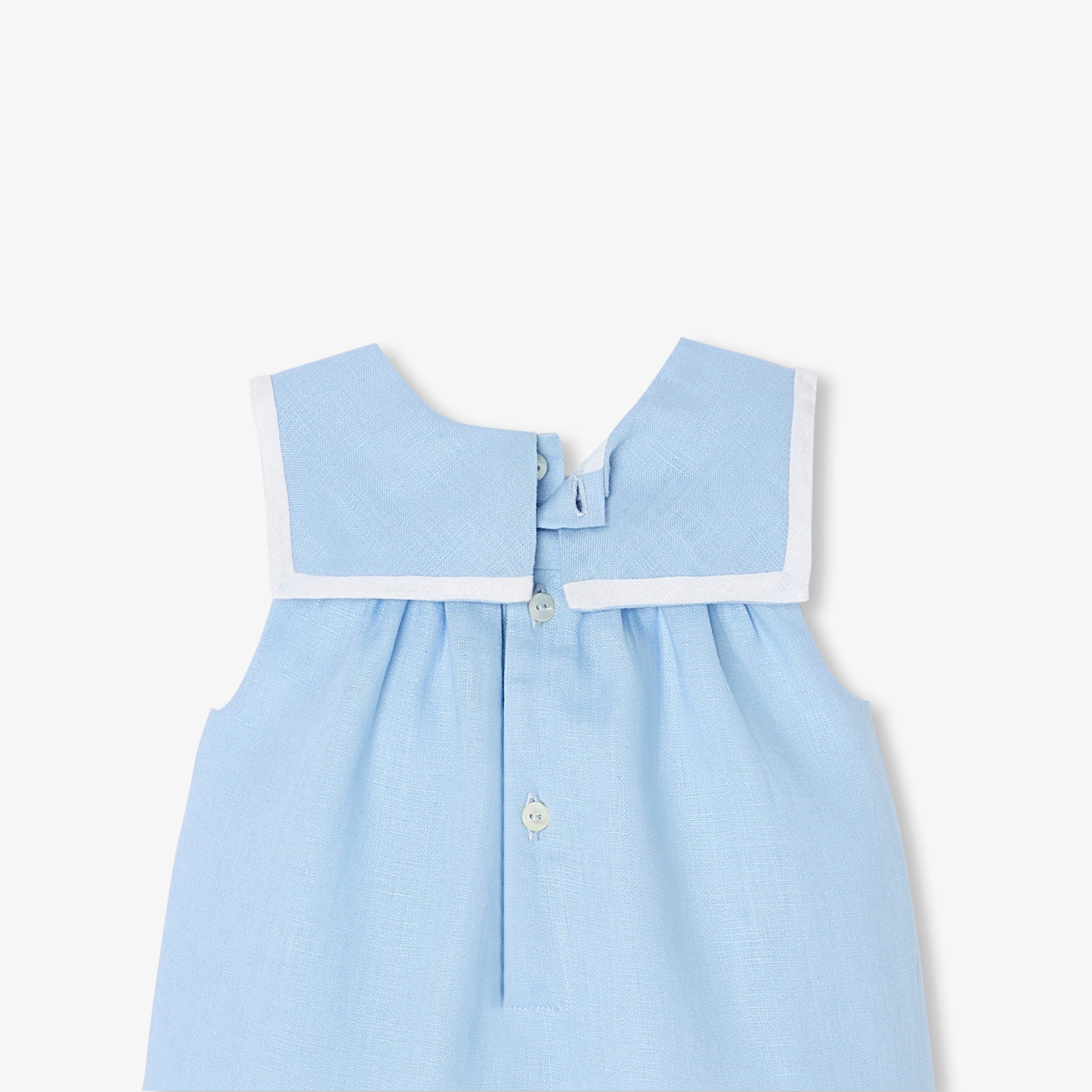 -Colletto alla marinara con profilo in lino bianco