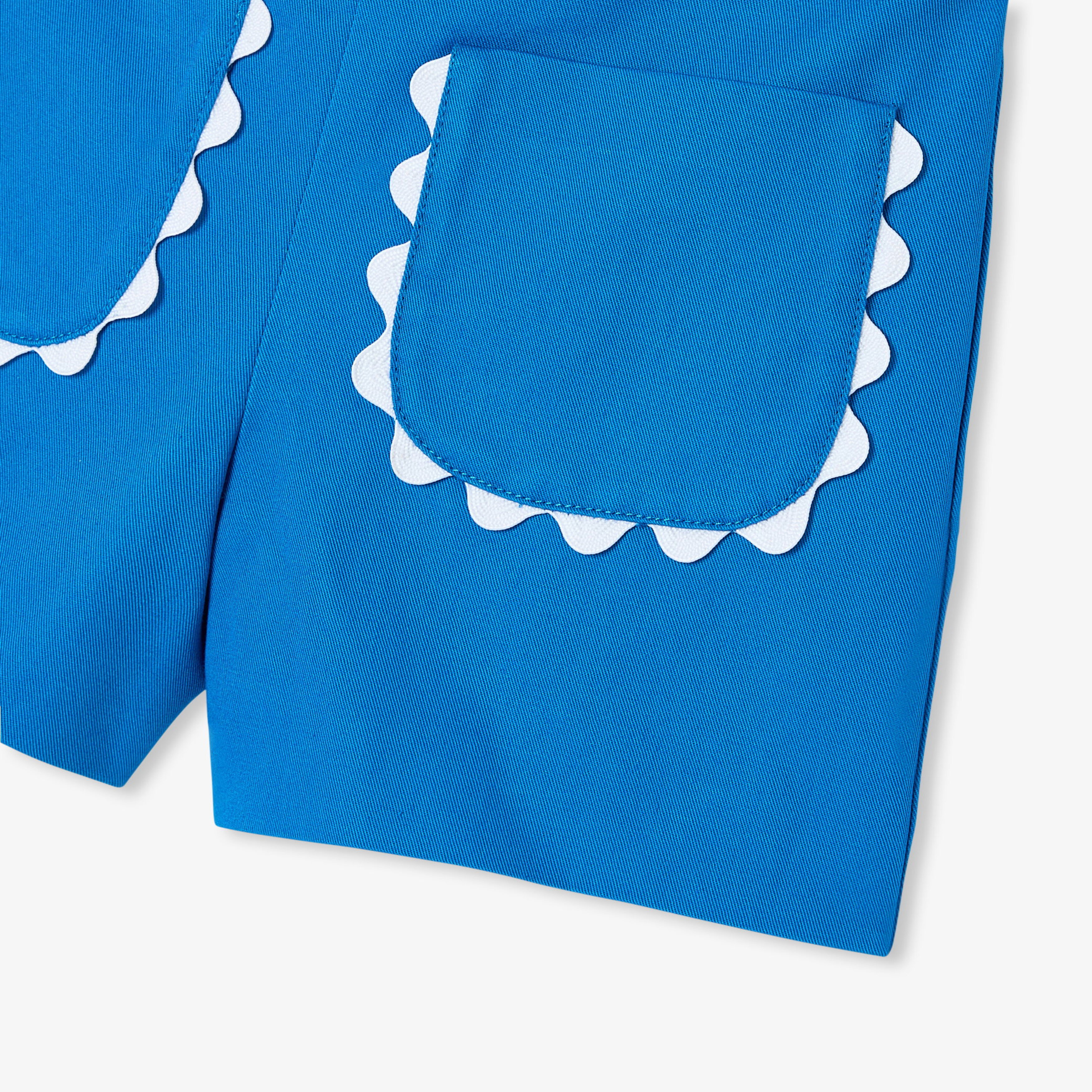 Disponibili in tonalità vivaci, i pantaloncini bimba sono realizzati in elegante twill di cotone per l'estate. Impreziositi dalle tasche applicate e contornate da un nastro a serpentina, questi pantaloncini estivi saranno l'alleato estivo di ogni outfit della stagione.