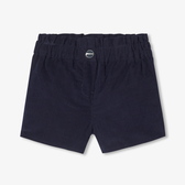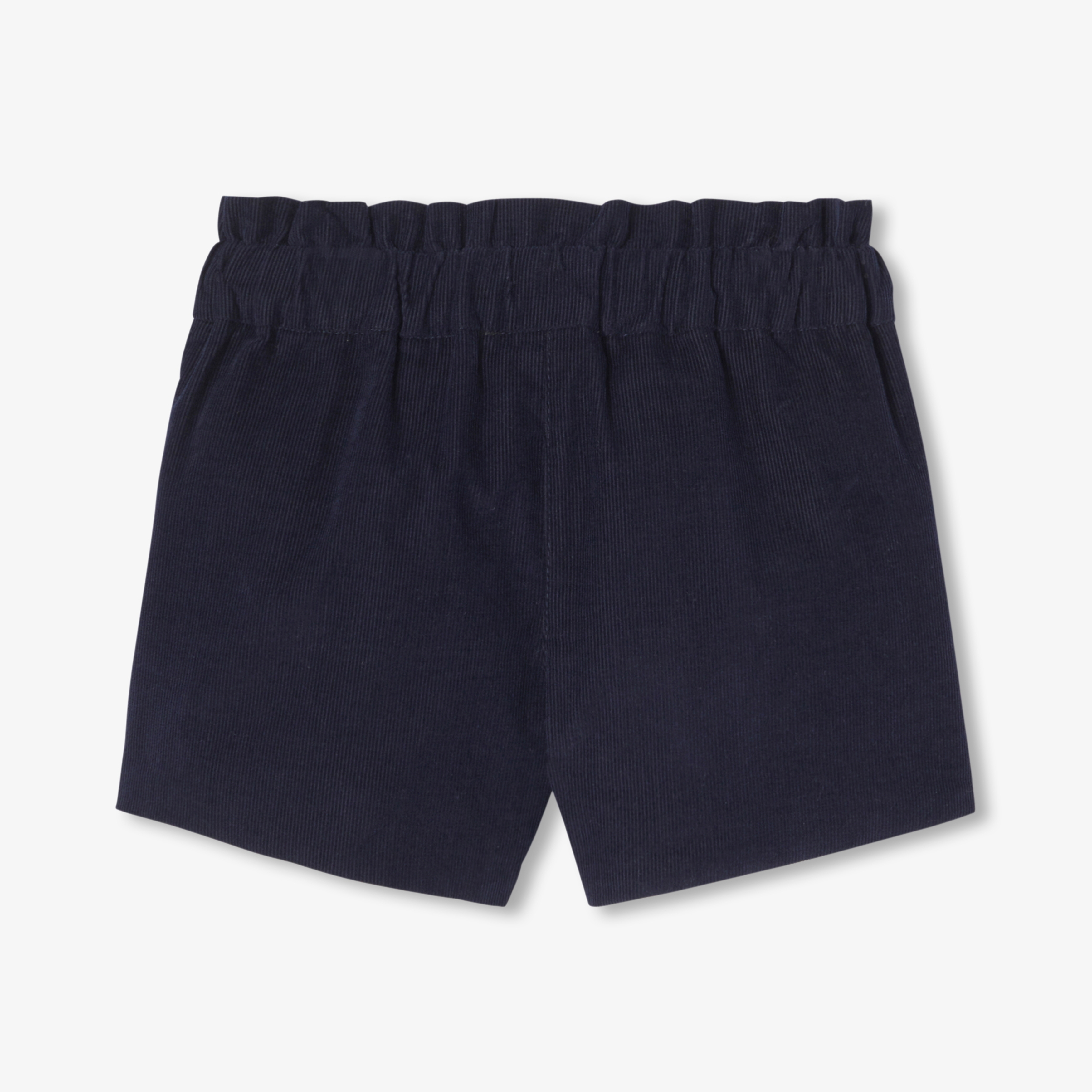La collezione di capi essenziali è stata ampliata con nuovi shorts da neonata in velluto millerighe superconfortevole. Con vita paper bag per un outfit strutturato, questo modello chic e versatile, foderato in jersey, è perfetto per tutti i giorni e può essere abbinato a una blusa o a una felpa.