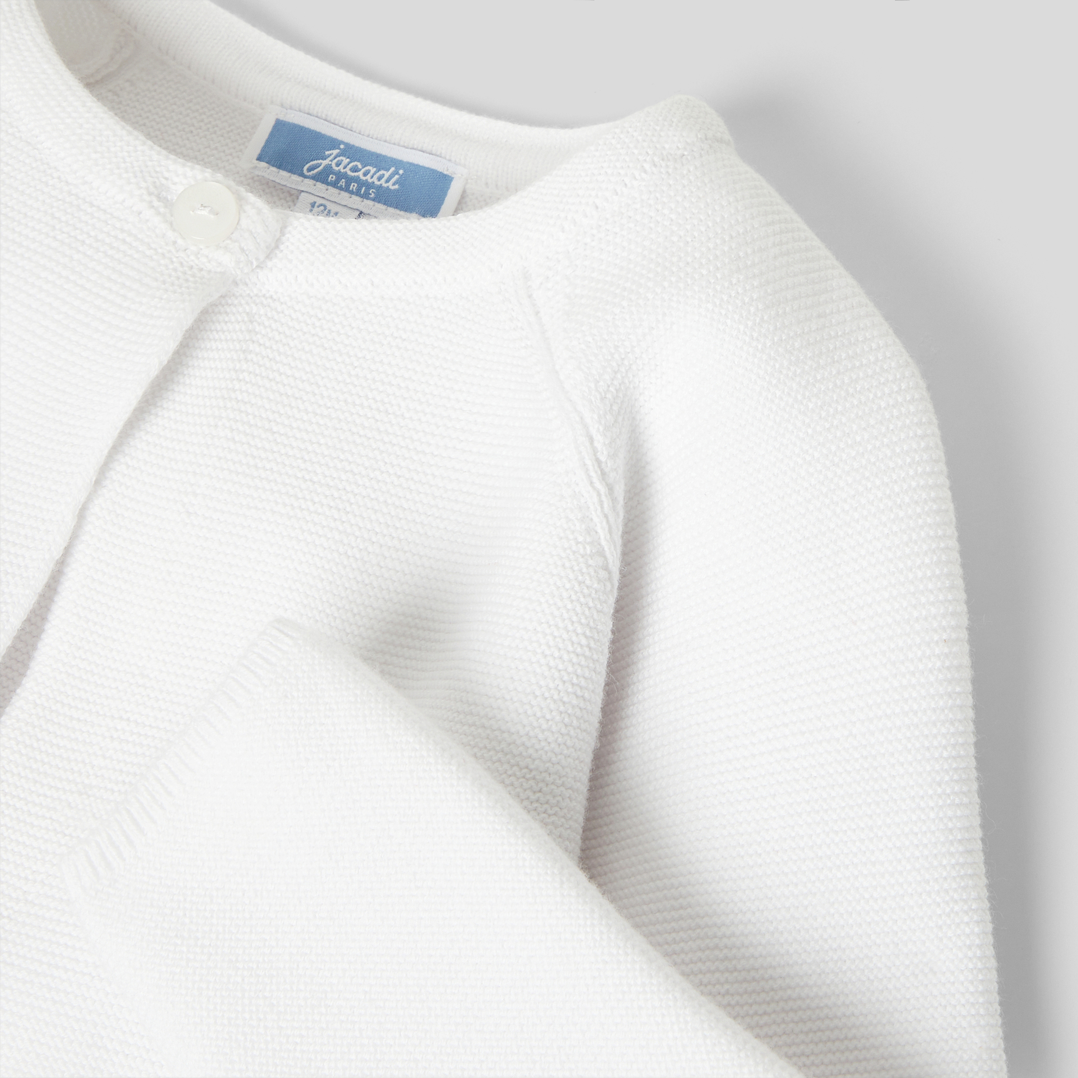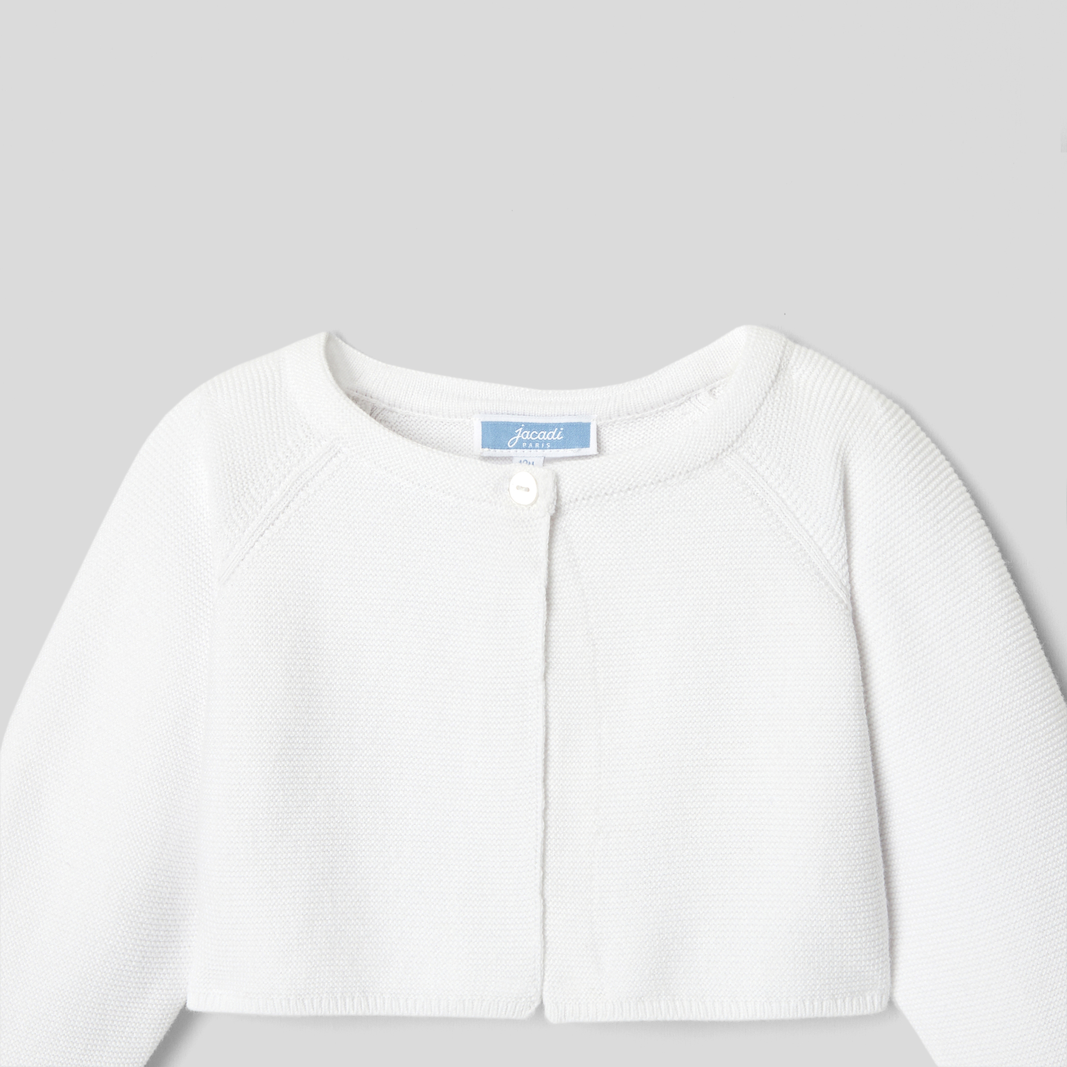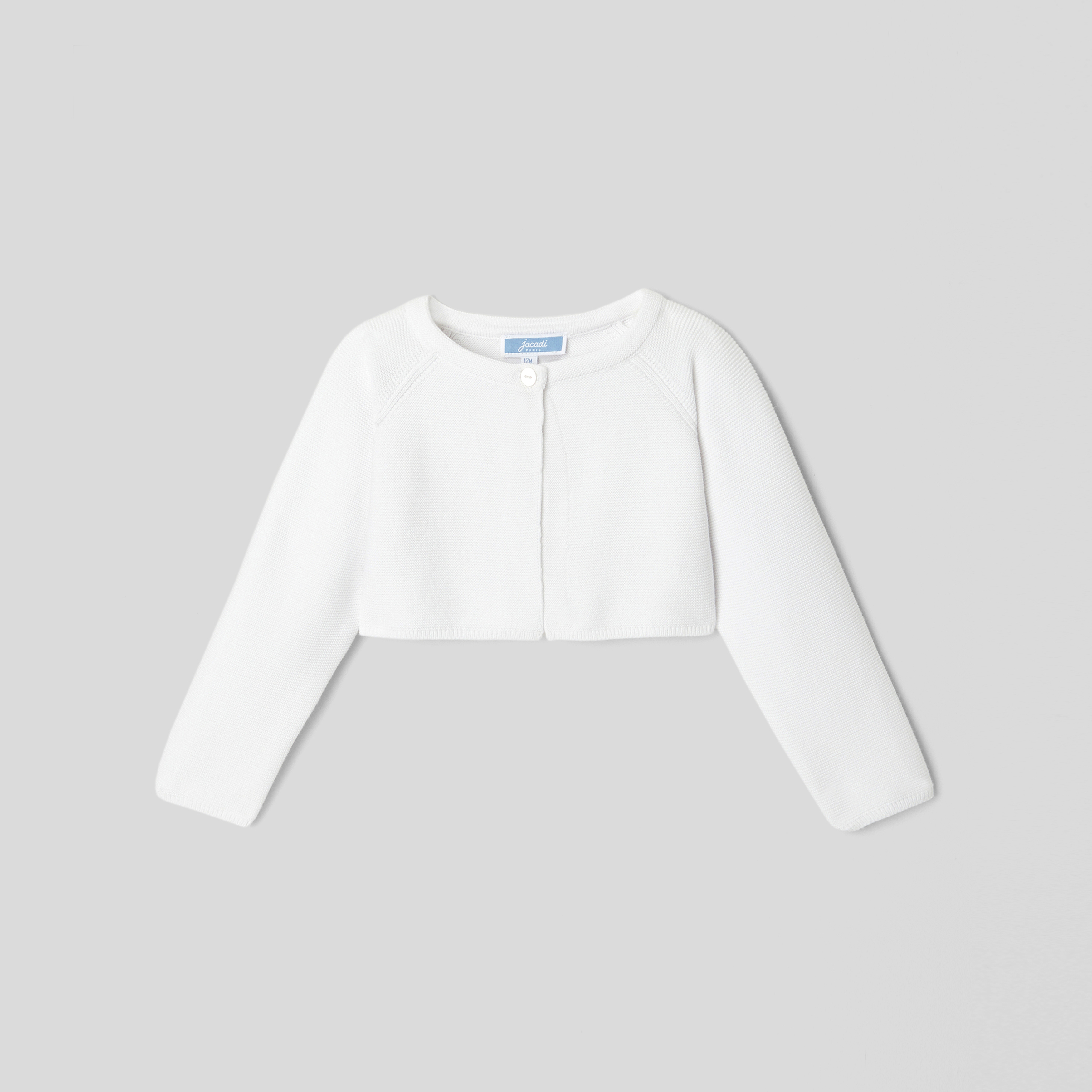 Elegante e minimalista, questo bolero bimba in maglia a punto legaccio è irresistibile. Un modello corto in morbido cotone pensato per essere coordinato con gli abiti da cerimonia Jacadi.