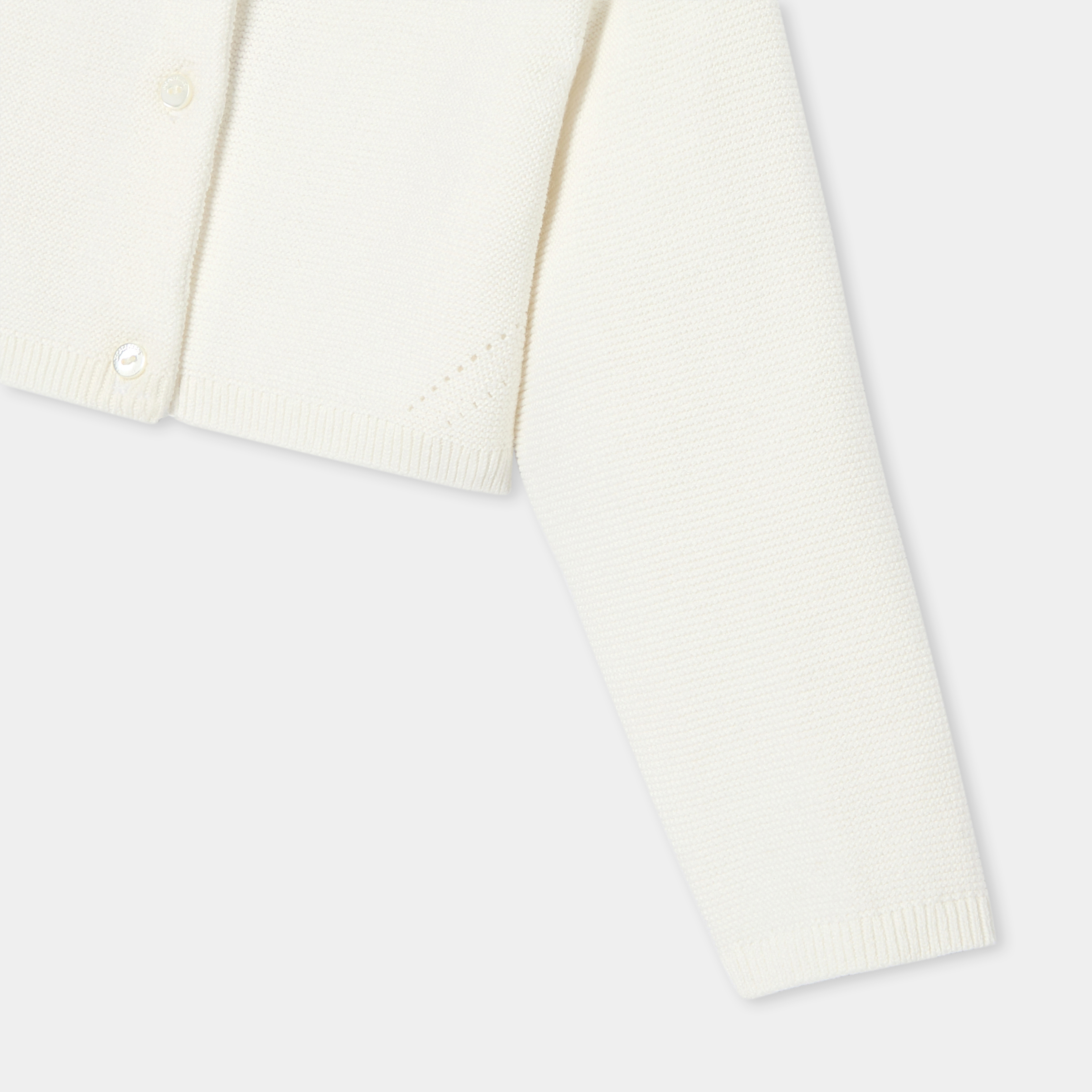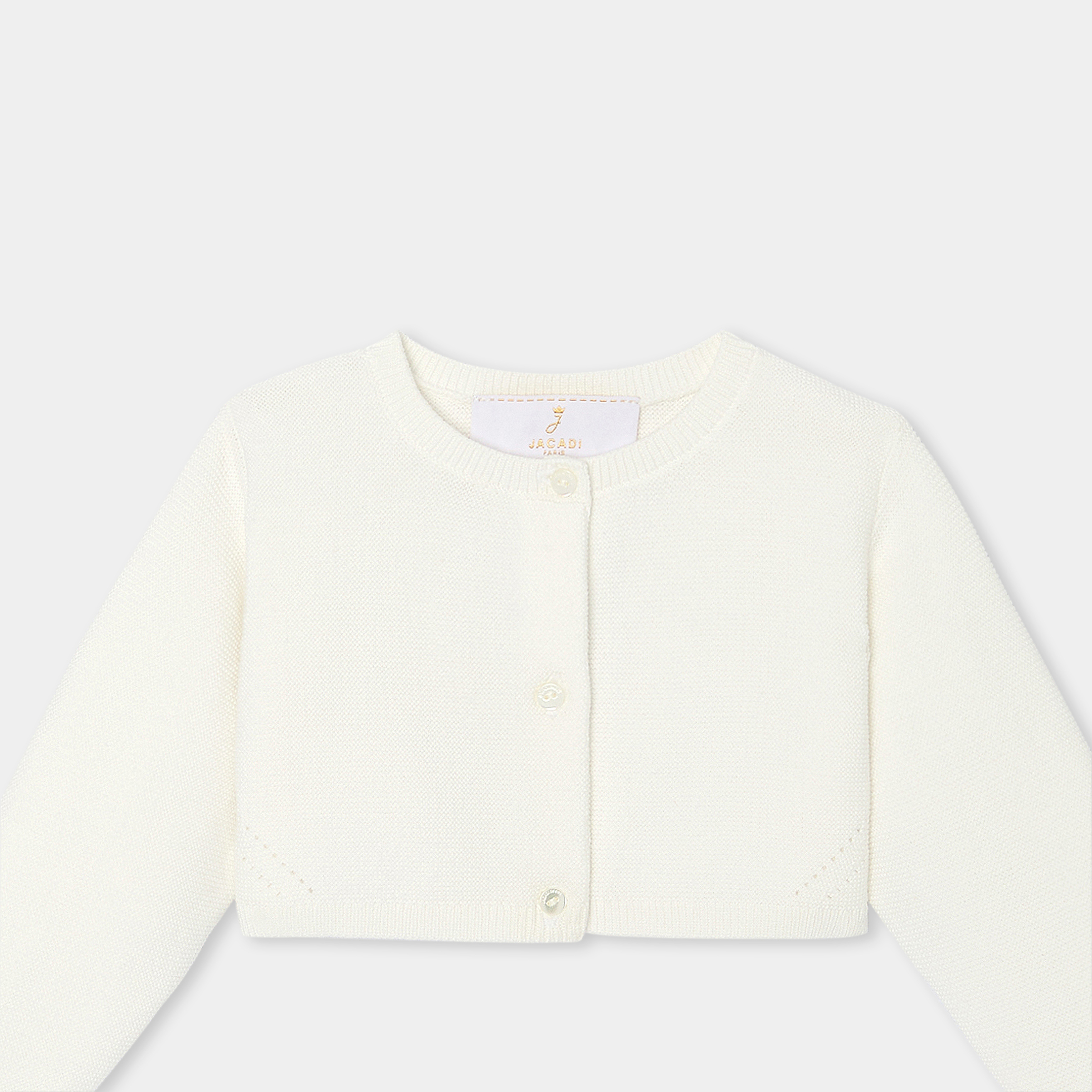 Elegante e minimalista, questo cardigan bimba completerà con gusto un outfit da cerimonia. In cotone biologico e chiuso da bottoni in madreperla naturale, si adatterà perfettamente agli abiti da cerimonia grazie alla sua lunghezza.