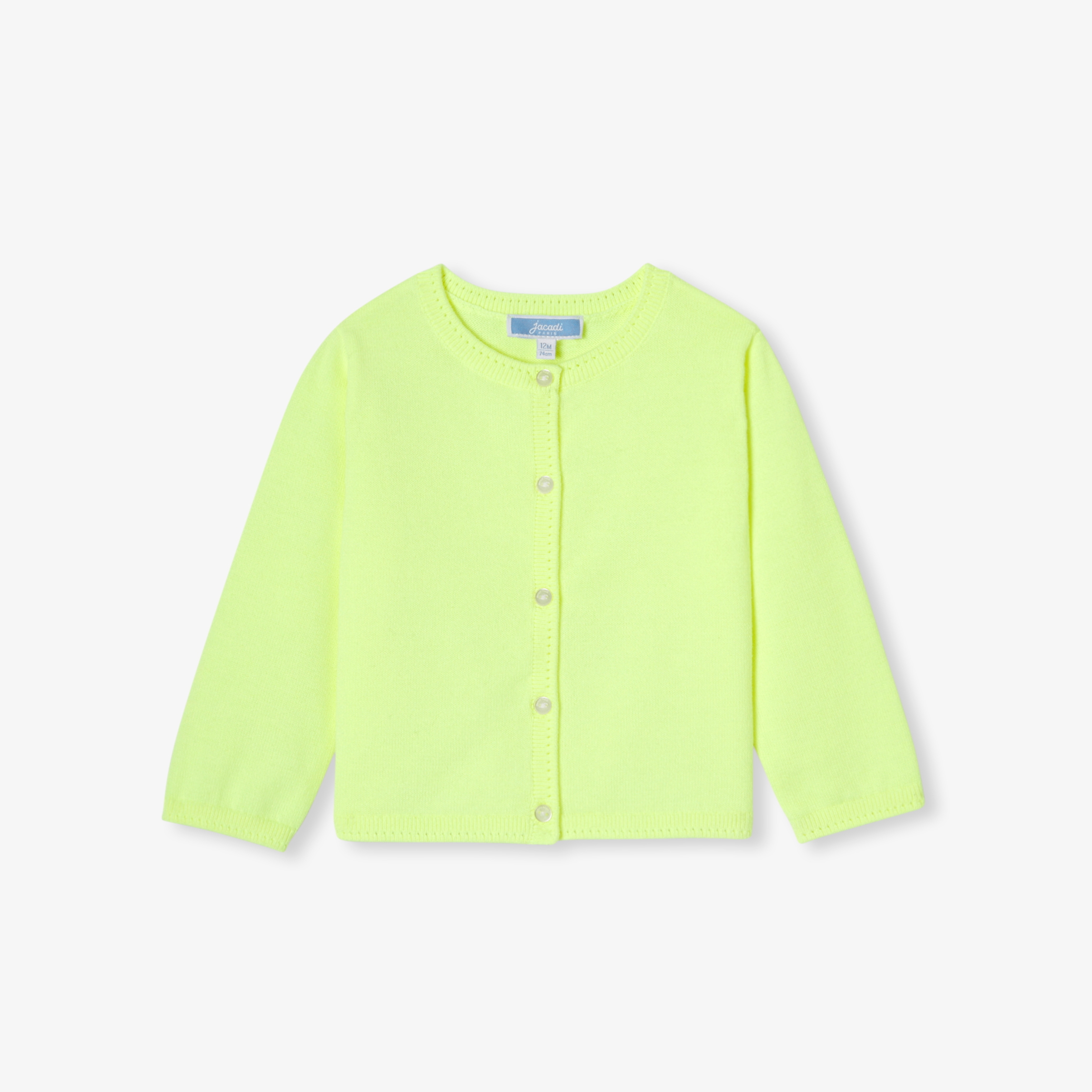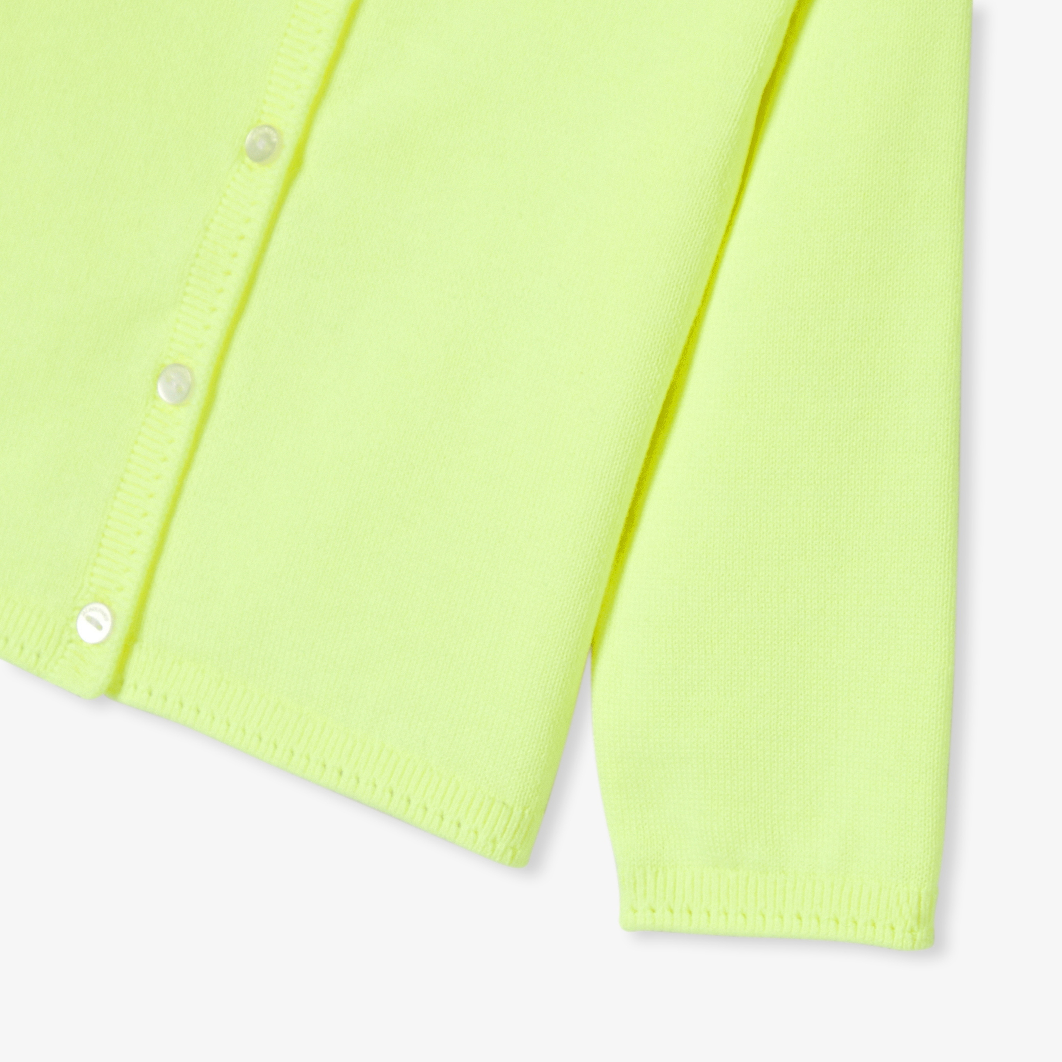 Un look sgargiante come il sole d'estate con questo cardigan bimba. Realizzato in cotone biologico, il suo colore fluo è perfetto per essere coordinato a una tutina corta in tessuto Liberty o a una t-shirt e a un paio di pantaloncini in seersucker per ravvivare qualsiasi look.