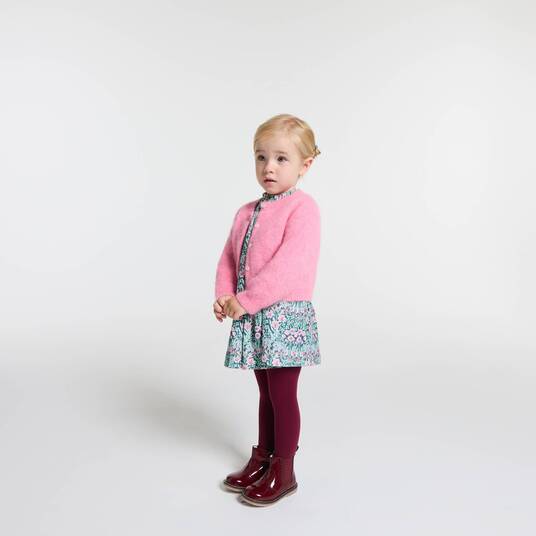 Perfetto connubio tra chic e comfort, l'iconico cardigan neonata è ora disponibile in una nuova maglia. Realizzato in lana sostenibile e alpaca per un effetto soffice, questa coccola glamour dai colori contemporanei è un must-have per il guardaroba della tua bimba.
