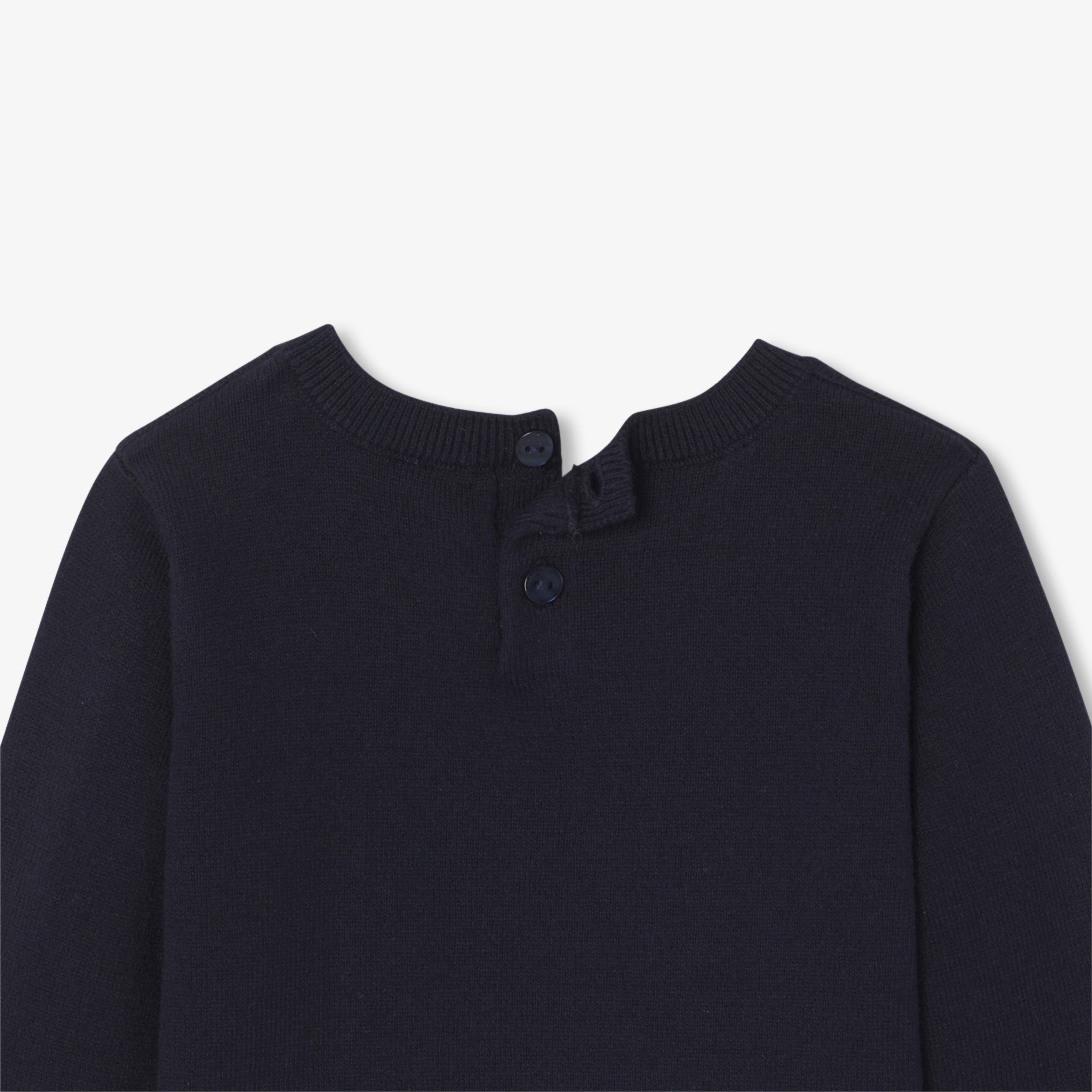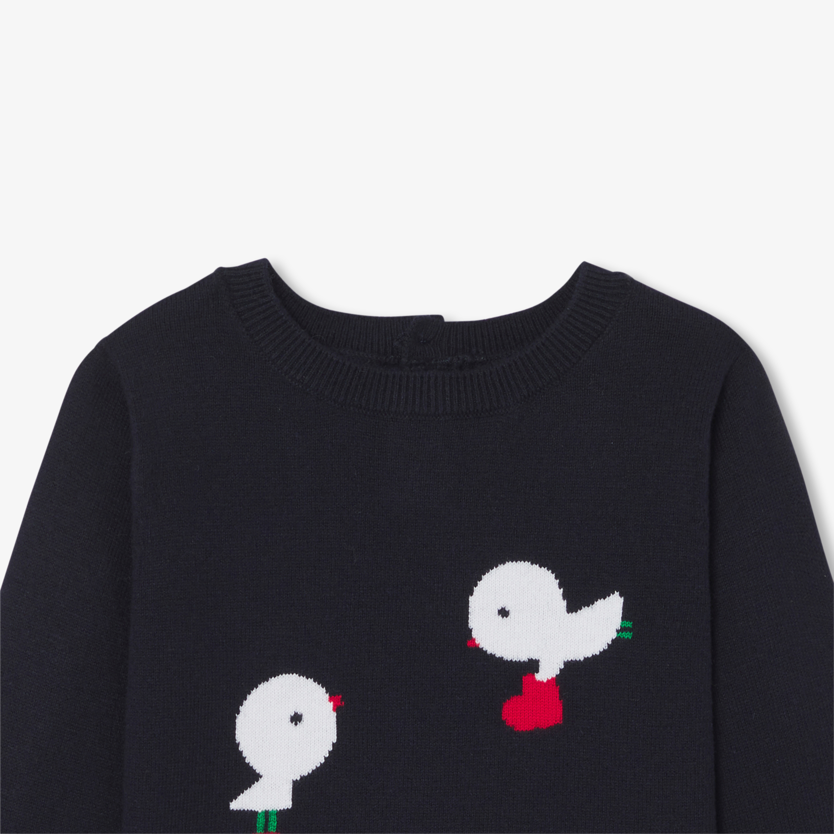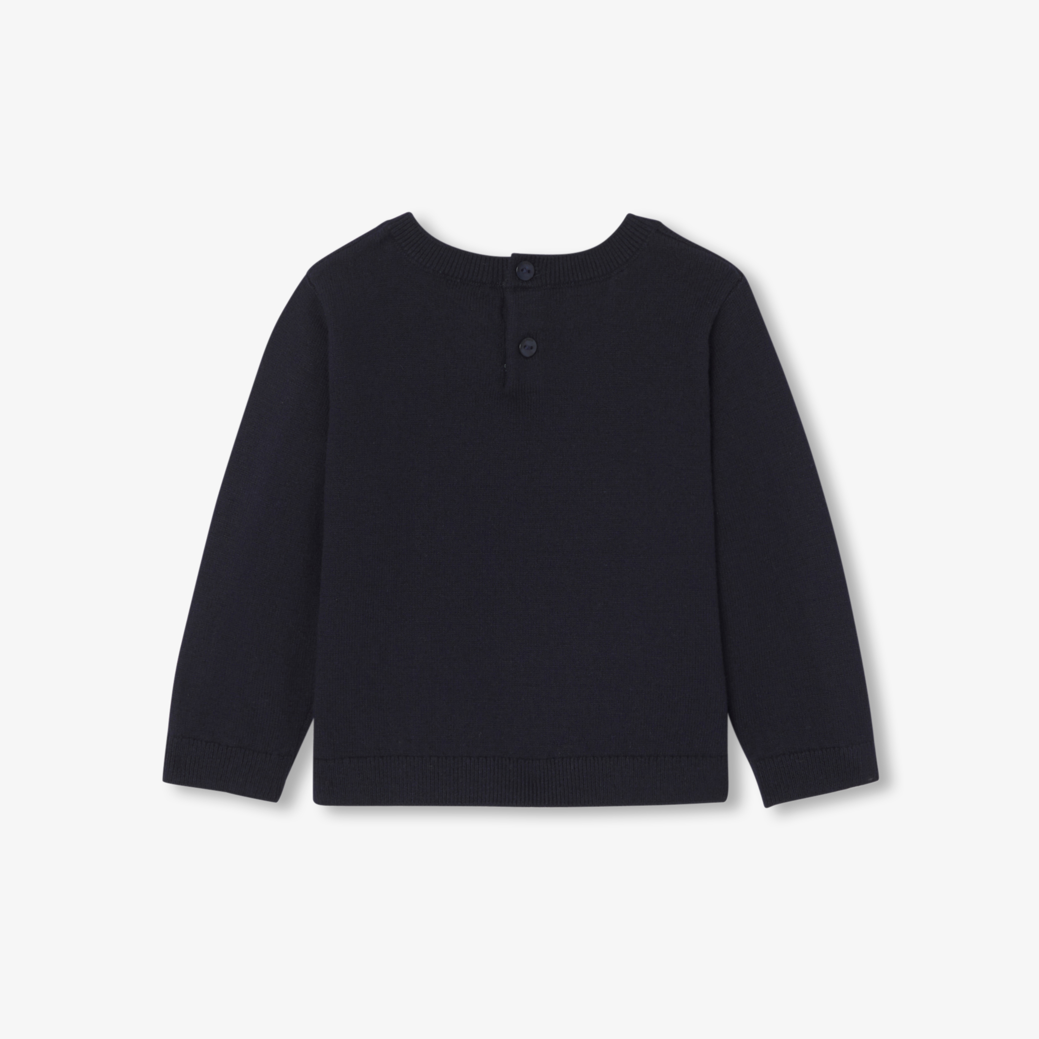 Immancabile nel guardaroba di tutti i giorni, il maglione neonata presenta uno stravagante motivo a intarsio di uccelli e fiori. Realizzato in cotone organico e lana sostenibile, questo modello con bottoni dietro è corredato di body con colletto e shorts mimetici in velluto, per un outfit casual chic e parigino.