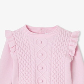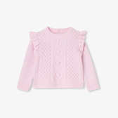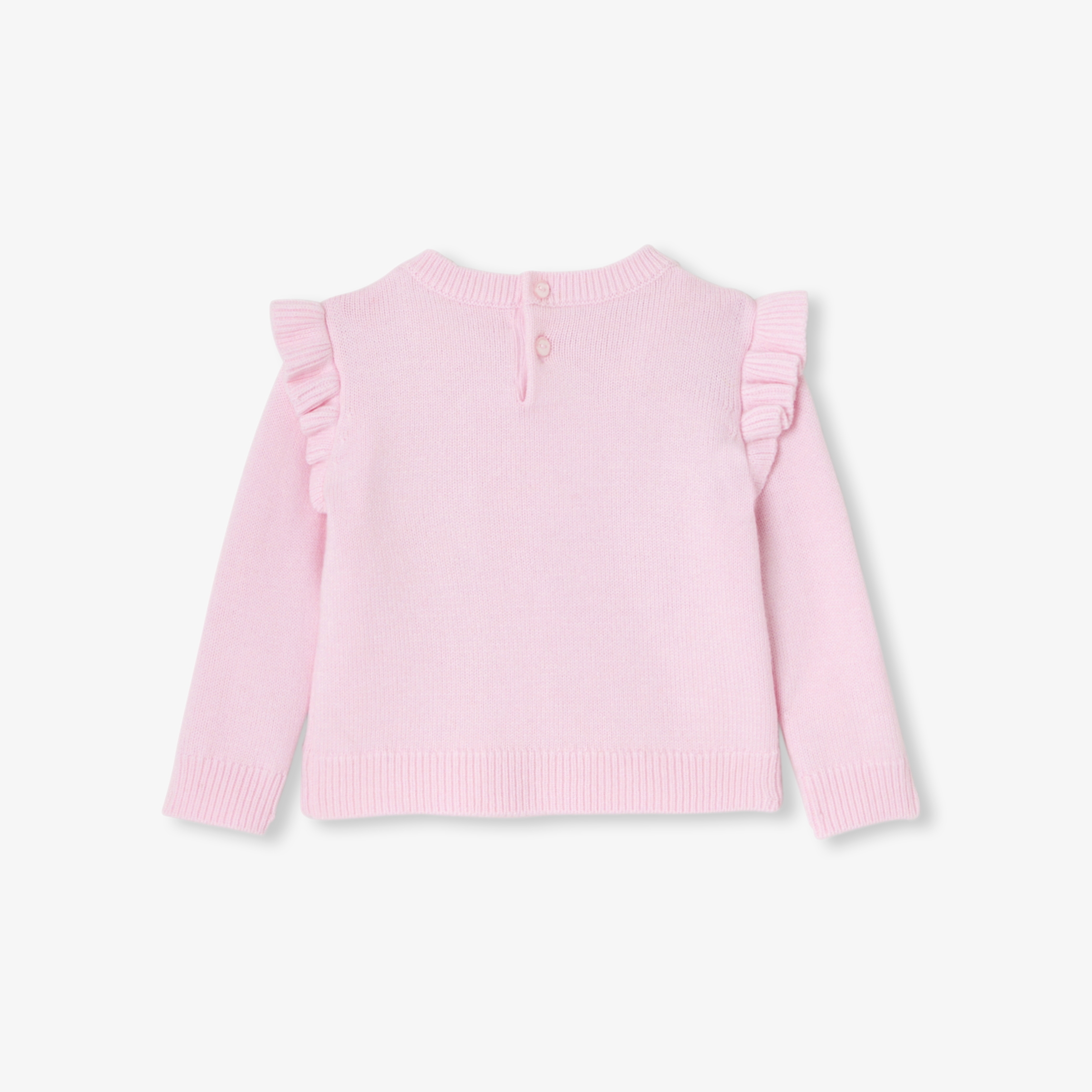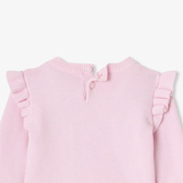 Ispirato al raffinatissimo maglione tartan, questo maglioncino per neonata valorizza l'eleganza Jacadi. Realizzato in calda e morbida lana sostenibile, con un gioco di lavorazioni sul davanti e giromanica con volant, questo modello è perfetto da indossare con un paio di pantaloni di velluto o di jeans.